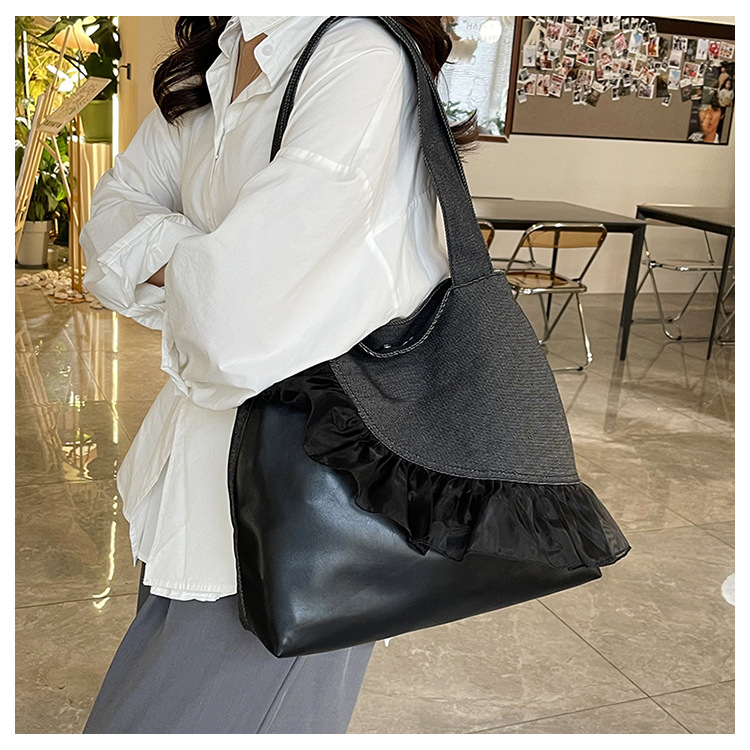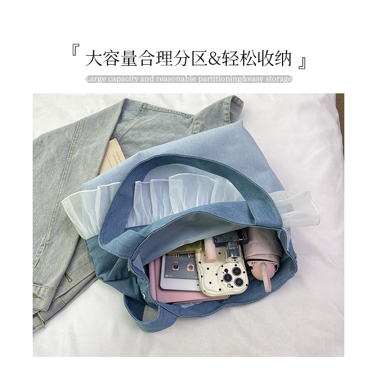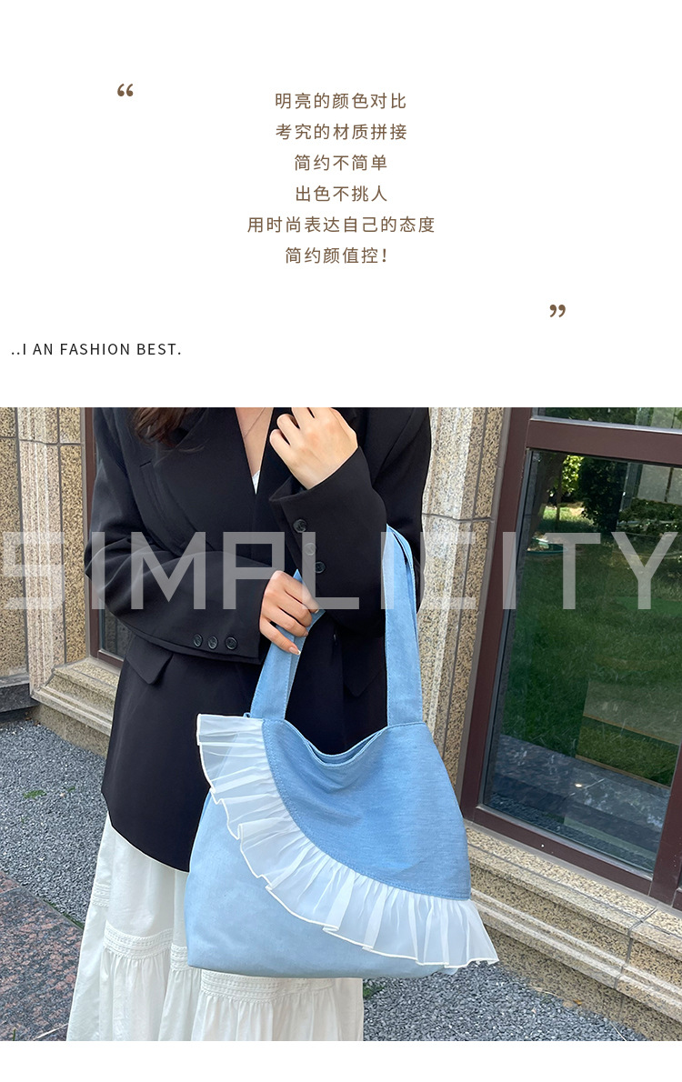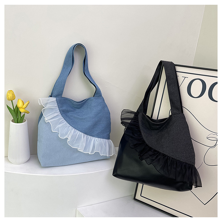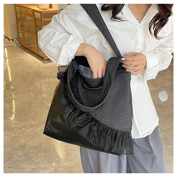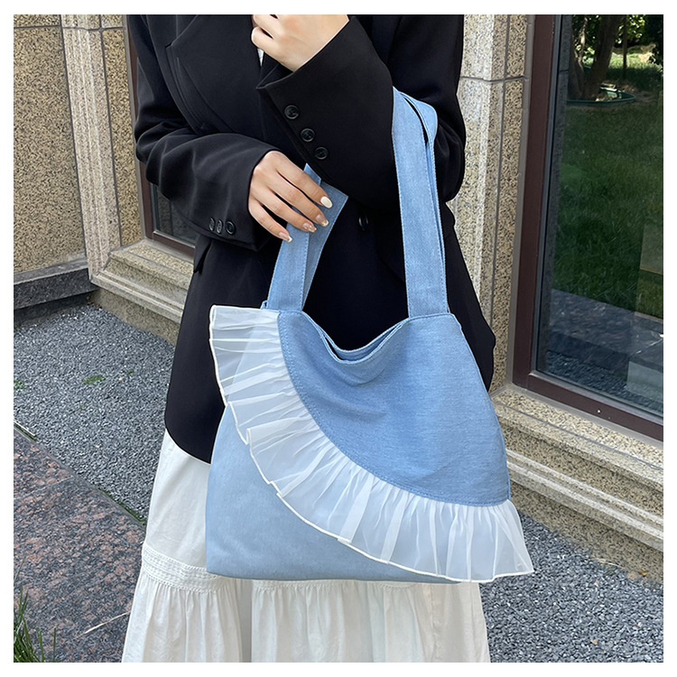 Versión coreana del bolso de nicho 2025 verano nuevo bolso femenino bolso de encaje lindo bolso de hombro de color de contraste de gran capacidad
