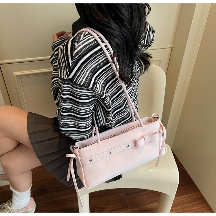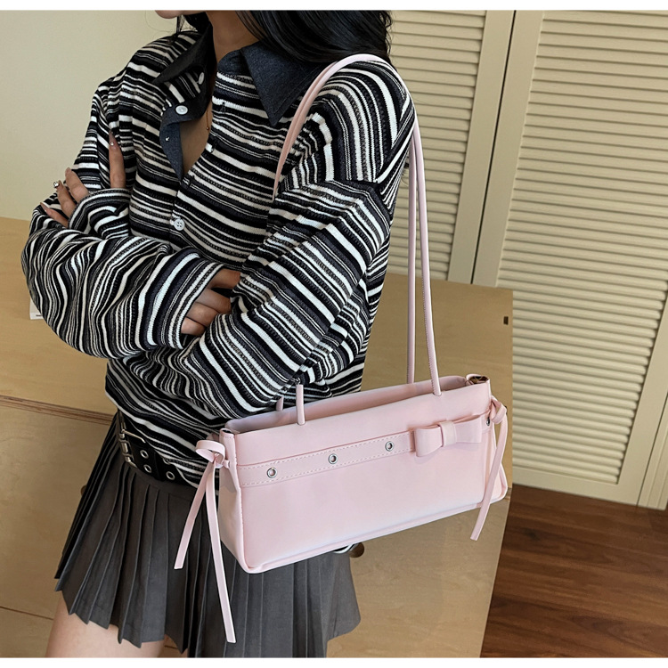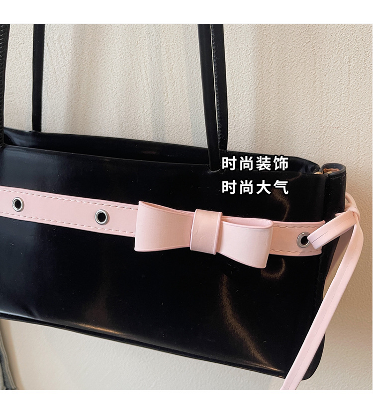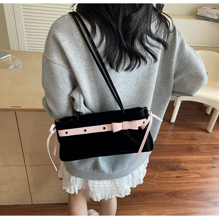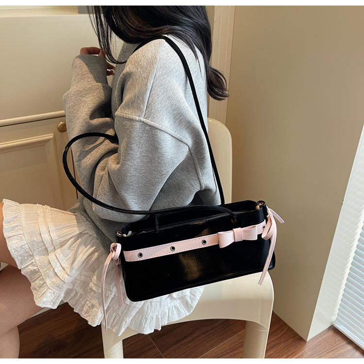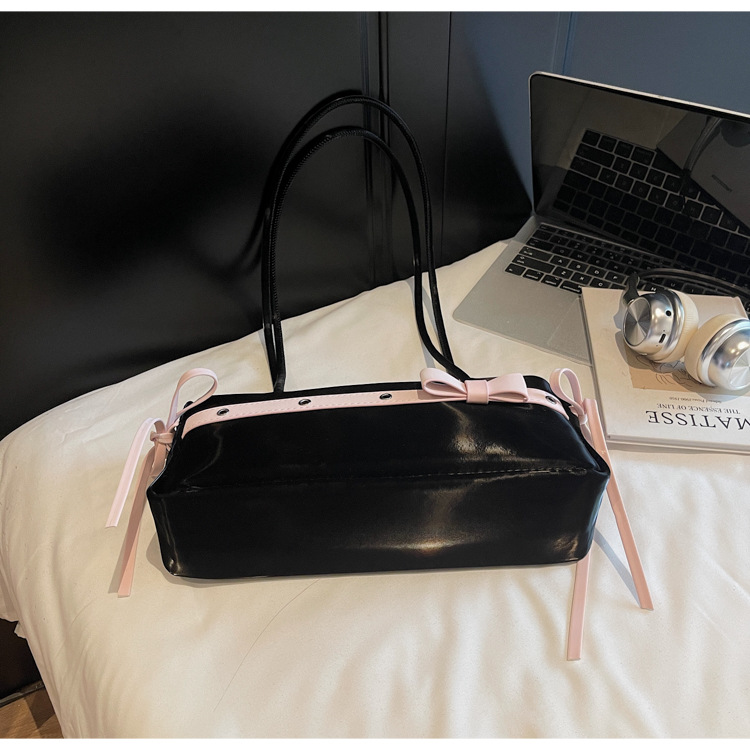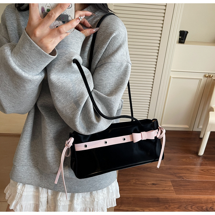 Bolso de axila popular de este año 2025 verano nuevo bolso femenino bolso de textura esmerilada bolso de hombro de color en contraste con lazo