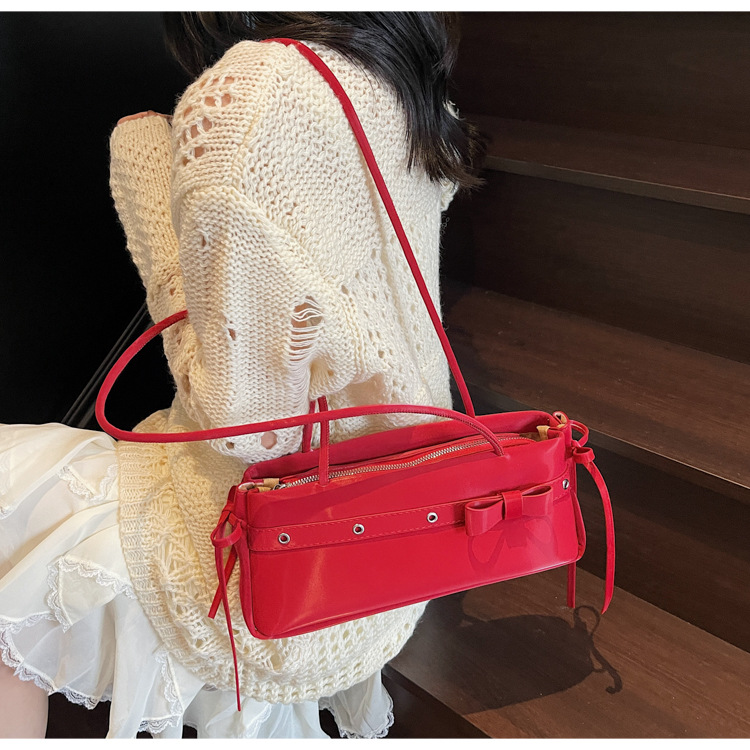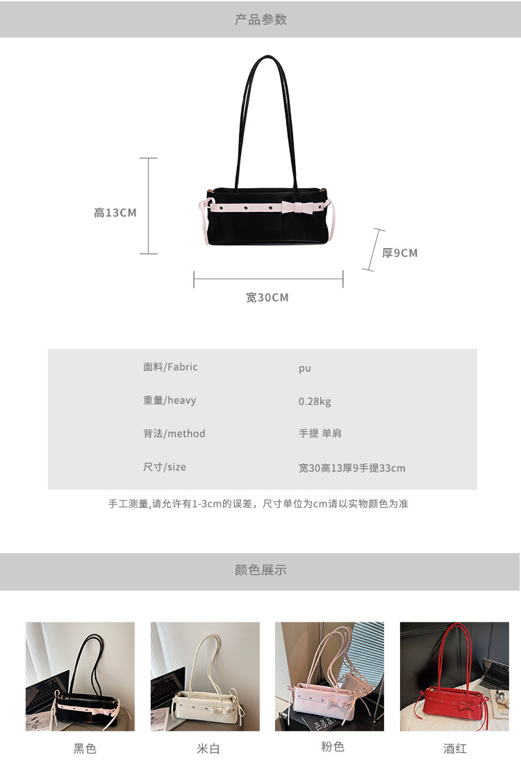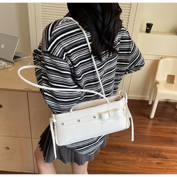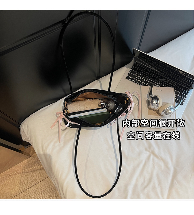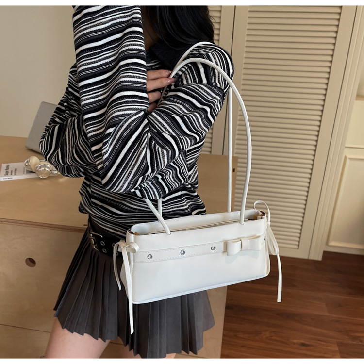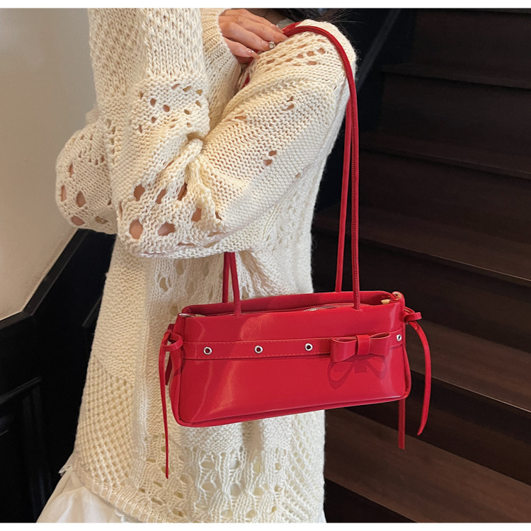 Bolso de axila popular de este año 2025 verano nuevo bolso femenino bolso de textura esmerilada bolso de hombro de color en contraste con lazo