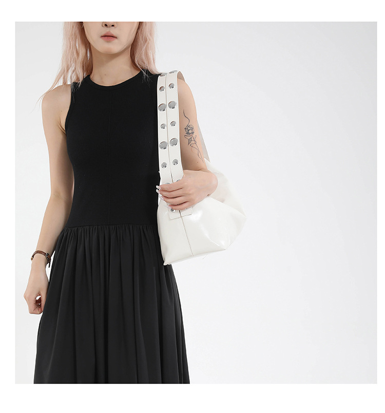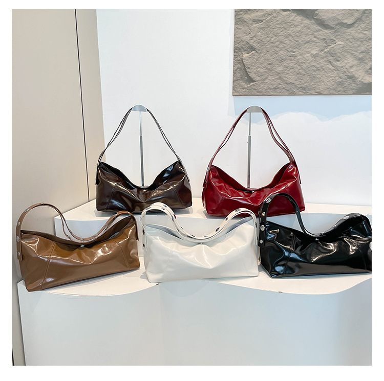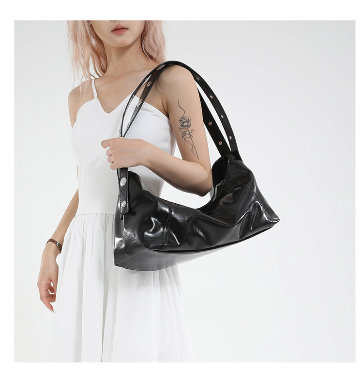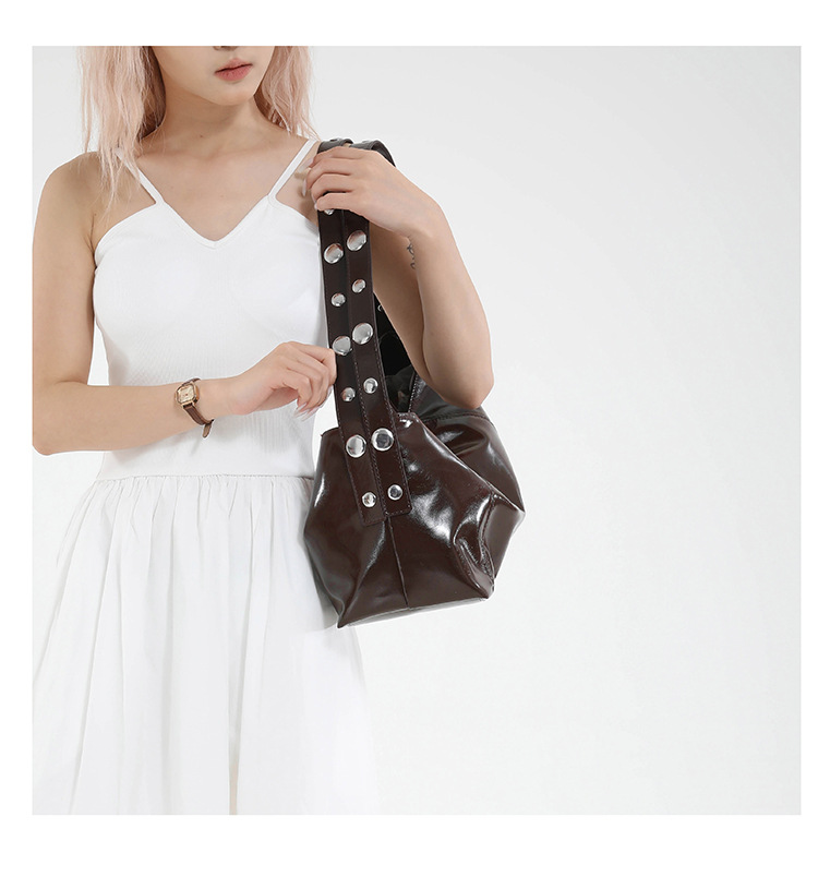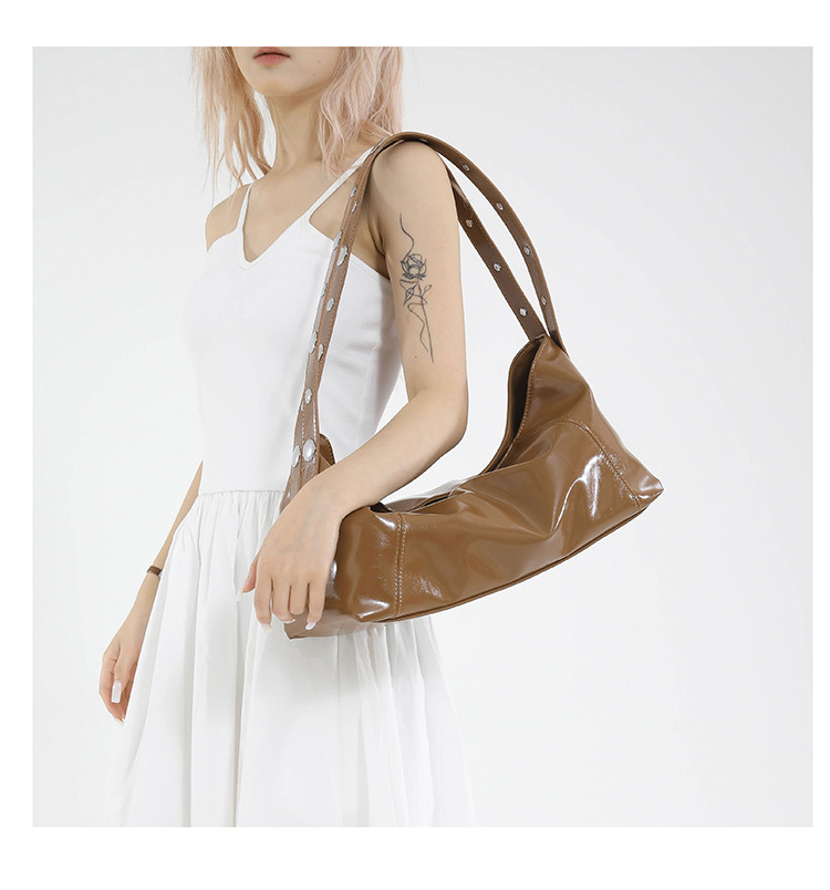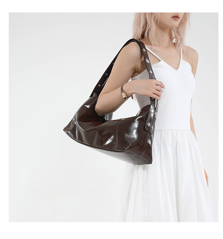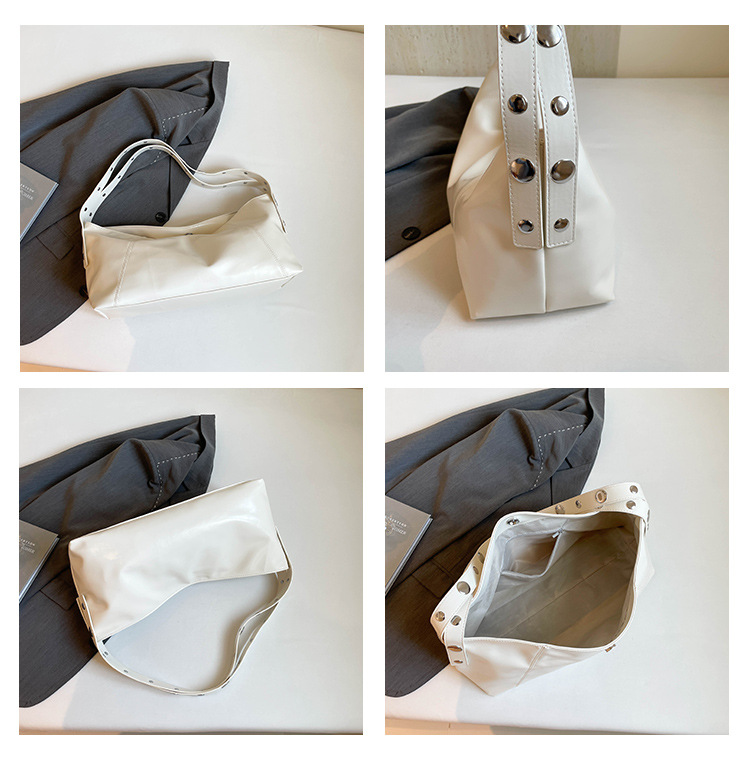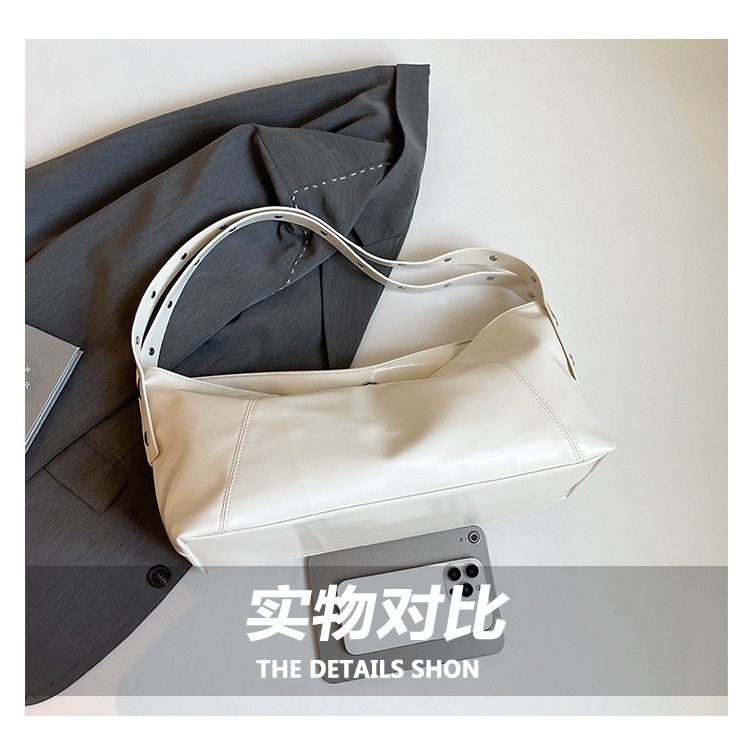 Bolso de axila retro estilo Hong Kong 2025 verano nuevo bolso femenino bolso de textura de alta calidad bolso de hombro con remaches de gran capacidad