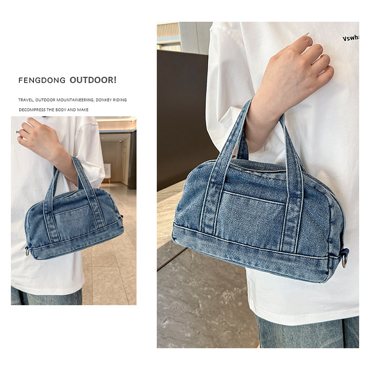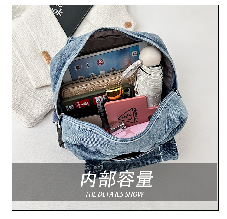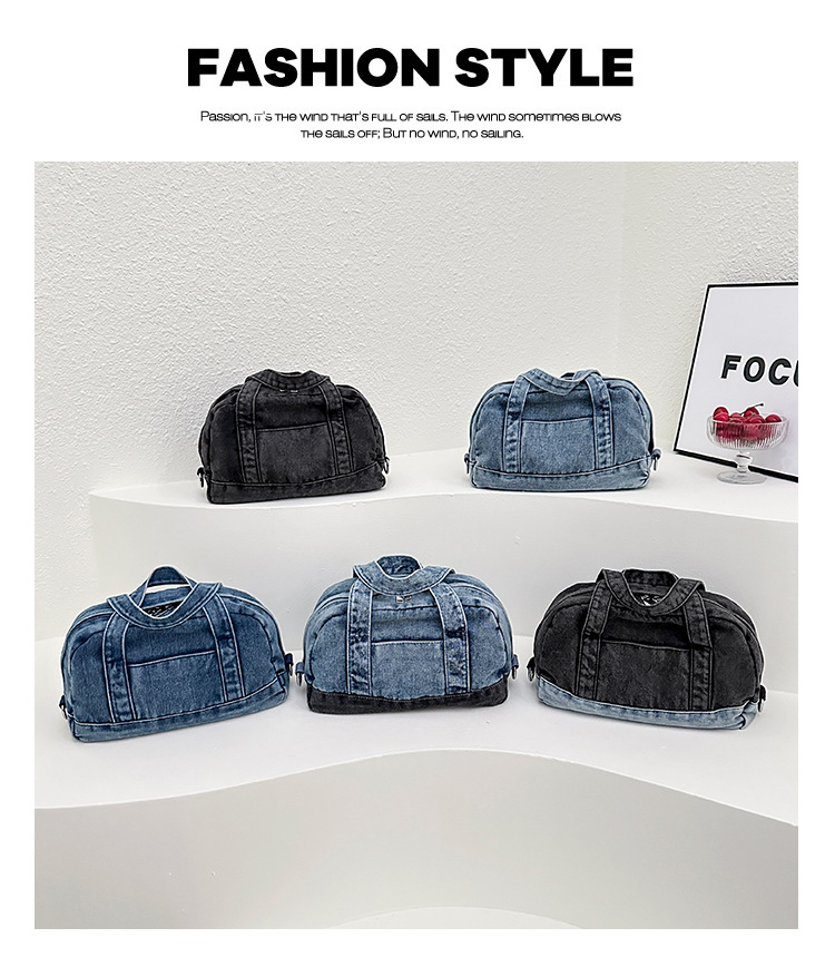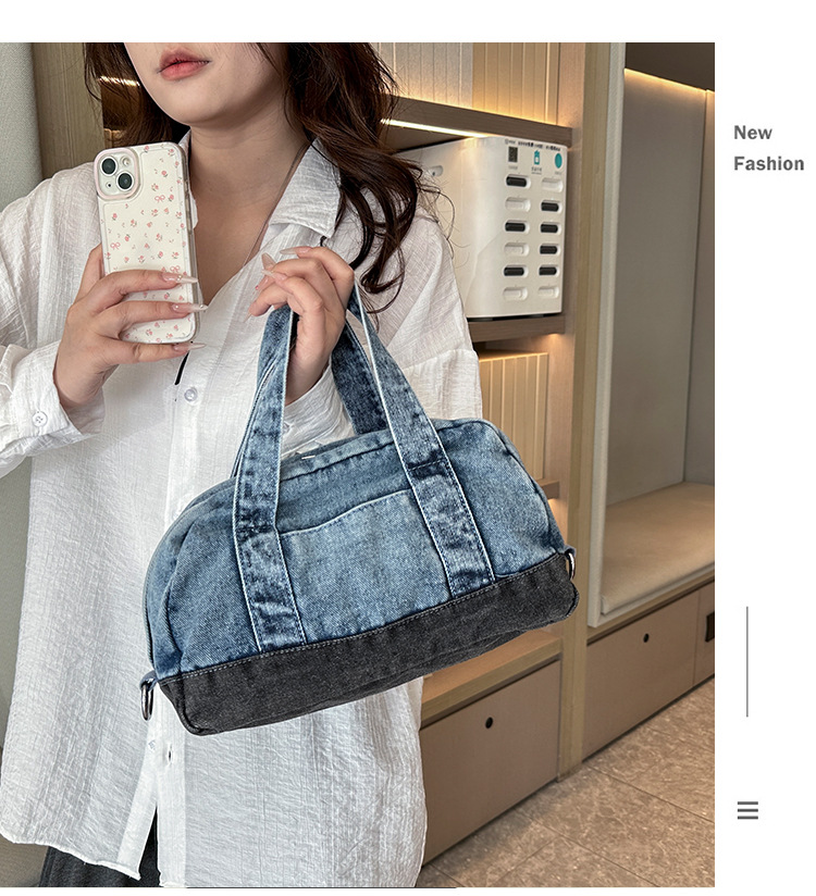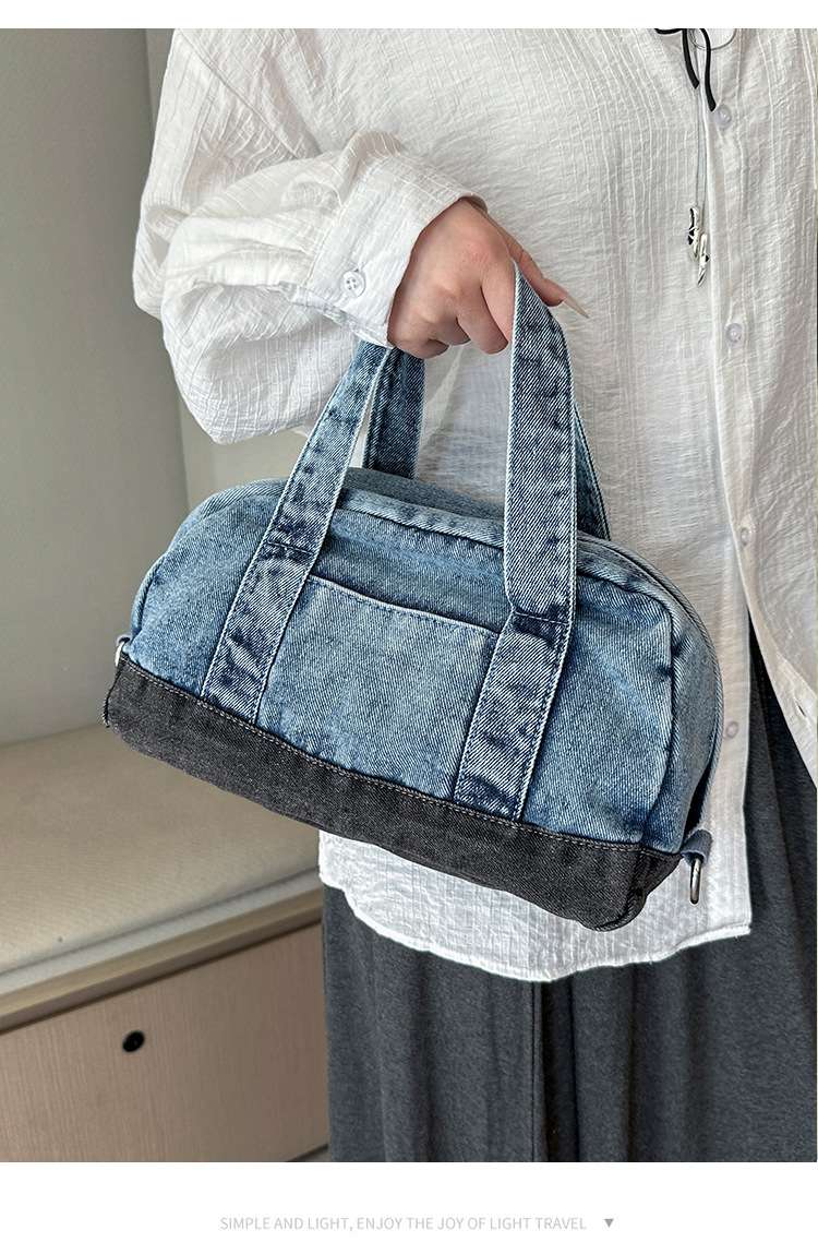 Bolso retro estilo Hong Kong 2025 verano nuevo bolso femenino estilo universitario bolso de mezclilla bolso de mensajero de color de contraste casual
