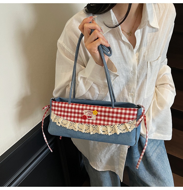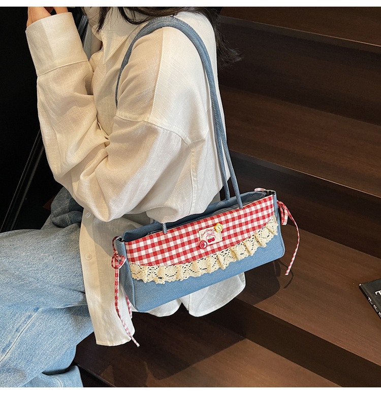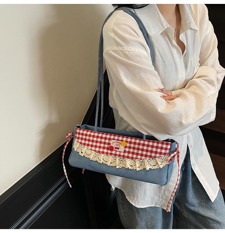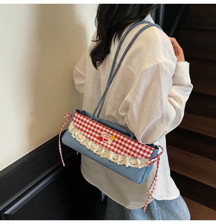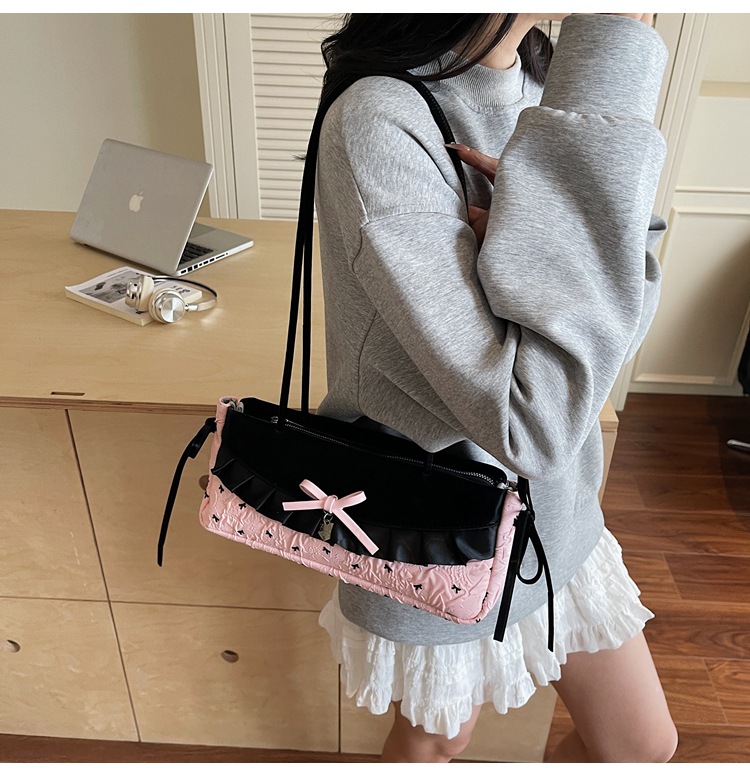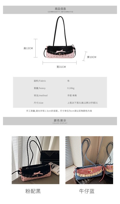 Bolso de axila de moda coreana 2025 verano nuevo bolso femenino lindo lazo bolso de hombro de encaje