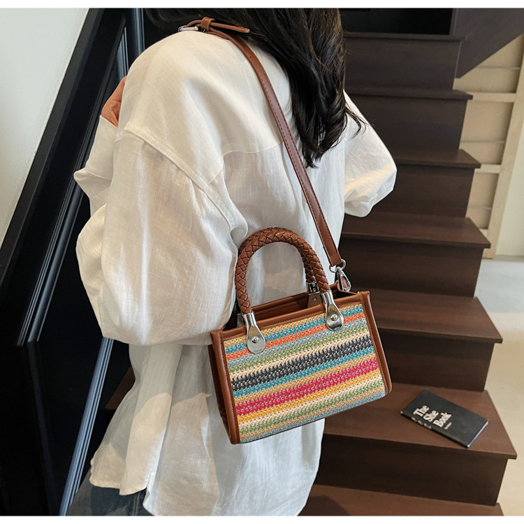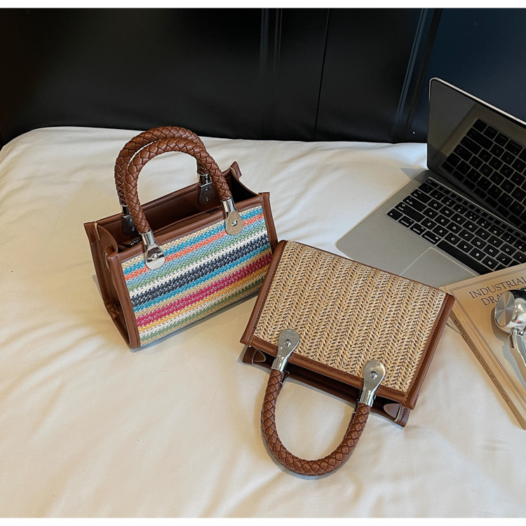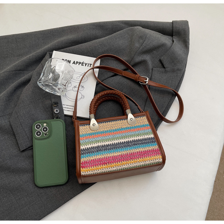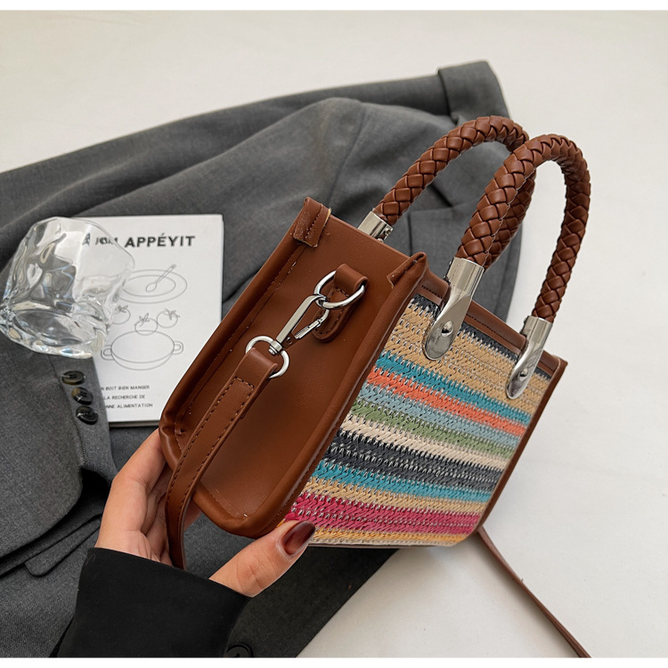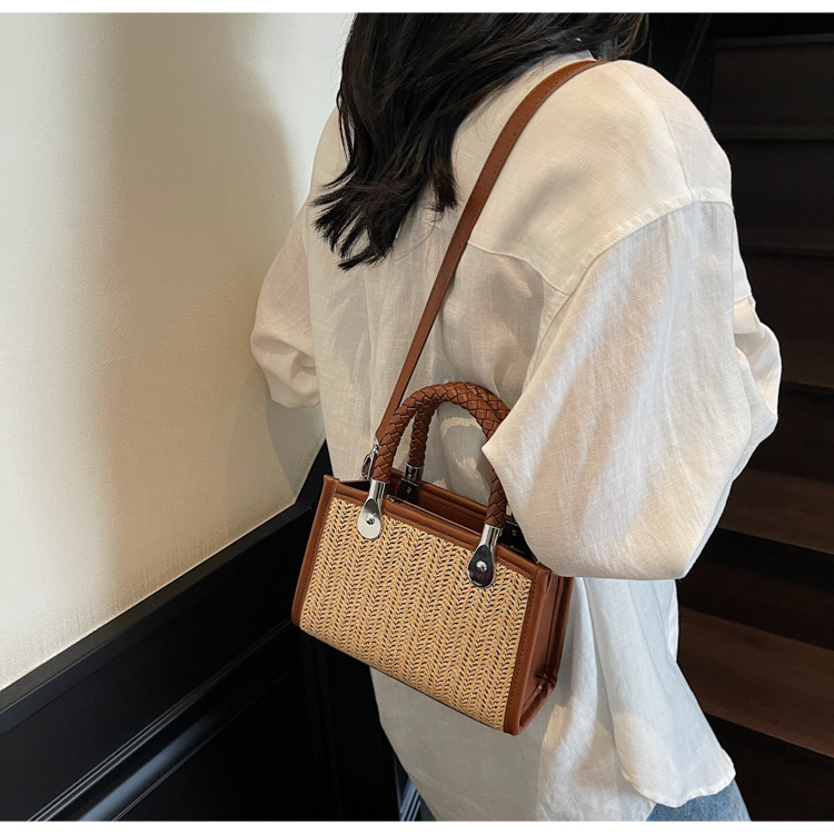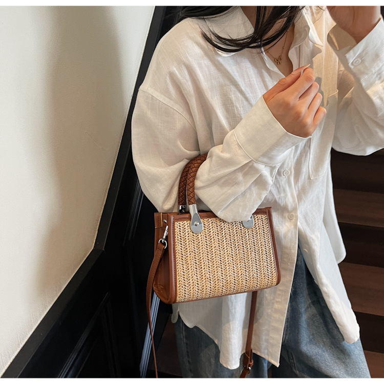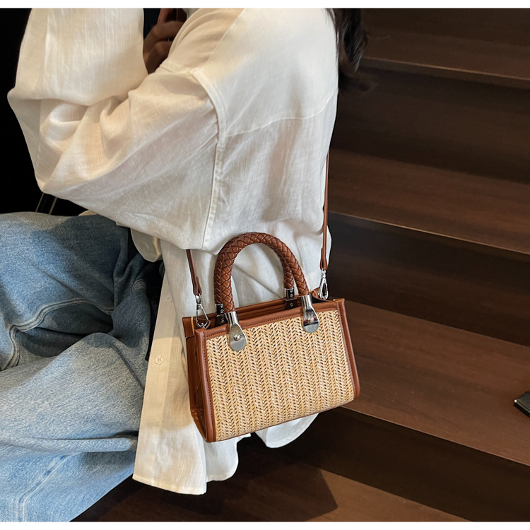Bolso Tote popular de este año, nuevo bolso de verano 2025, bolso de hombro de color de contraste tejido de paja, bolso de mensajero retro para mujer