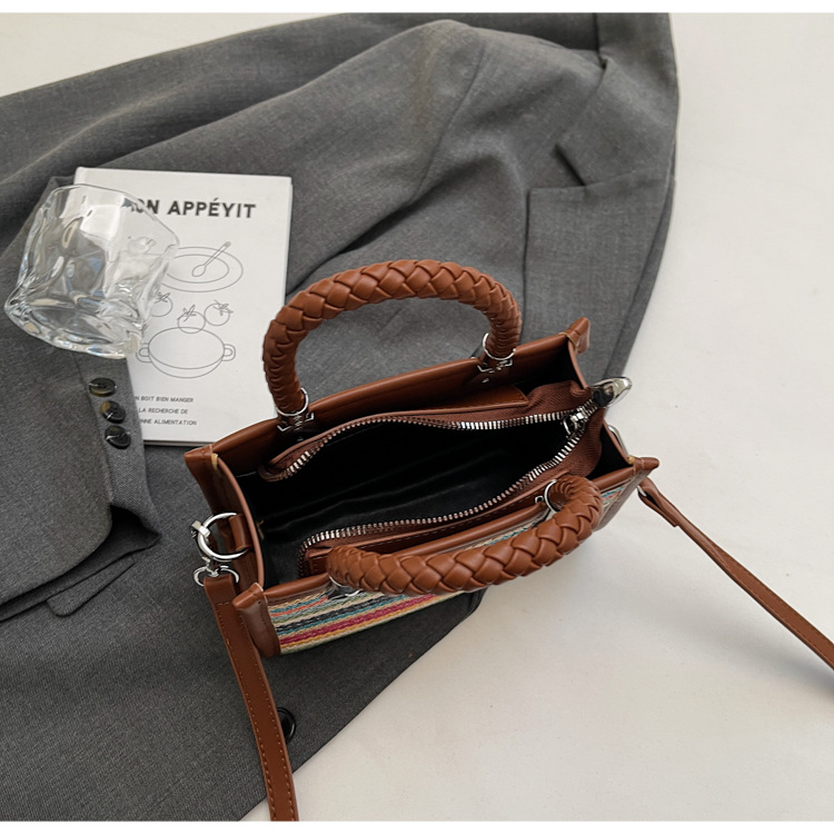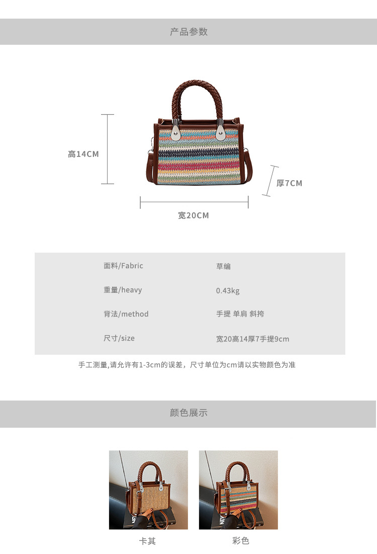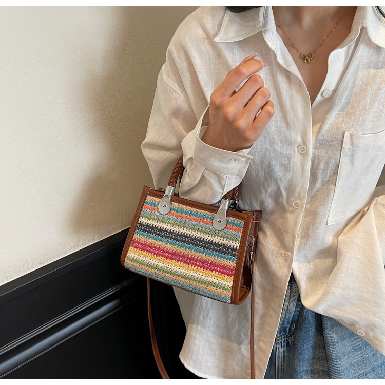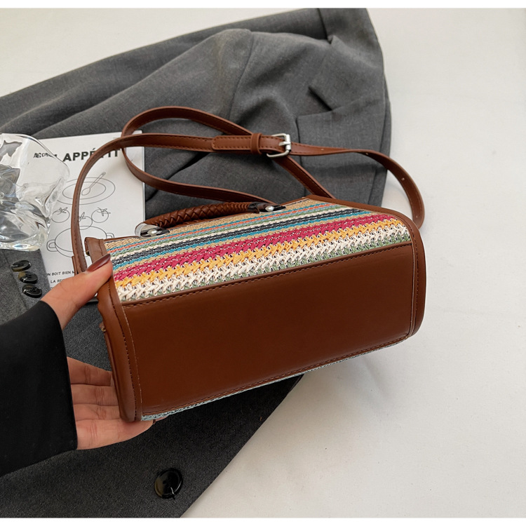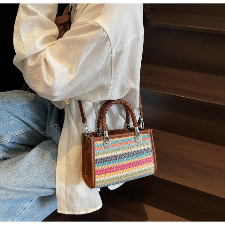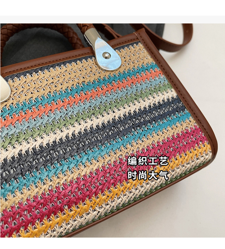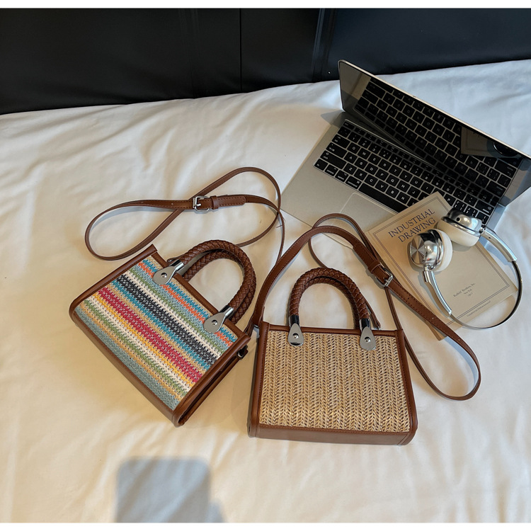Bolso Tote popular de este año, nuevo bolso de verano 2025, bolso de hombro de color de contraste tejido de paja, bolso de mensajero retro para mujer