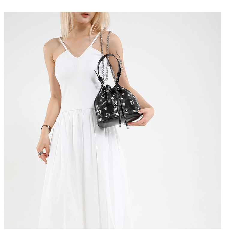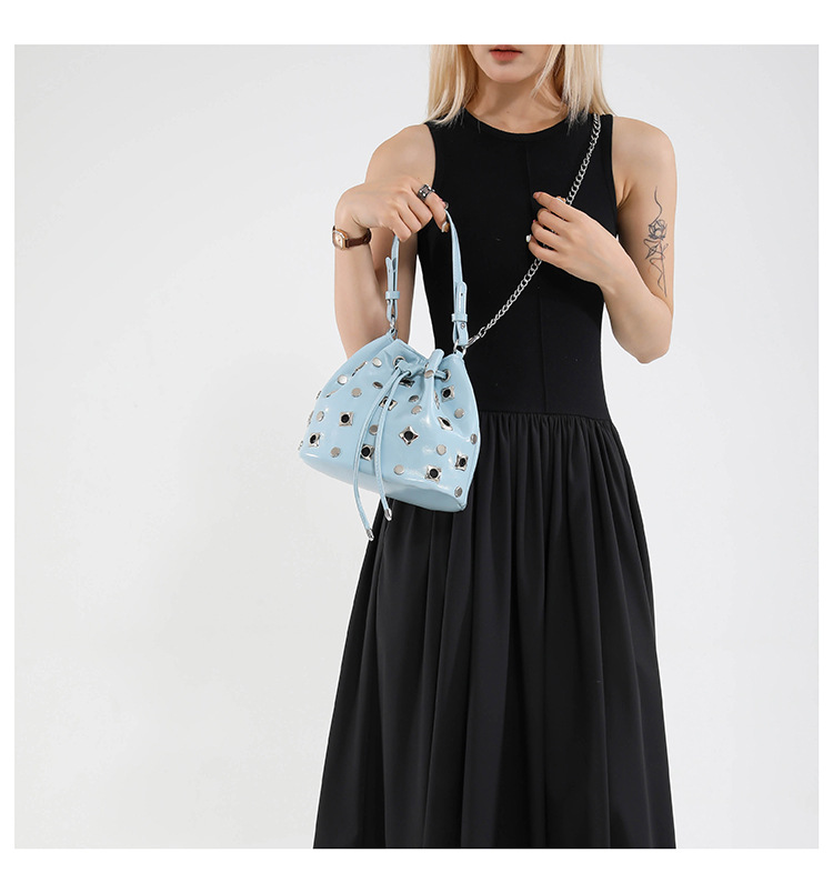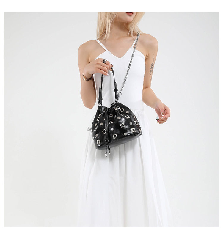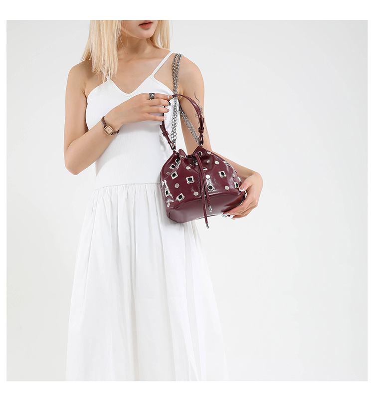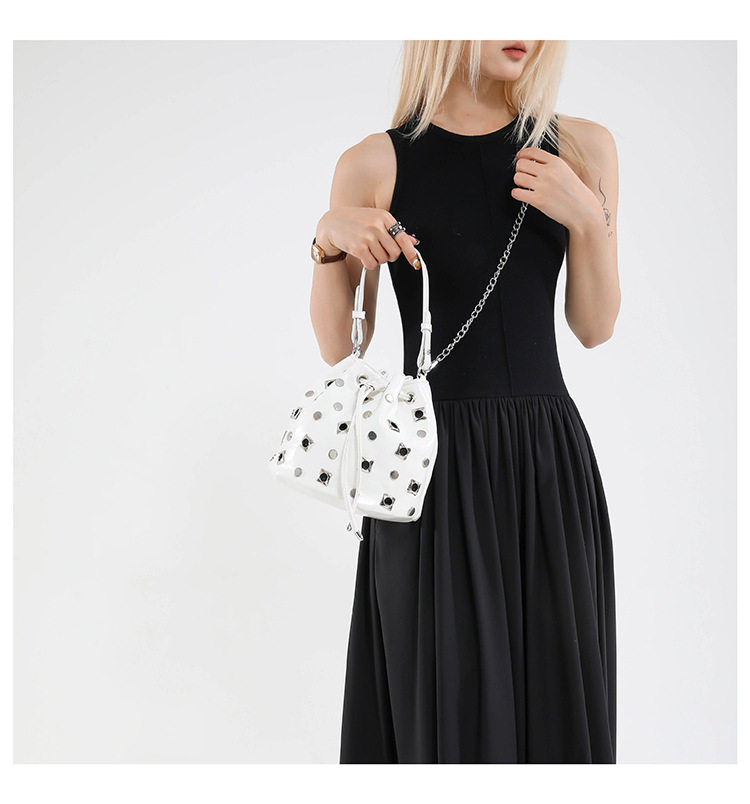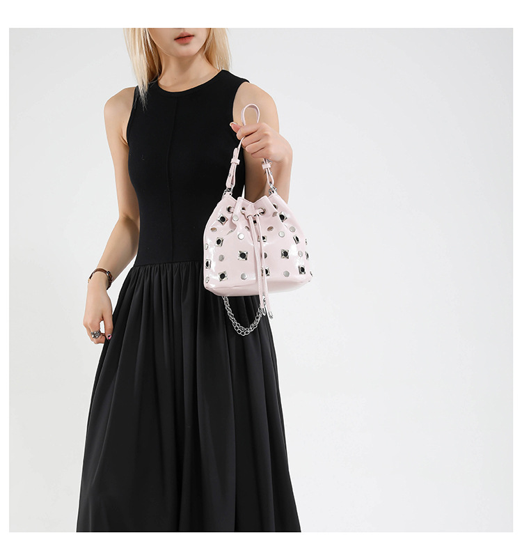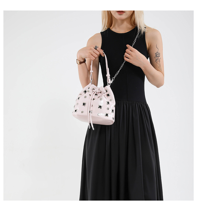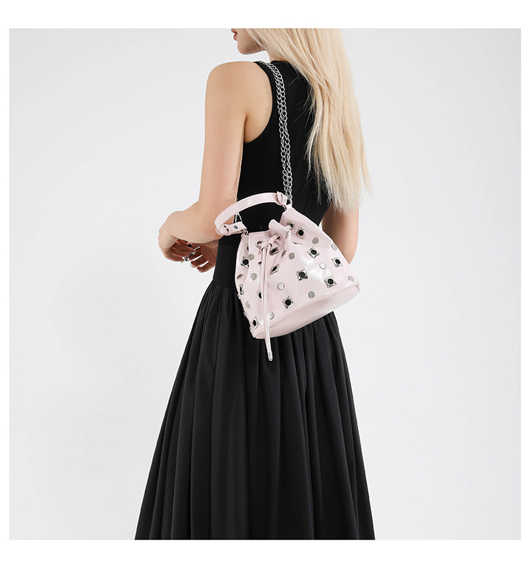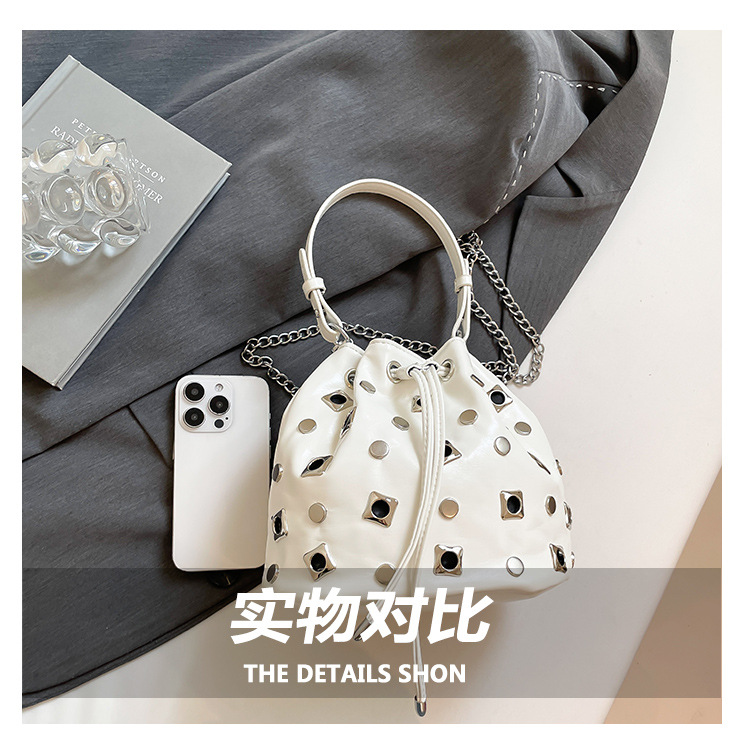 Bolso de cubo de textura transfronteriza 2025 nuevo bolso Gypsophila remache bandolera moda cadena bandolera mujer