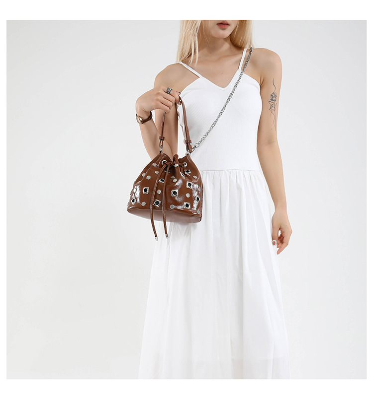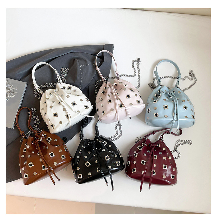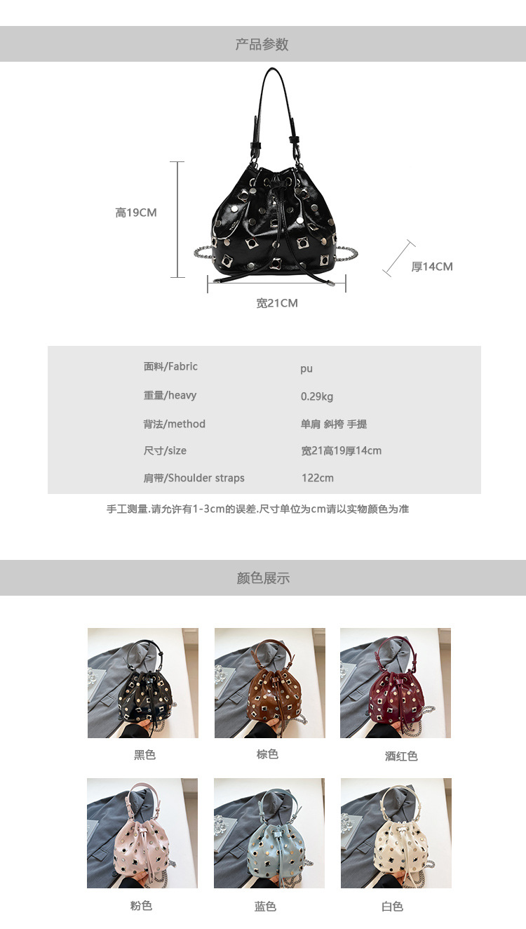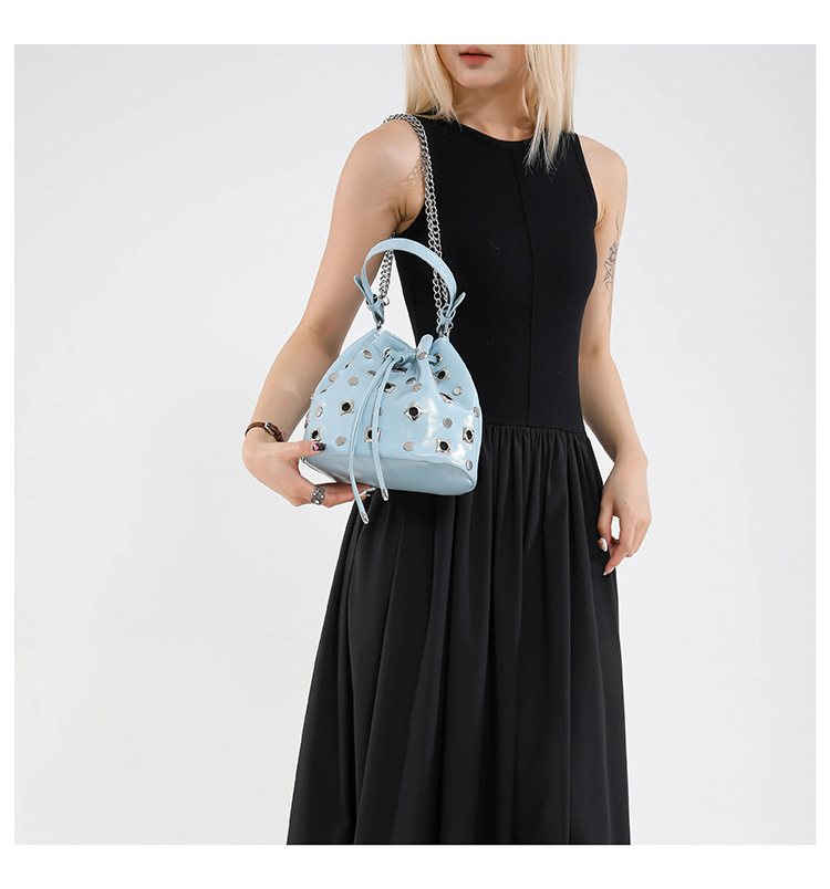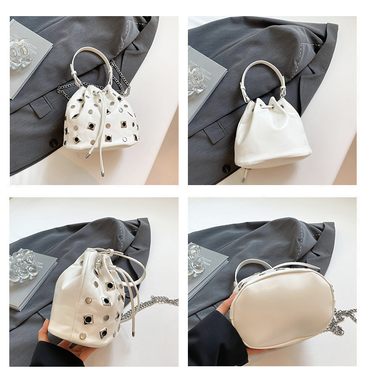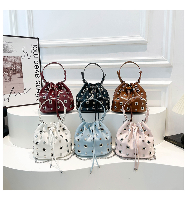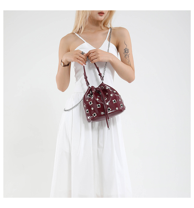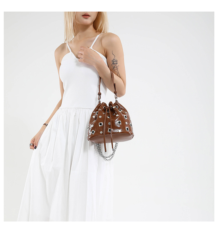 Bolso de cubo de textura transfronteriza 2025 nuevo bolso Gypsophila remache bandolera moda cadena bandolera mujer