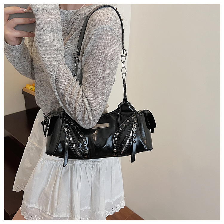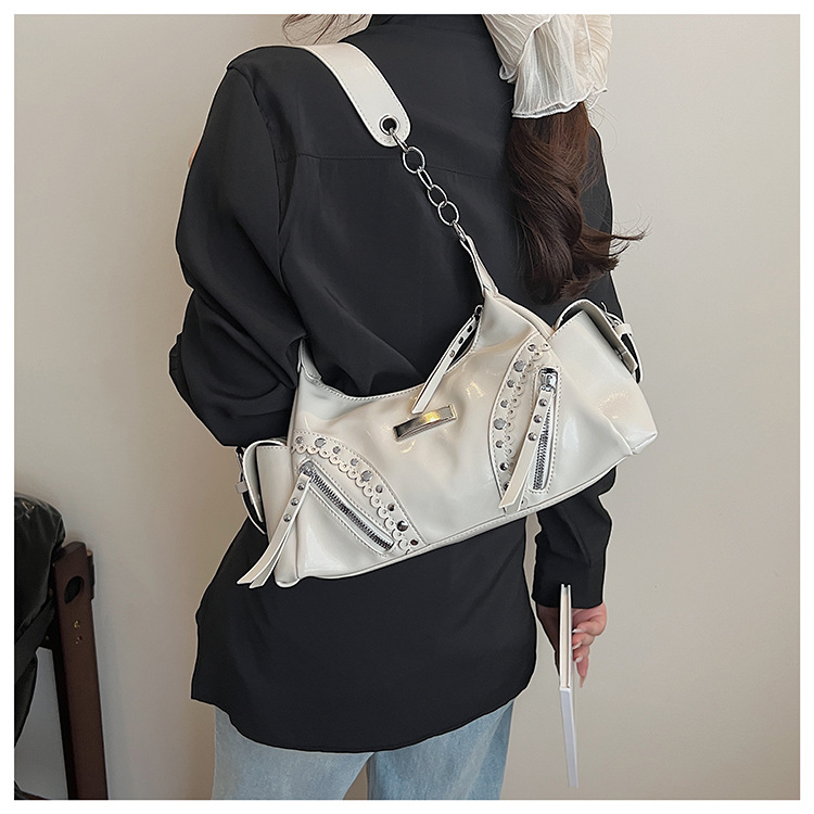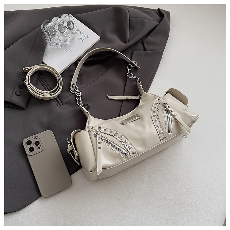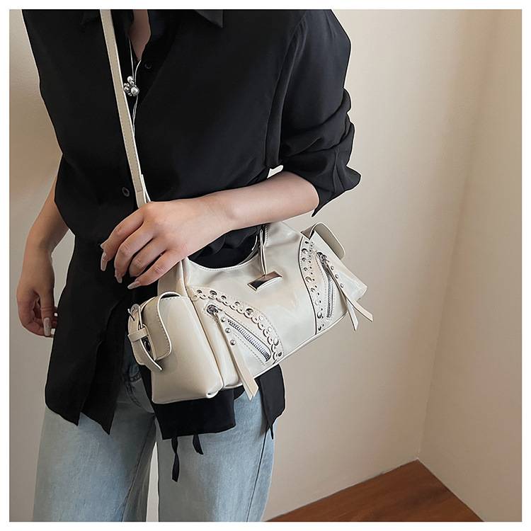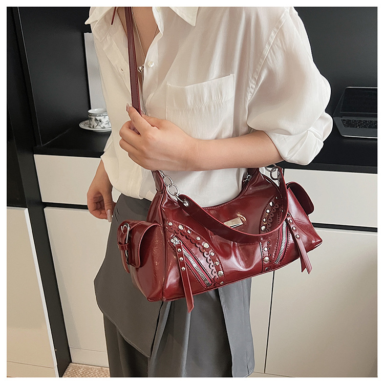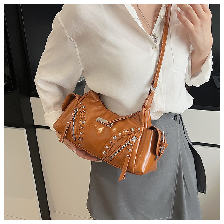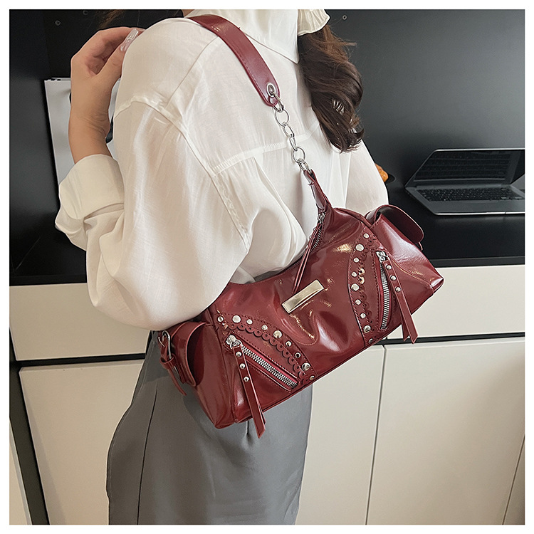 Bolso de axila de textura de alta calidad 2025 verano nuevo bolso femenino personalizado bolso de remache retro bolso de hombro de gran capacidad