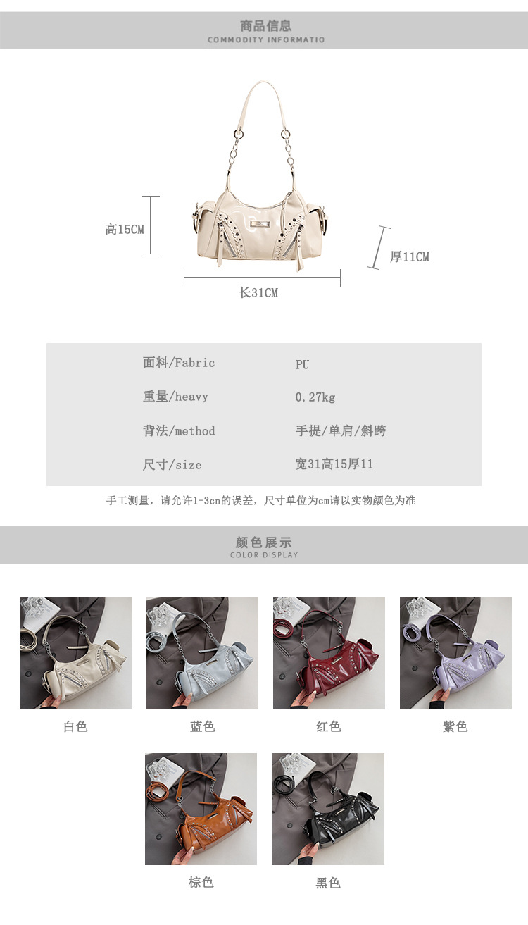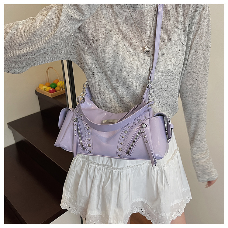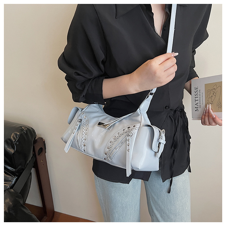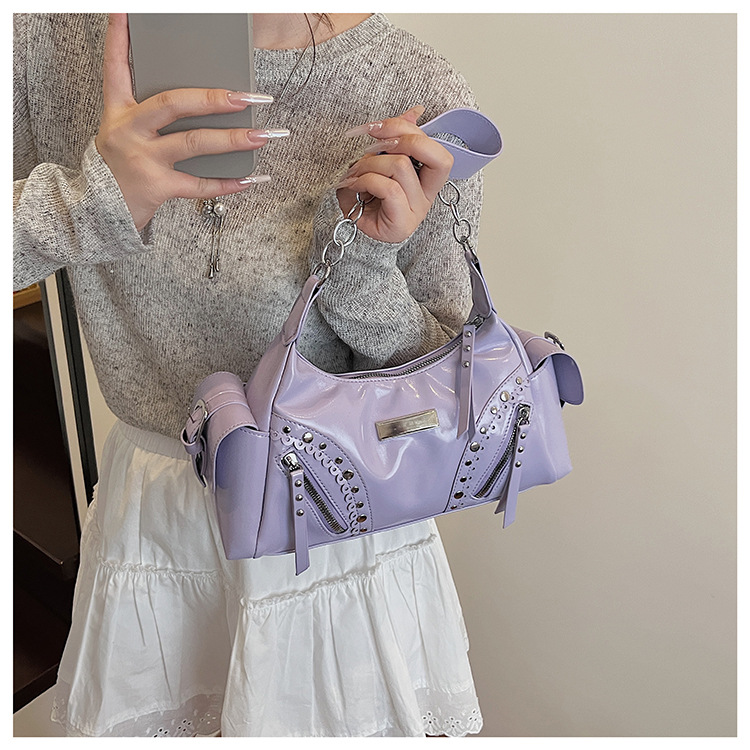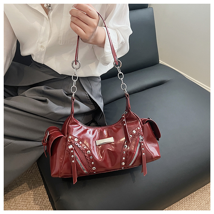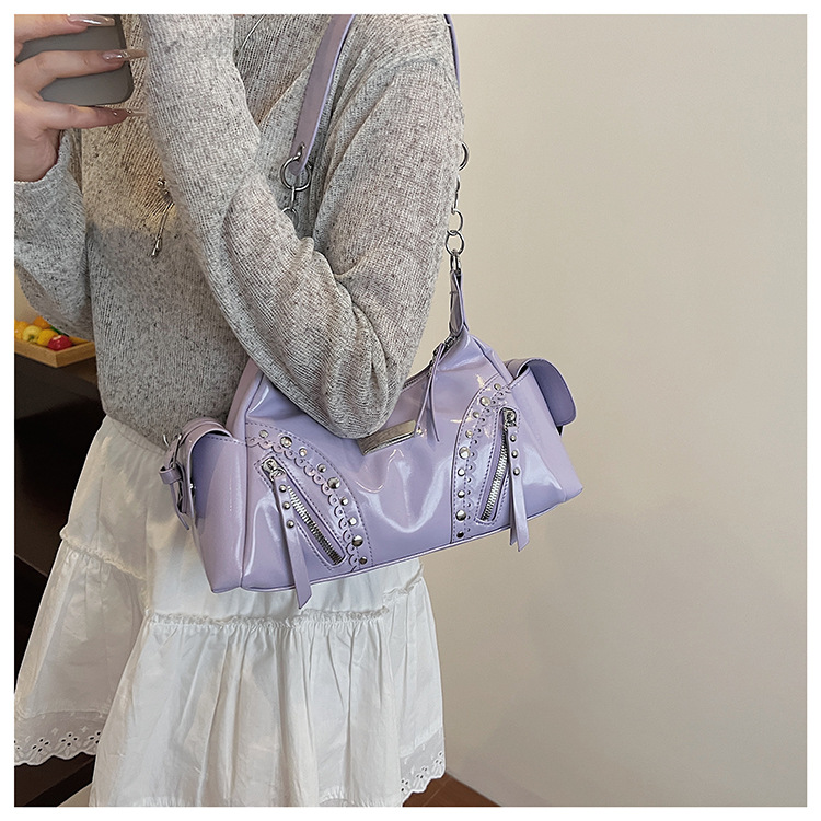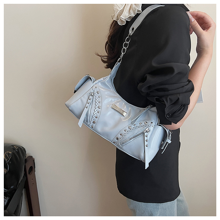 Bolso de axila de textura de alta calidad 2025 verano nuevo bolso femenino personalizado bolso de remache retro bolso de hombro de gran capacidad