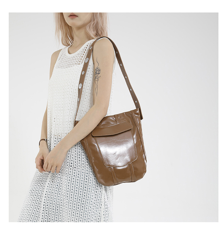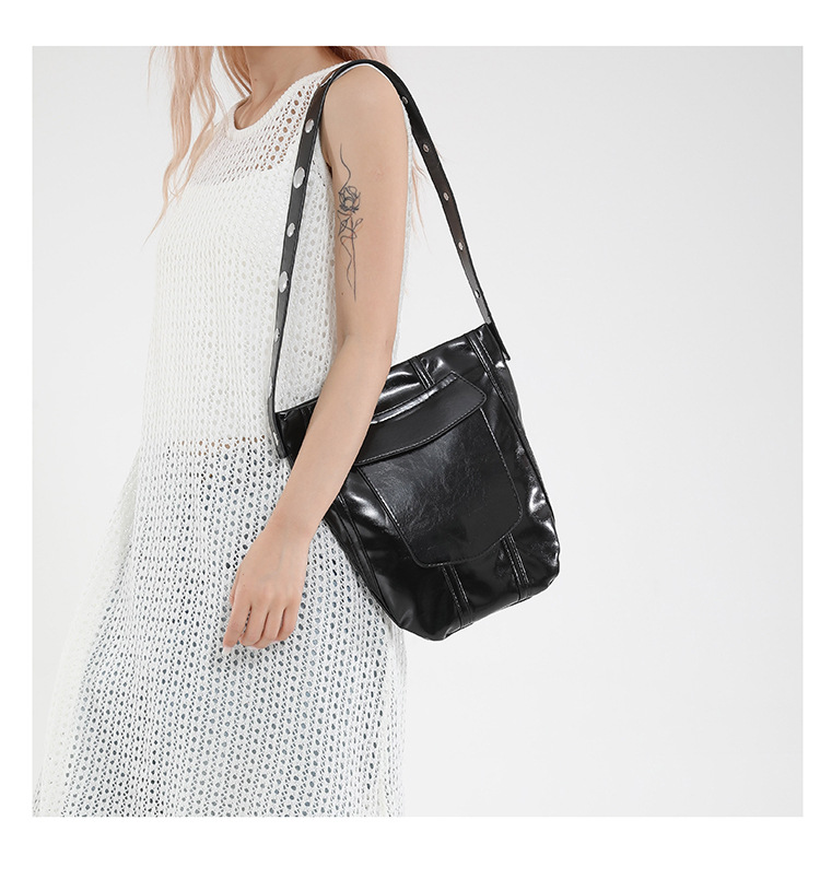 Bolso de axila de textura de alta calidad 2025 verano nuevo bolso femenino retro remache bolso de hombro de gran capacidad de moda