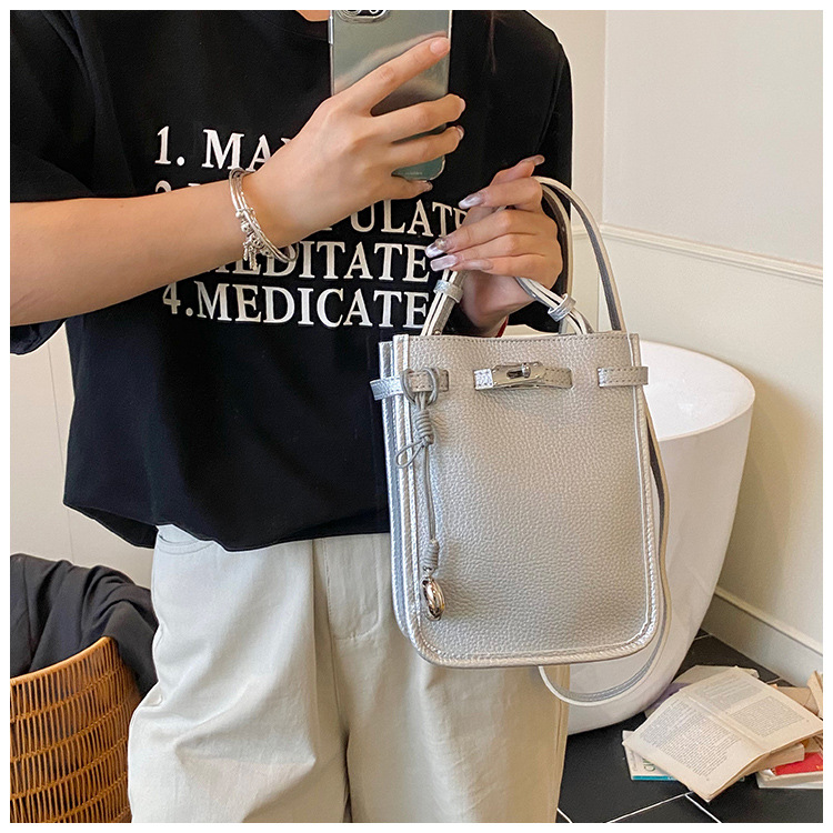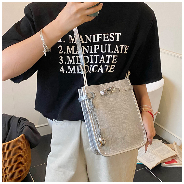Bolso de teléfono móvil popular de este año 2025 verano nuevo bolso femenino bolso de hombro con patrón de lichi simple bolso de mensajero de todo fósforo de moda