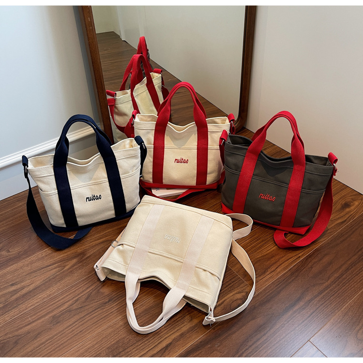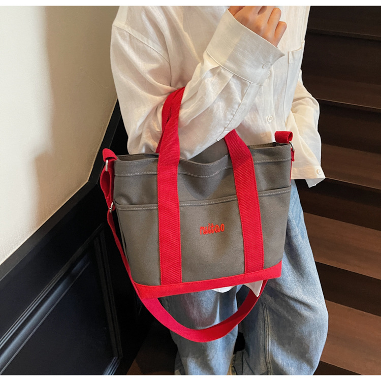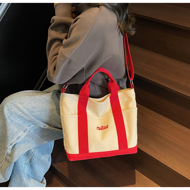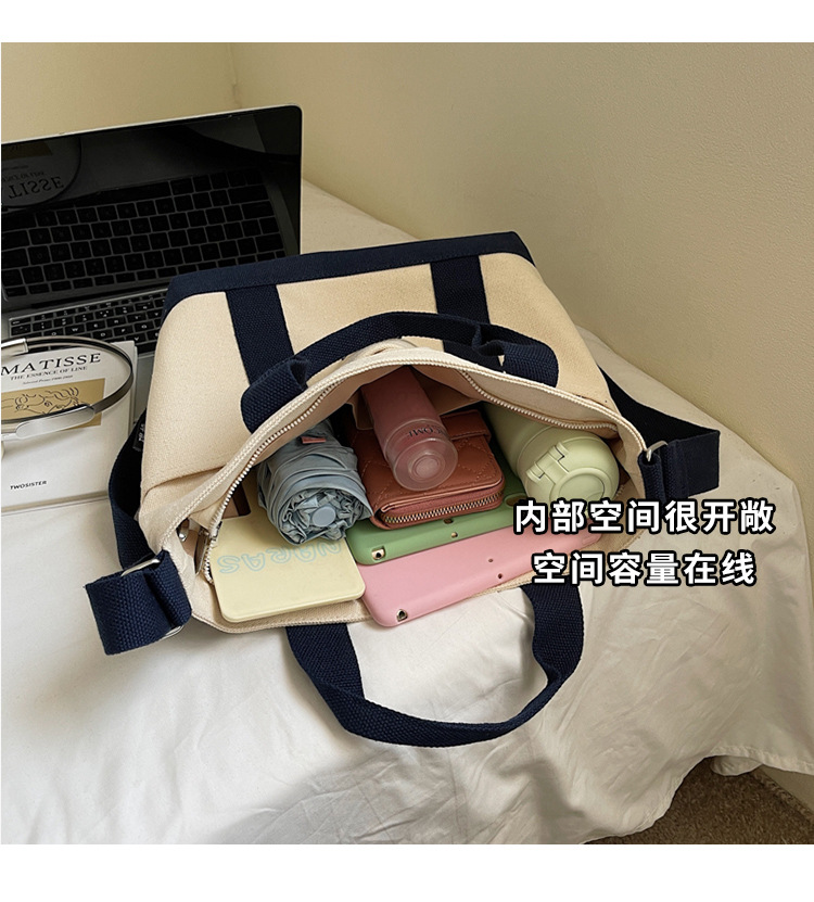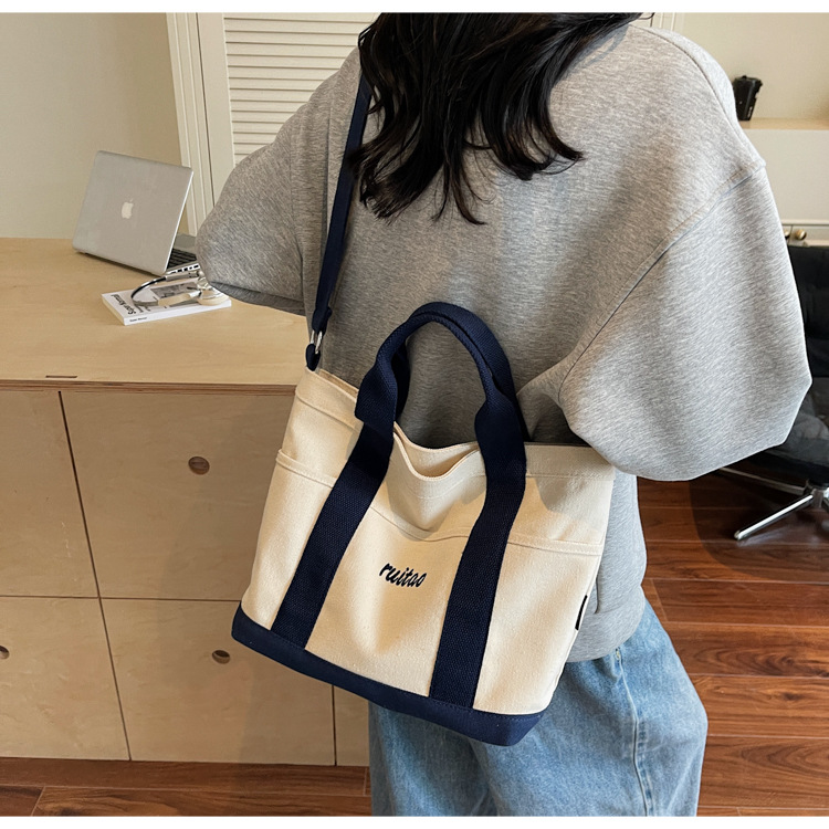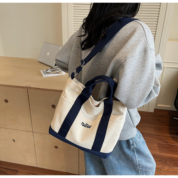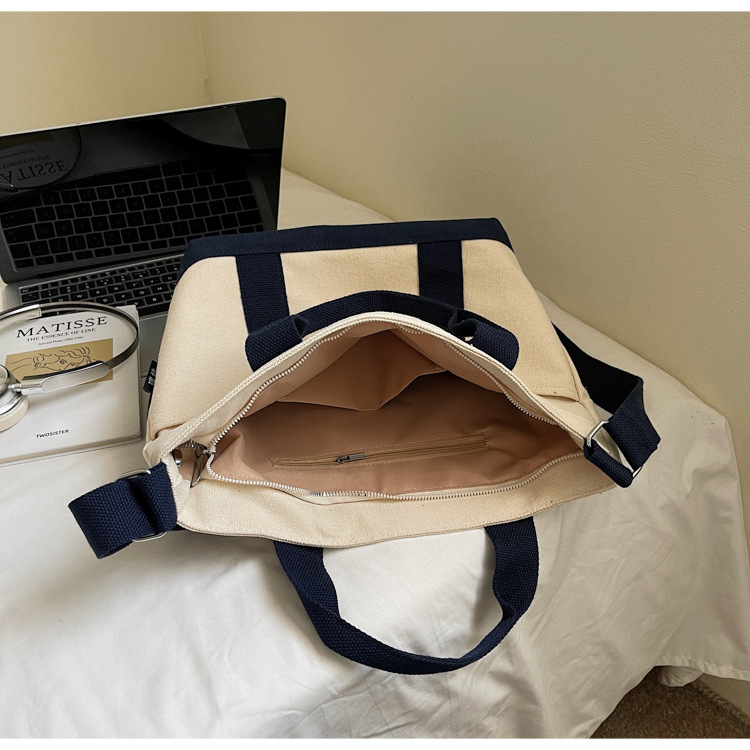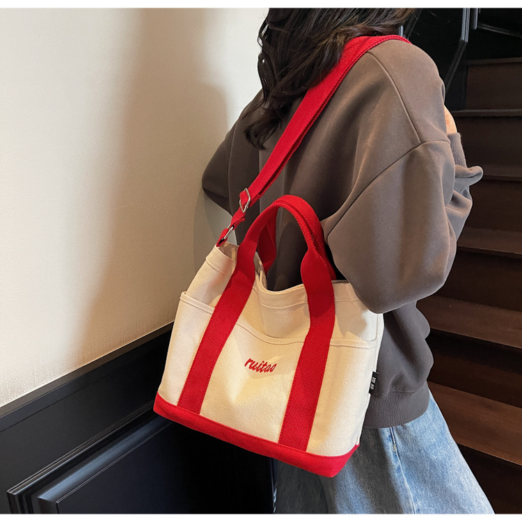 Bolso Tote de moda coreana 2025 verano nuevo estilo bolso de hombro estilo universitario bolso de mensajero de lona de color de contraste mujer