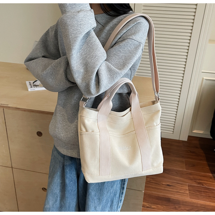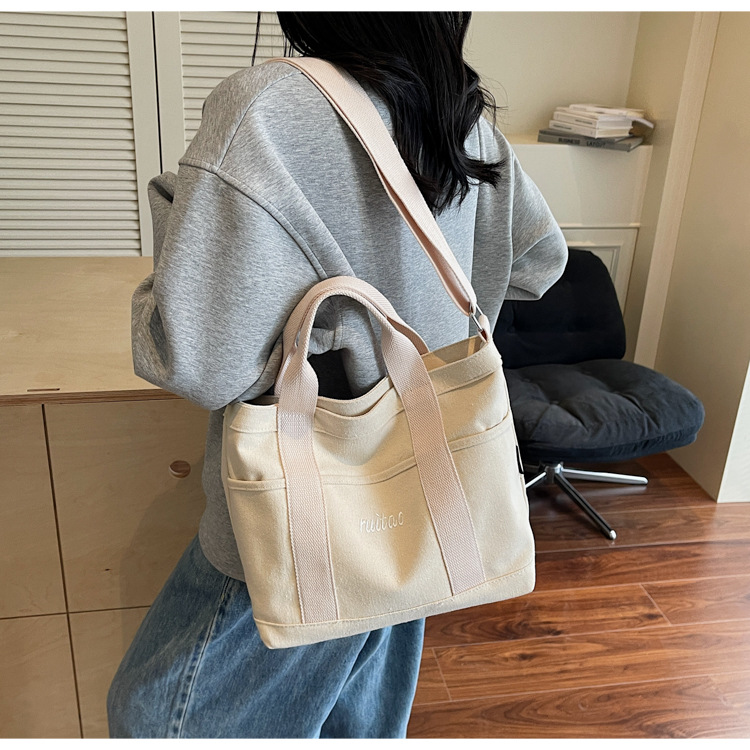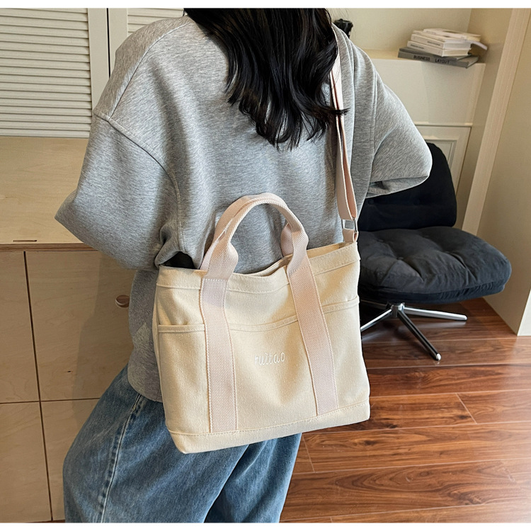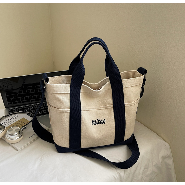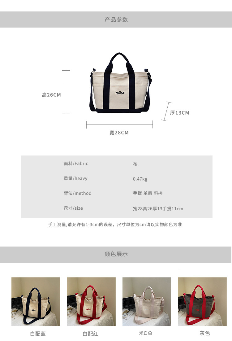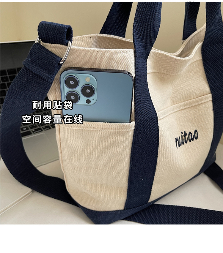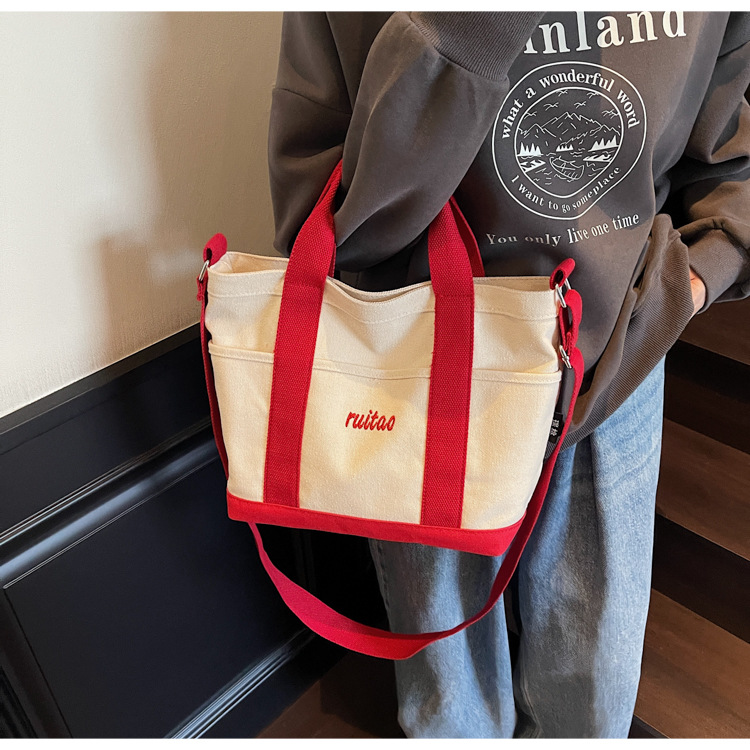 Bolso Tote de moda coreana 2025 verano nuevo estilo bolso de hombro estilo universitario bolso de mensajero de lona de color de contraste mujer