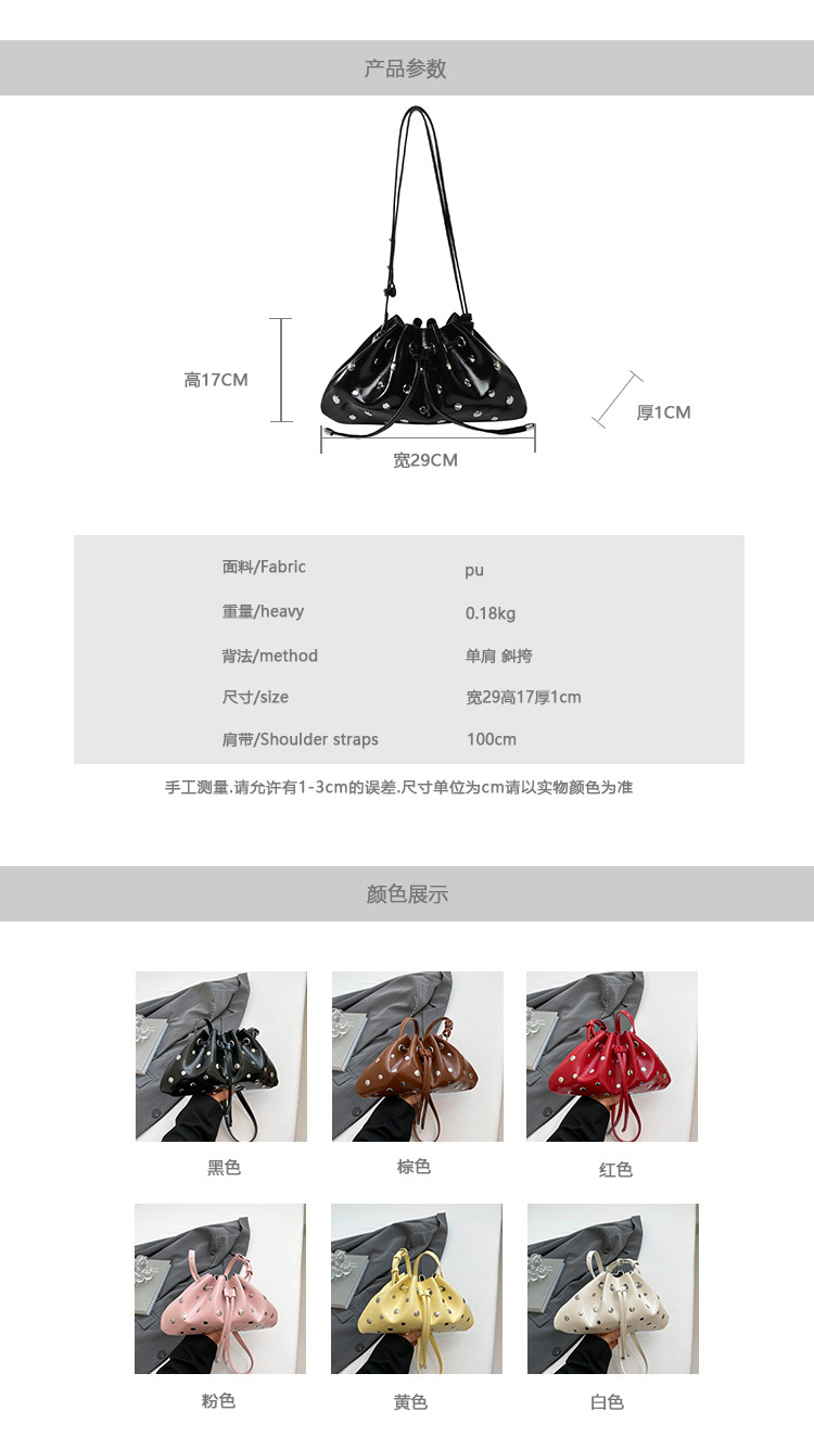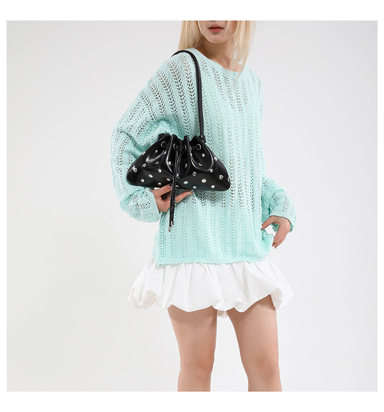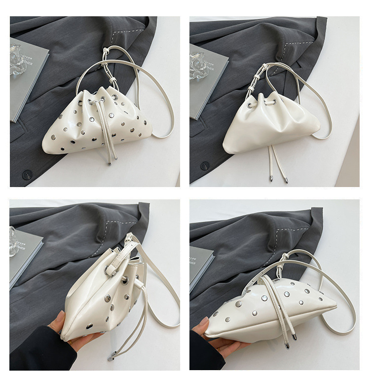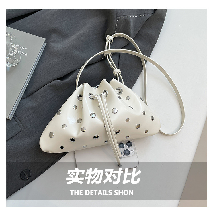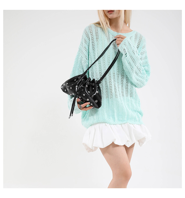 Bolso de cubo de textura transfronteriza 2025 verano nuevo bolso femenino moda gypsophila bolso de hombro remache personalizado bolso de mensajero