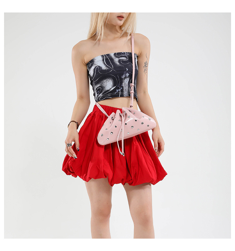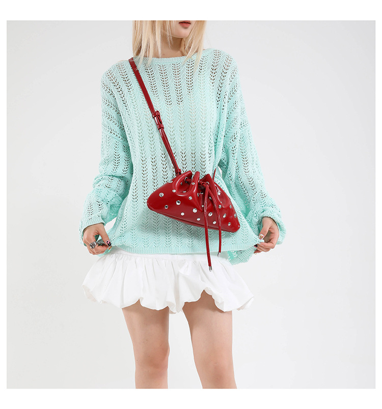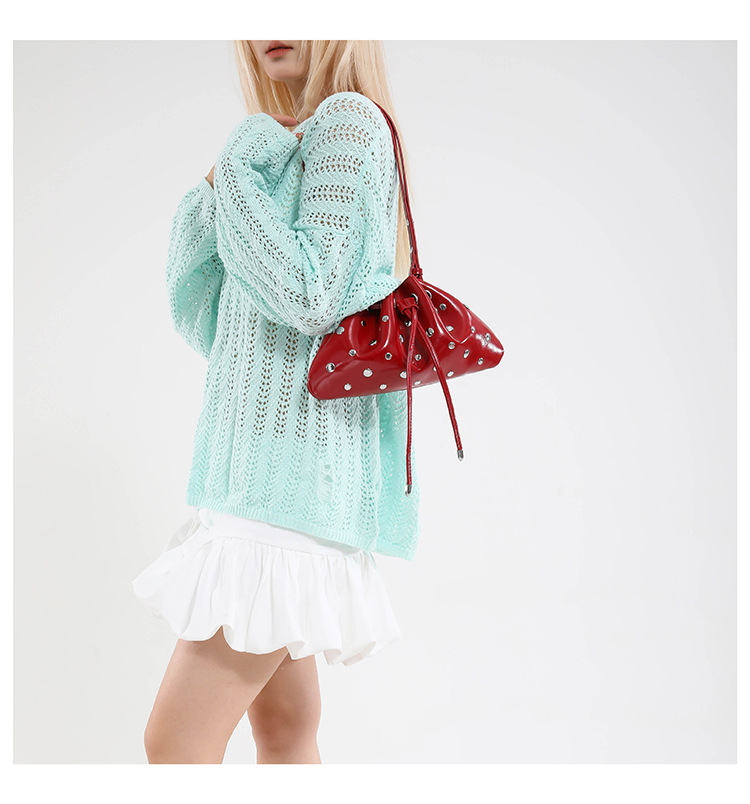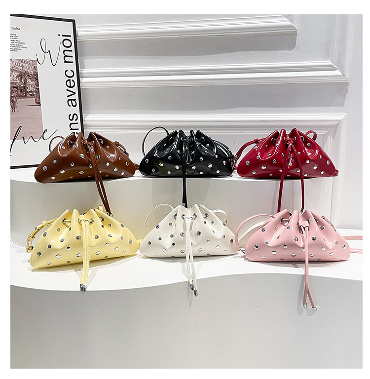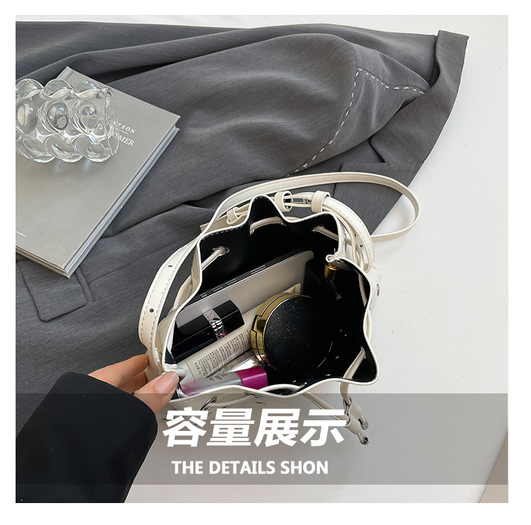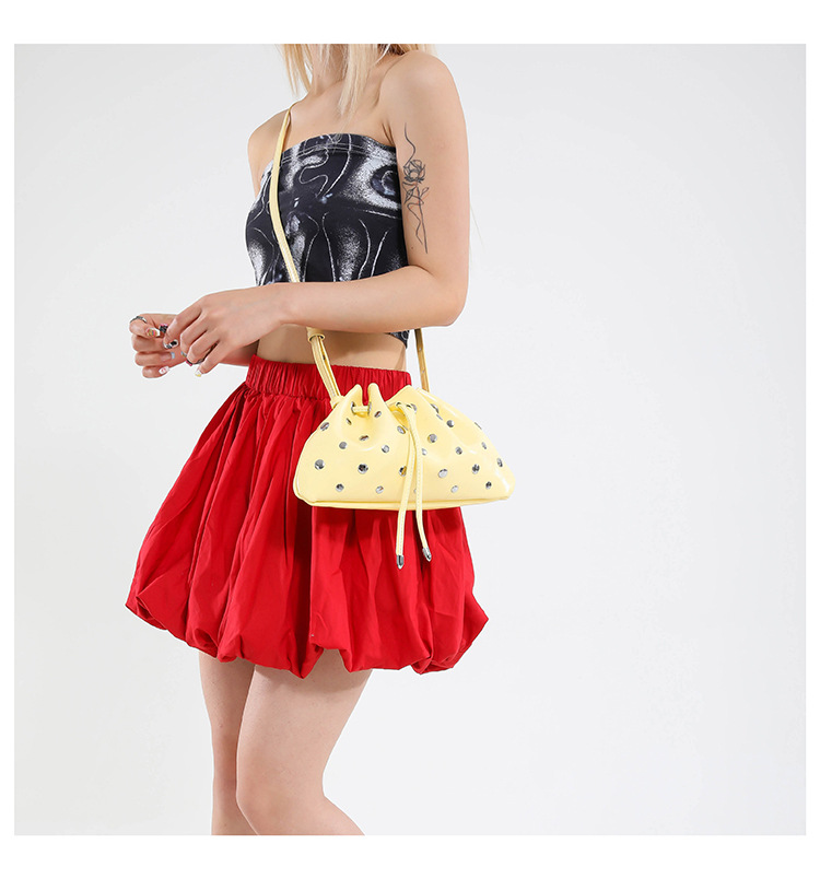 Bolso de cubo de textura transfronteriza 2025 verano nuevo bolso femenino moda gypsophila bolso de hombro remache personalizado bolso de mensajero