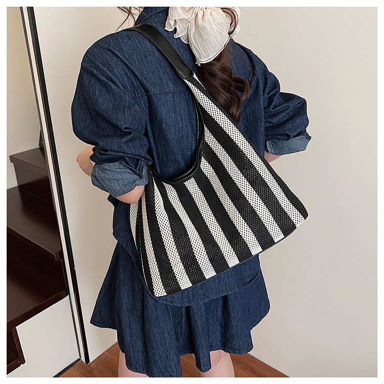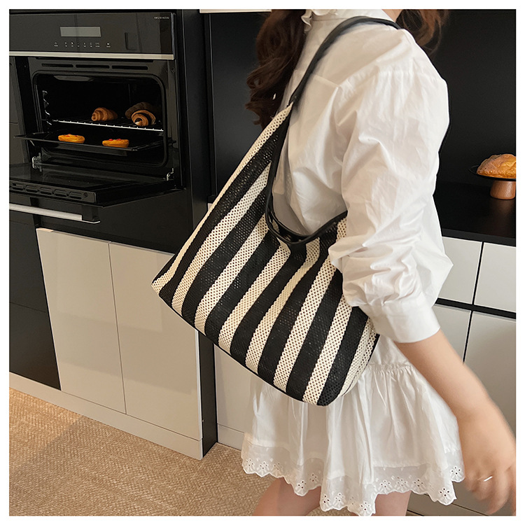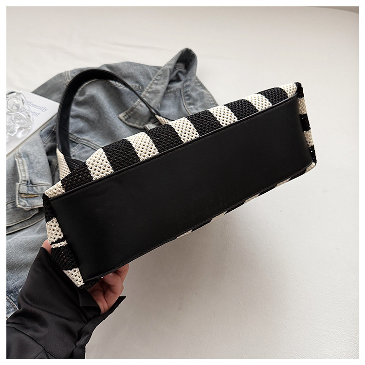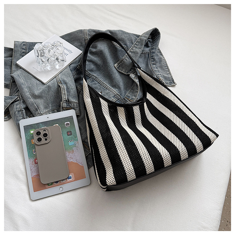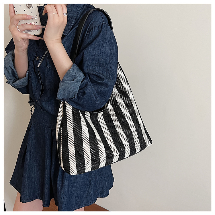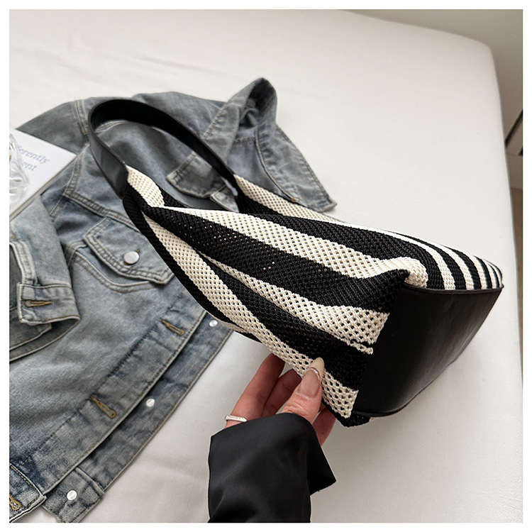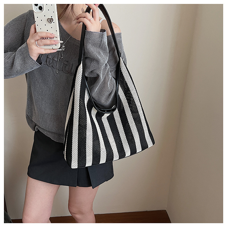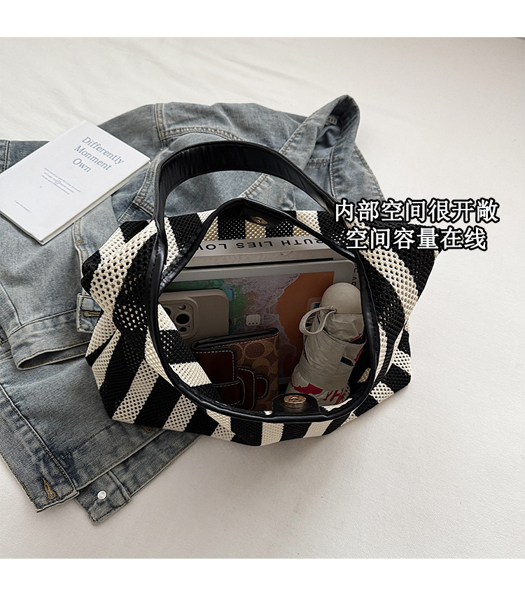 Bolso Tote de moda coreana 2025 nuevo bolso de mujer tejido casual bolso de estilo perezoso bolso de hombro a rayas en contraste