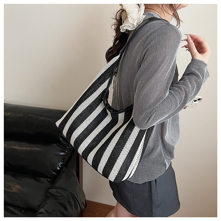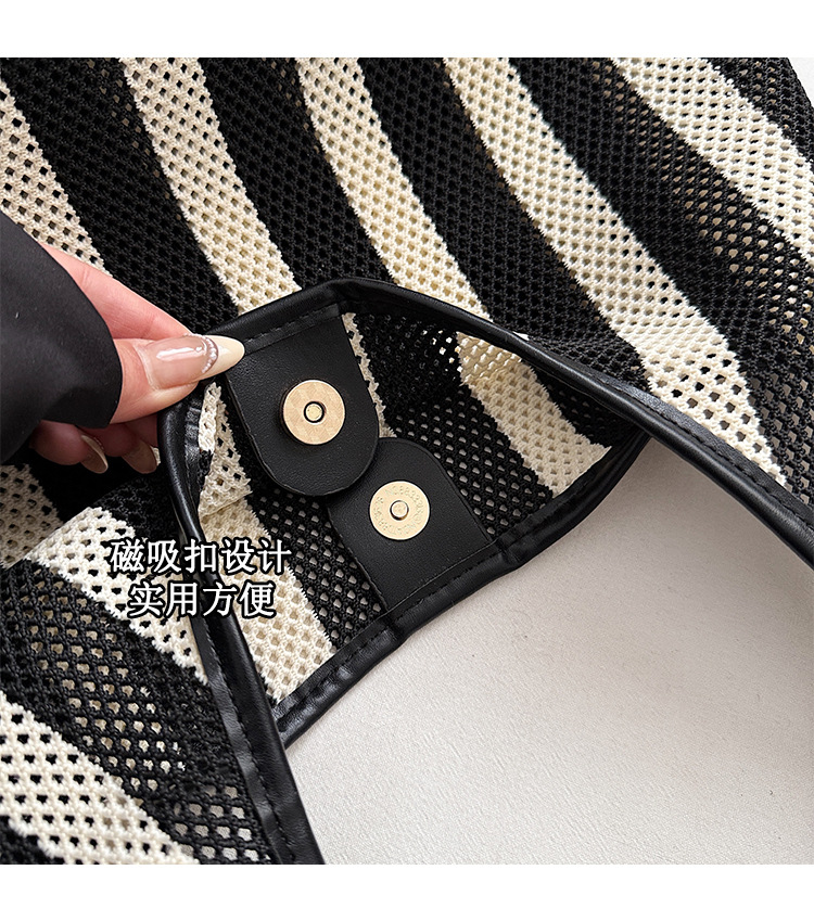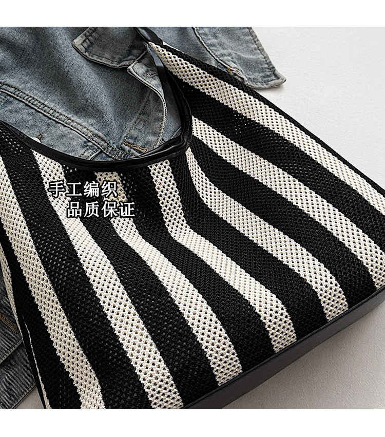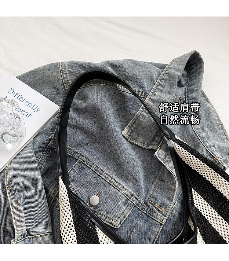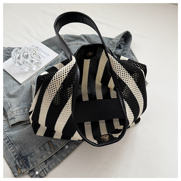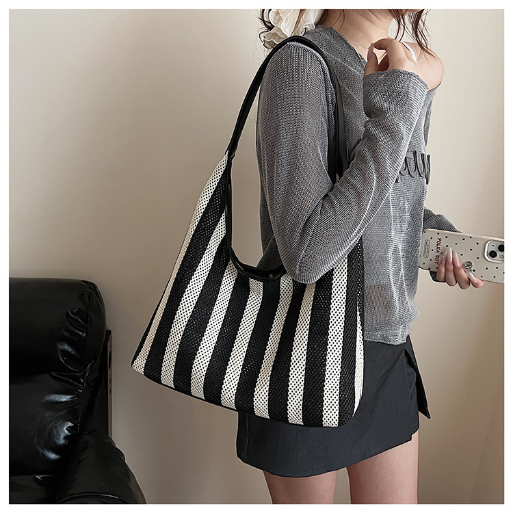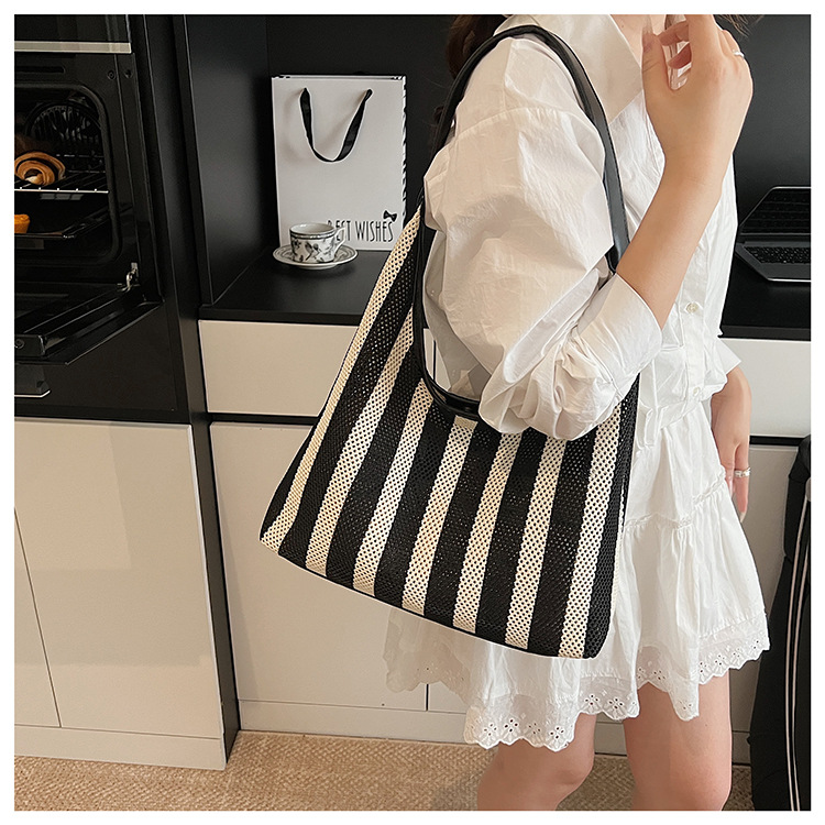 Bolso Tote de moda coreana 2025 nuevo bolso de mujer tejido casual bolso de estilo perezoso bolso de hombro a rayas en contraste