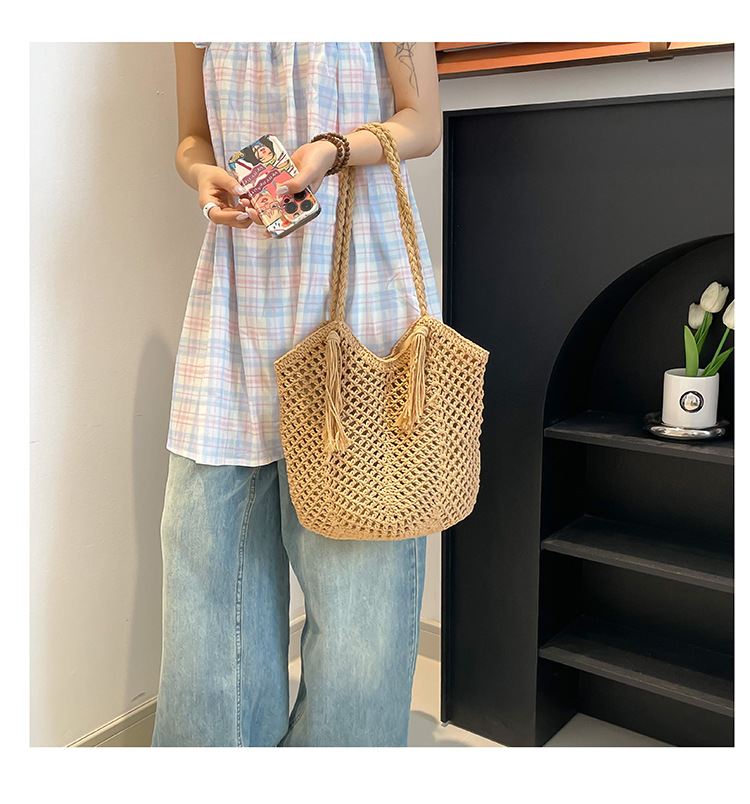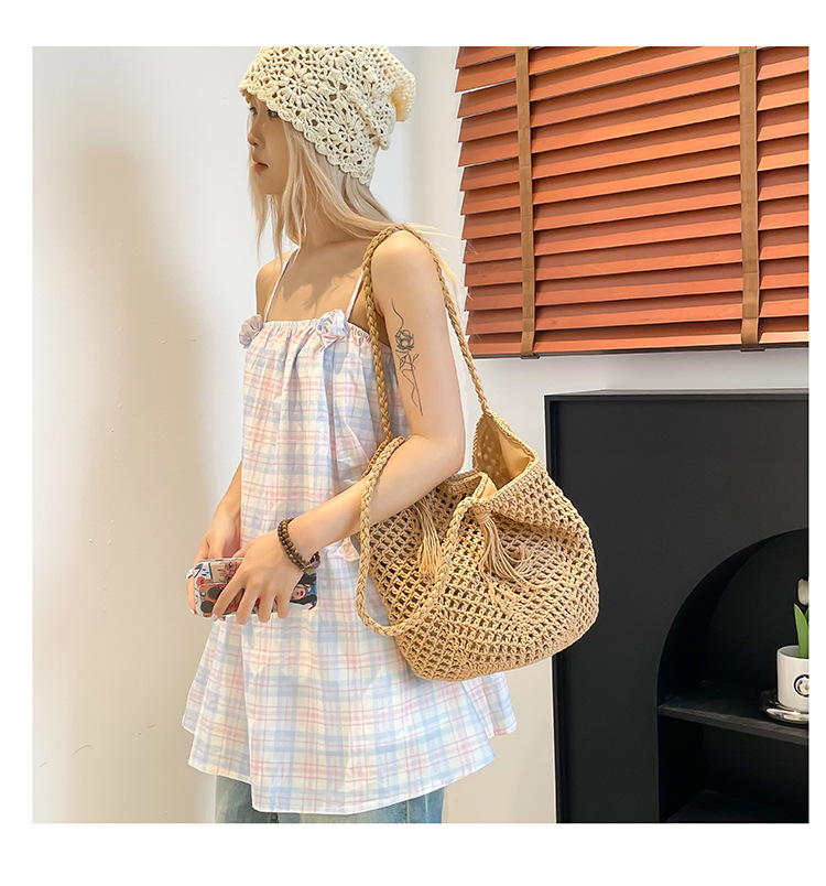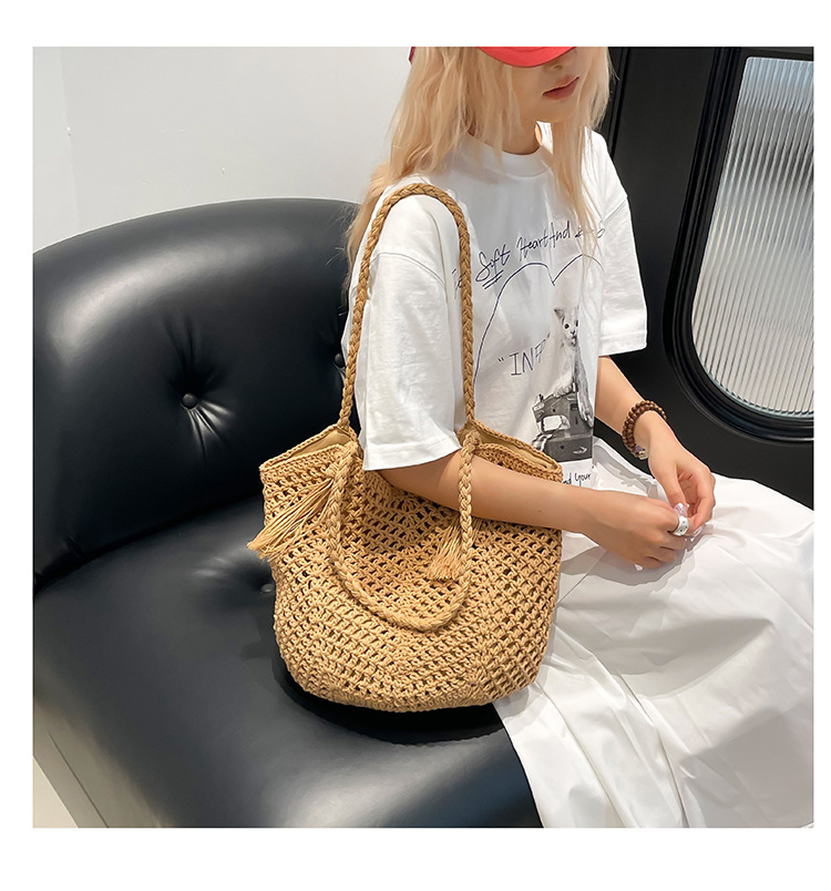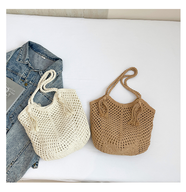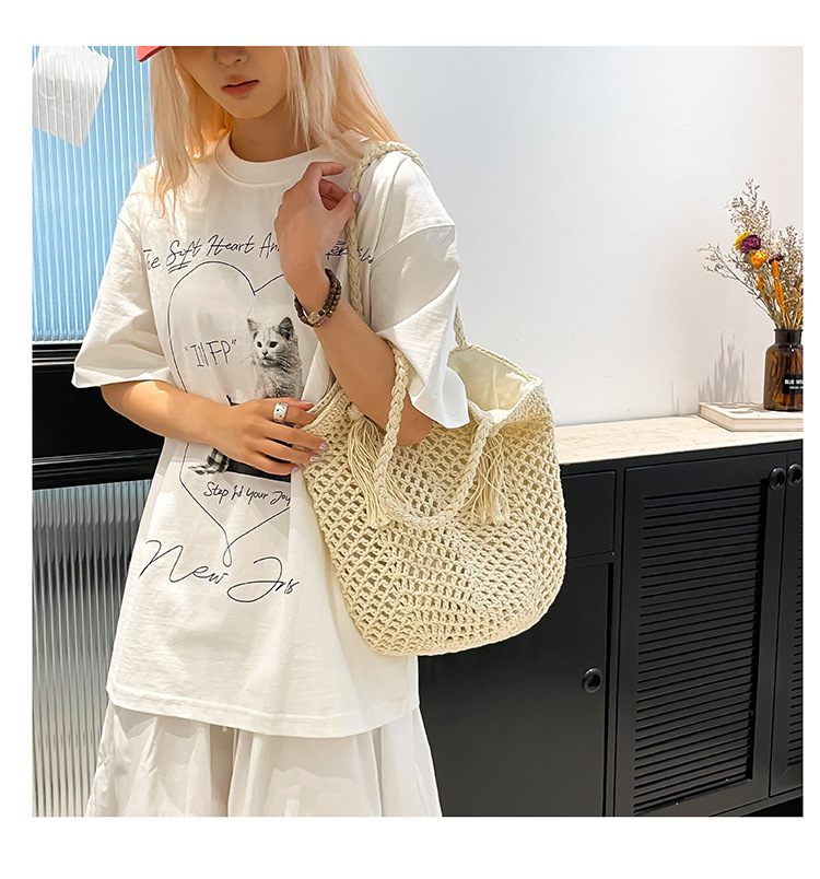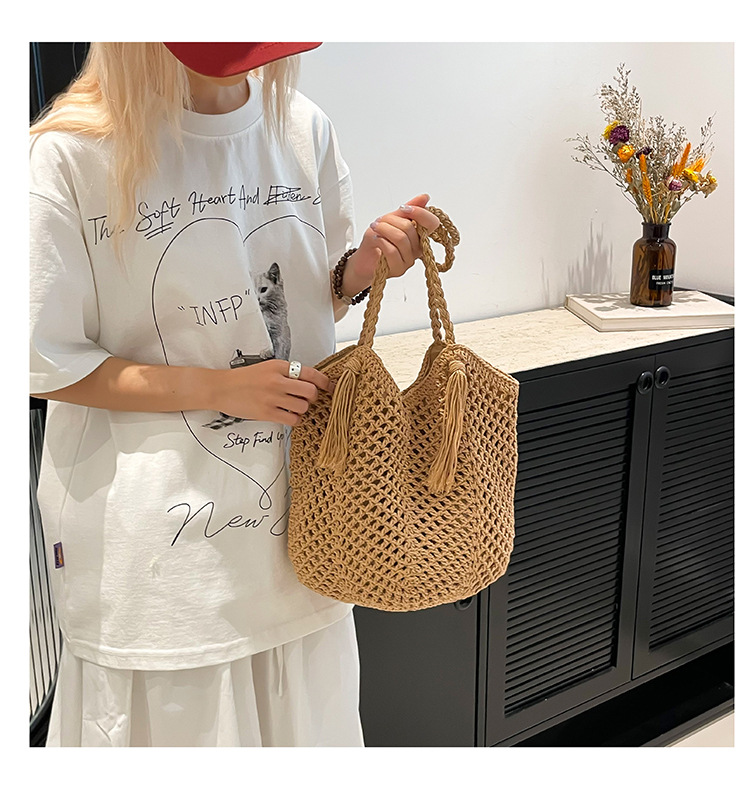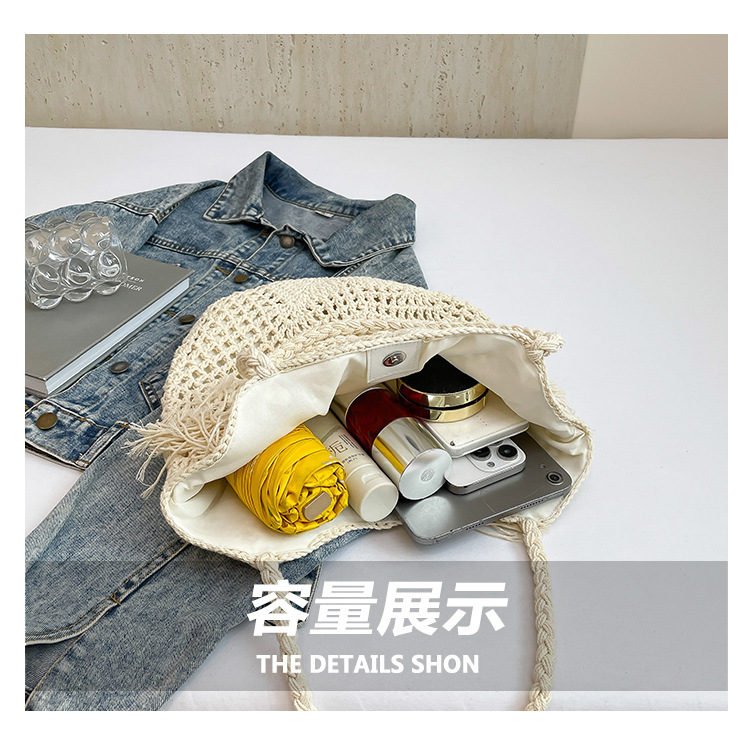 Bolso de vacaciones junto al mar 2025 verano nuevo estilo bolso femenino tejido con flecos bolso de playa de gran capacidad