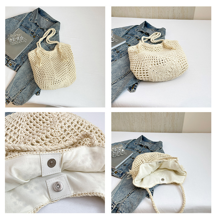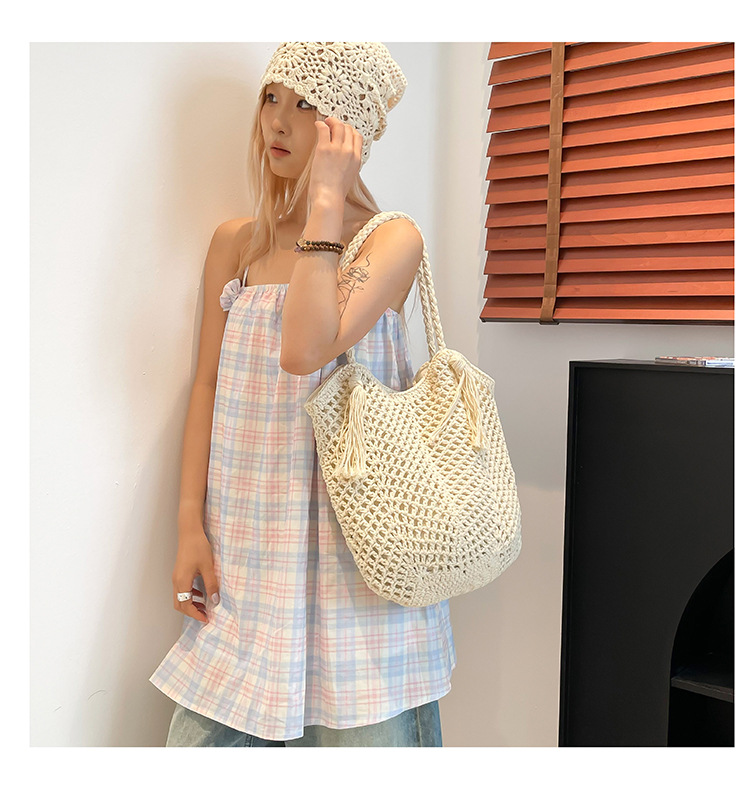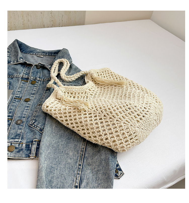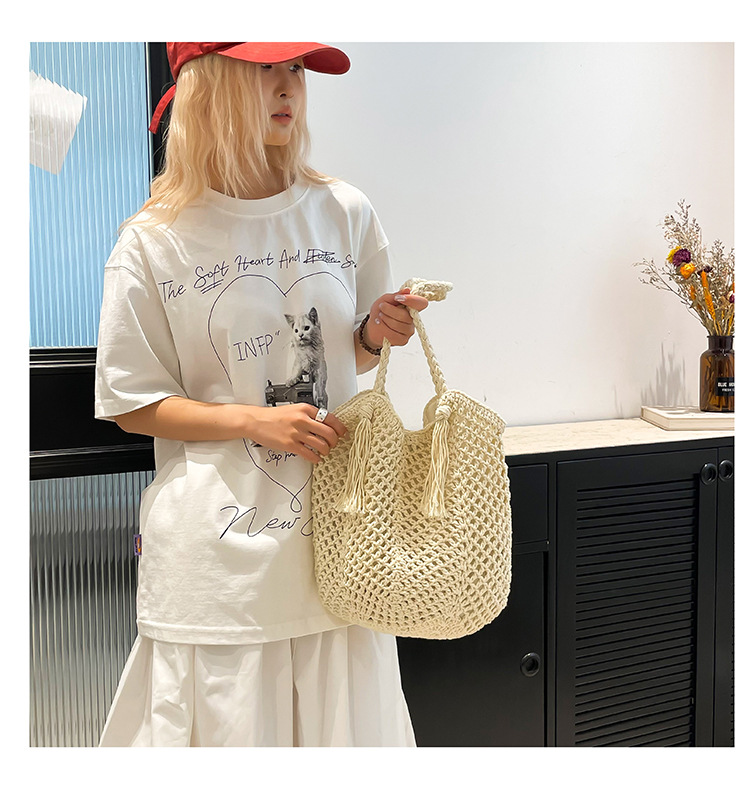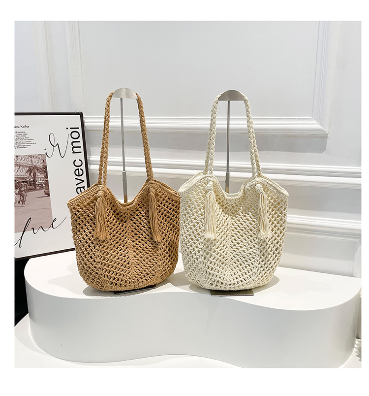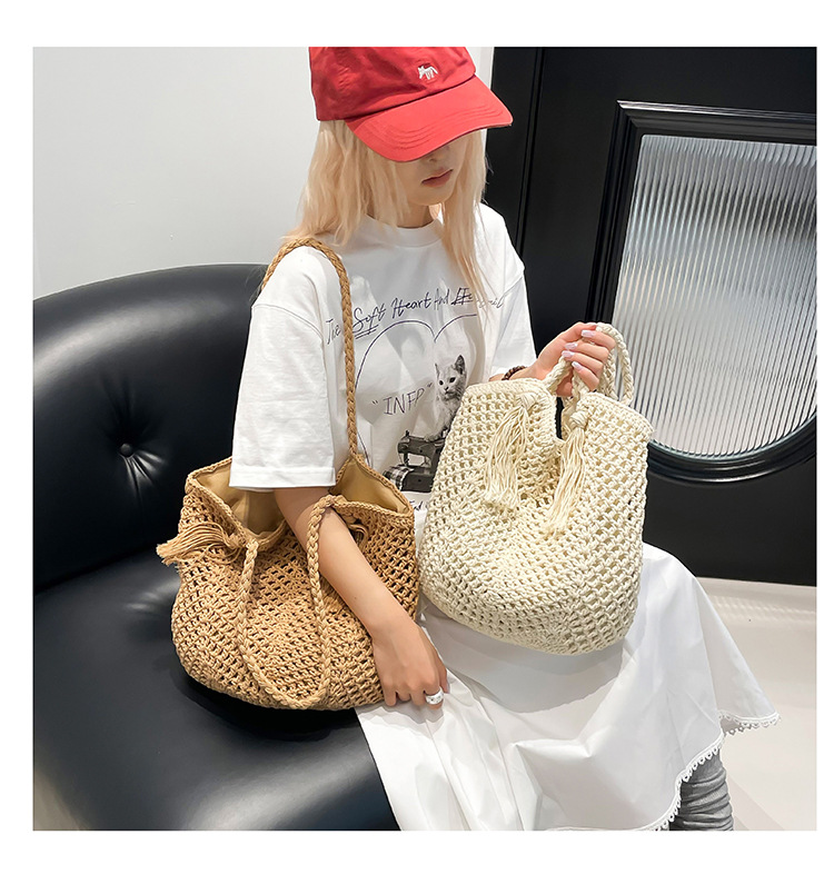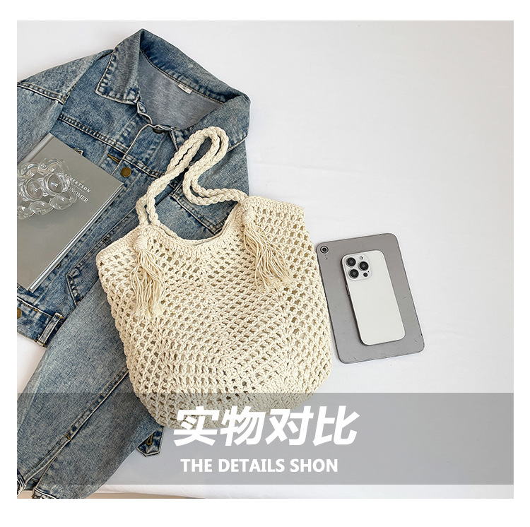 Bolso de vacaciones junto al mar 2025 verano nuevo estilo bolso femenino tejido con flecos bolso de playa de gran capacidad