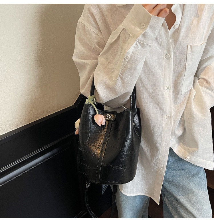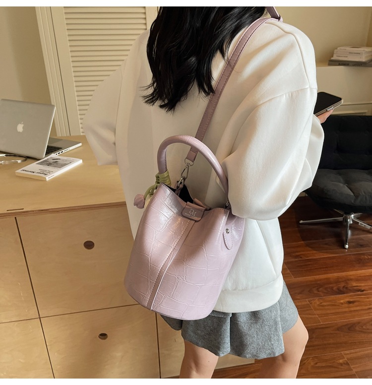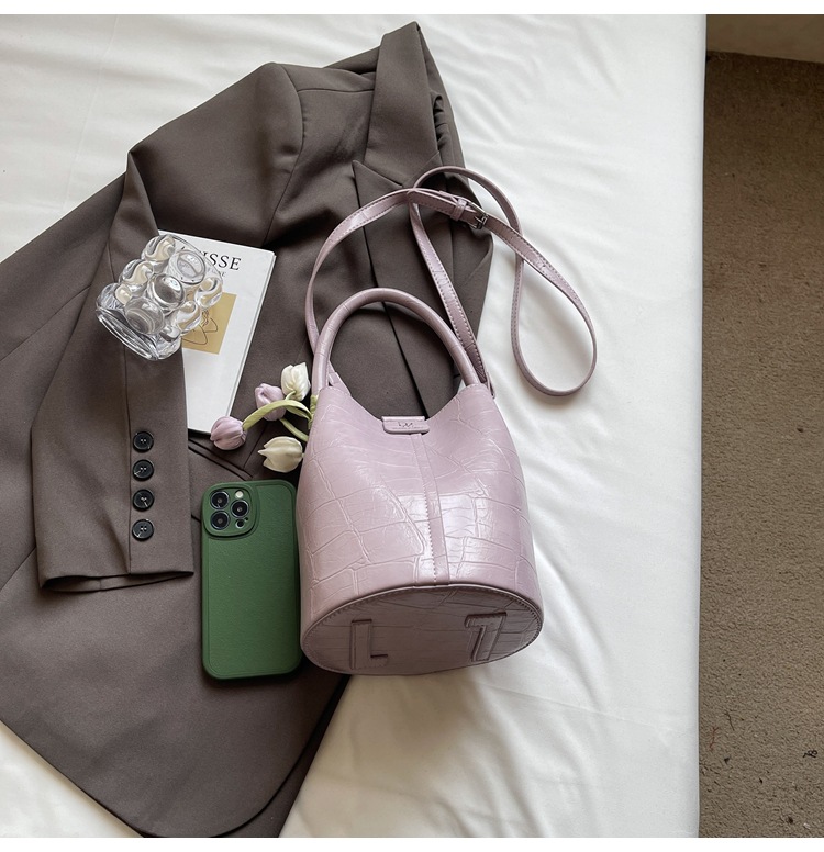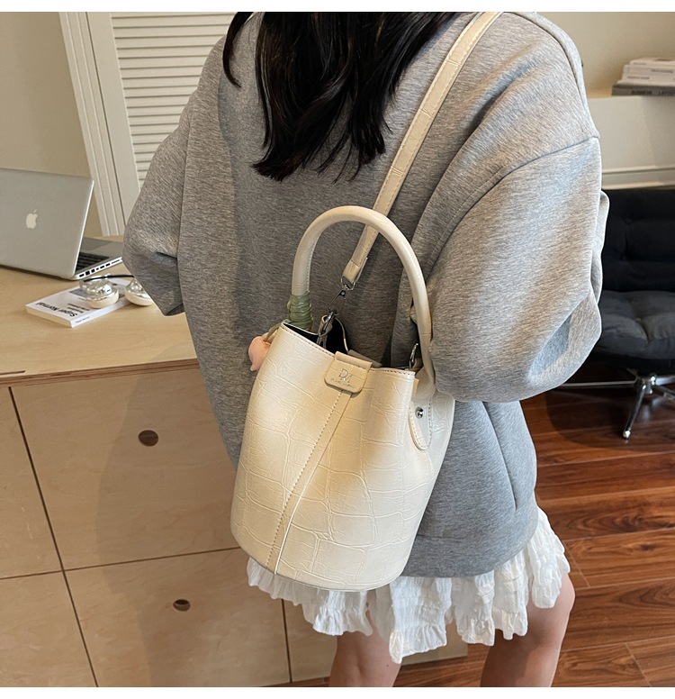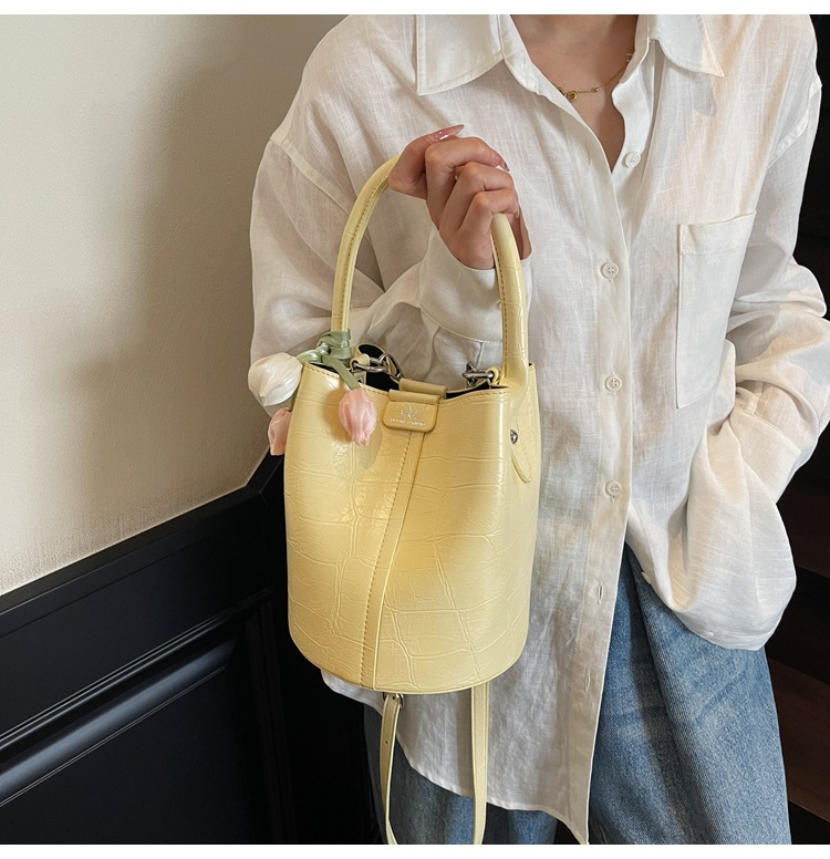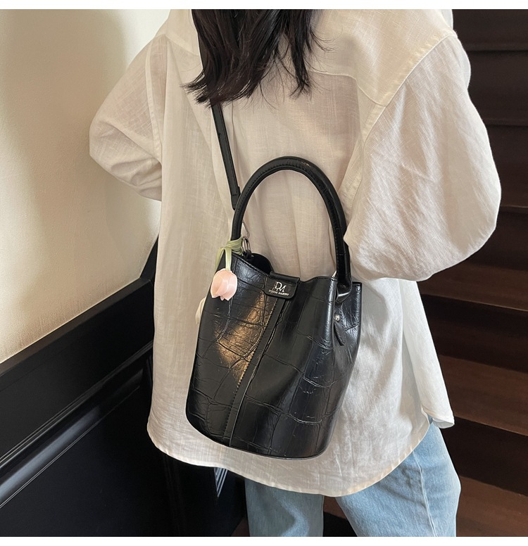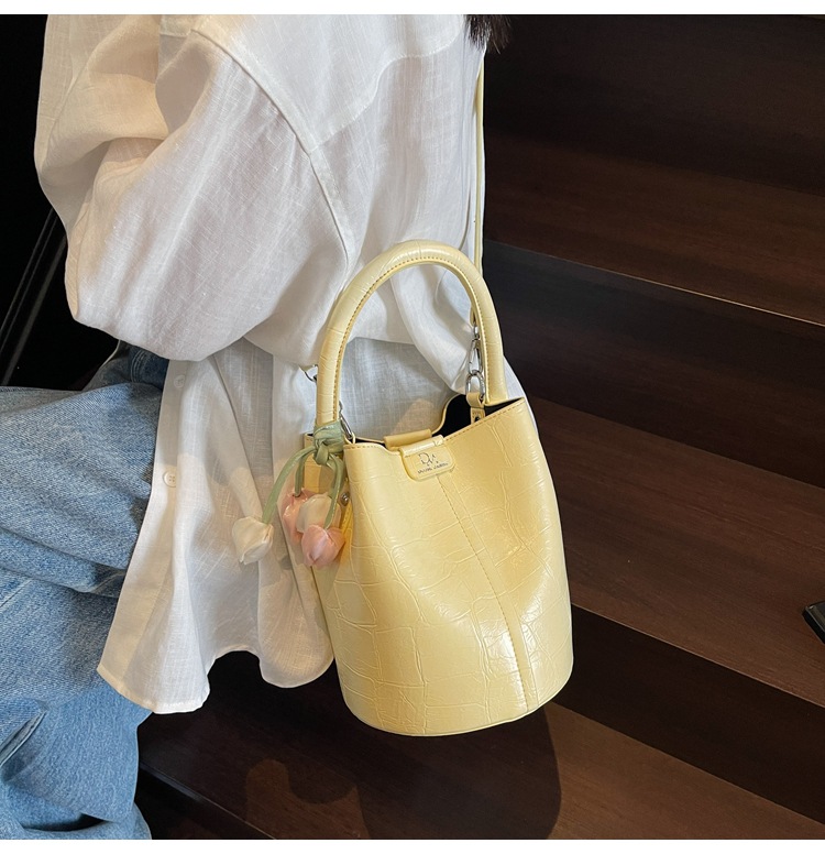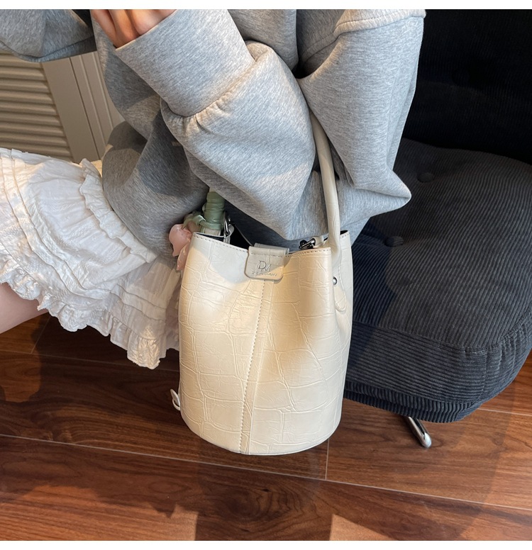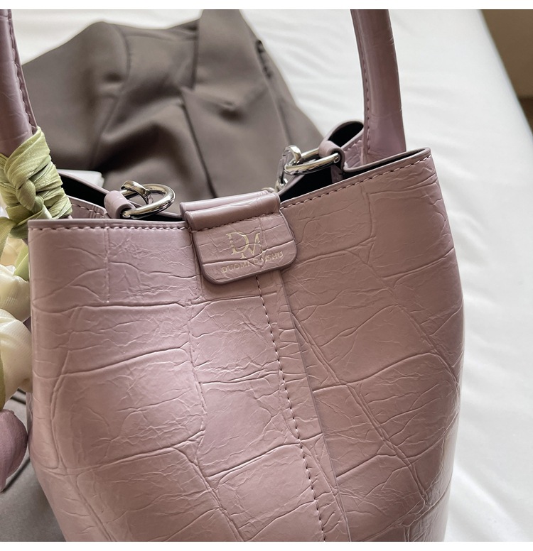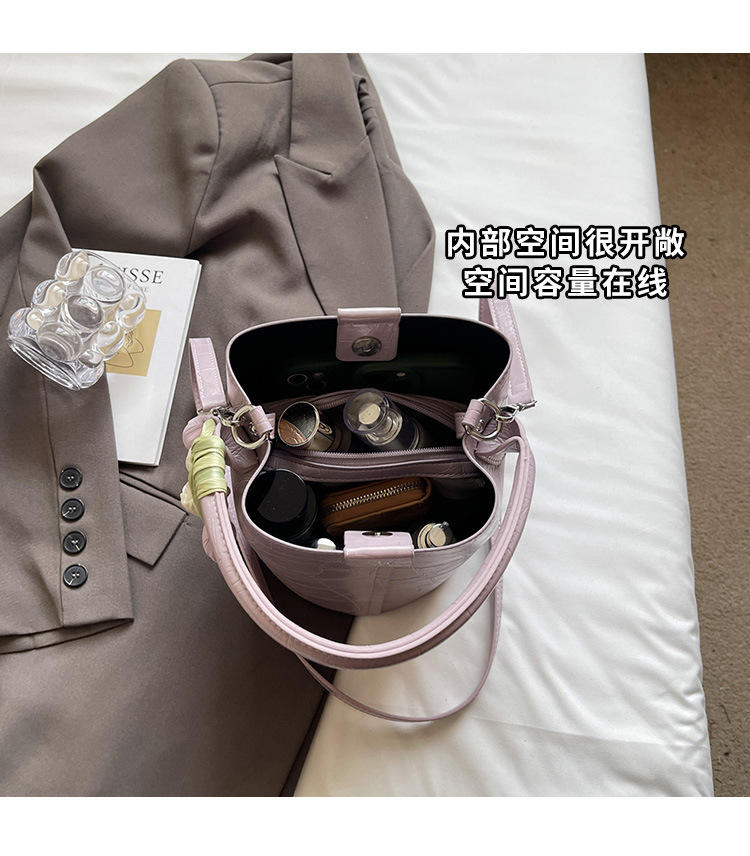 Bolso de cubo de jardín de verano 2025 nuevo bolso de mano estilo extranjero bolso de hombro con patrón de piedra pequeño bolso de mensajero fresco para mujer