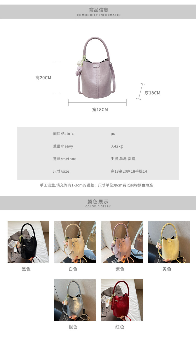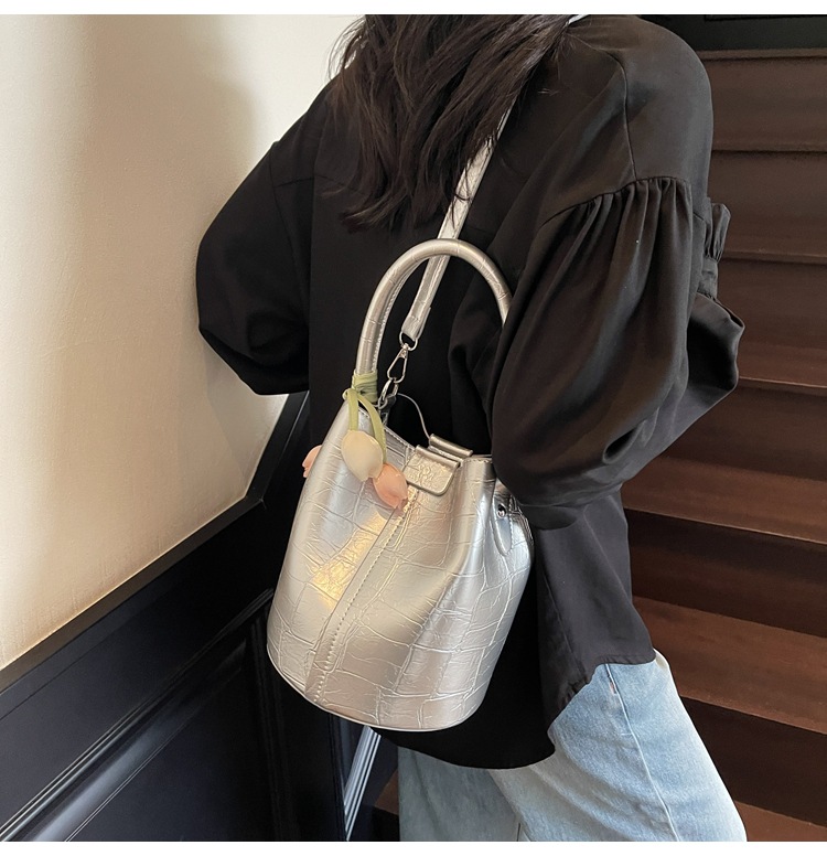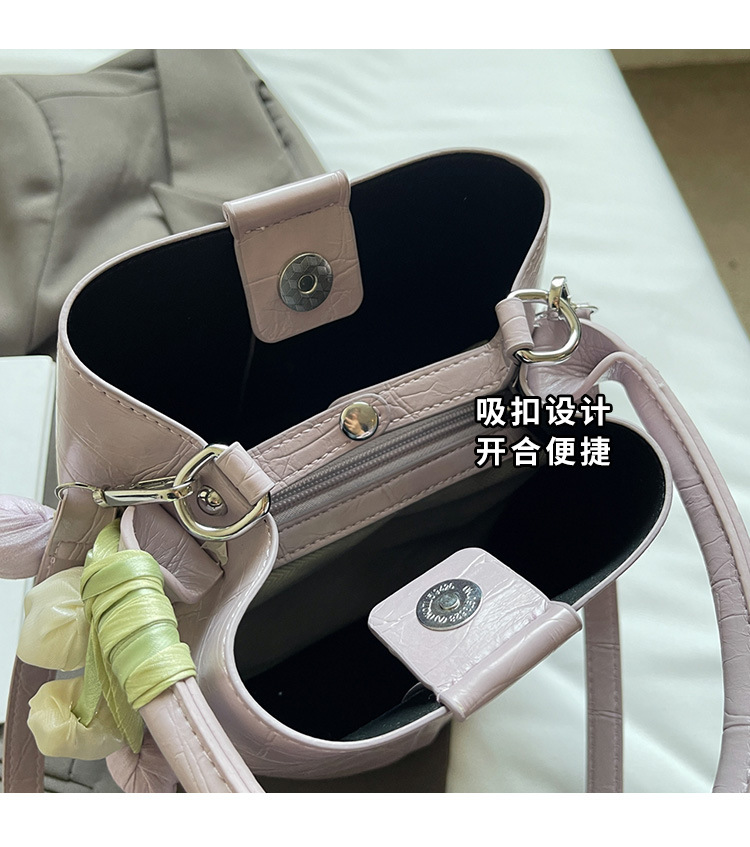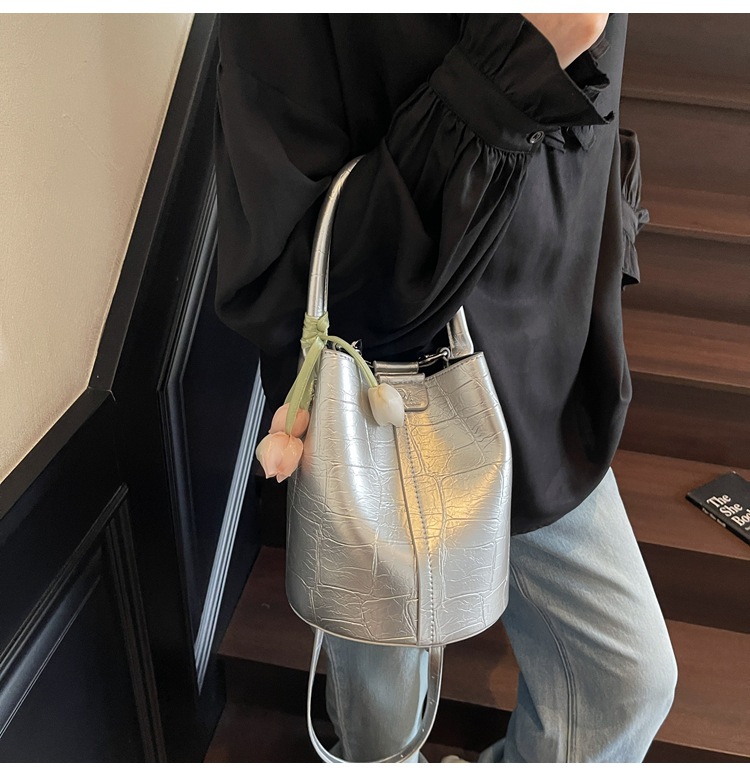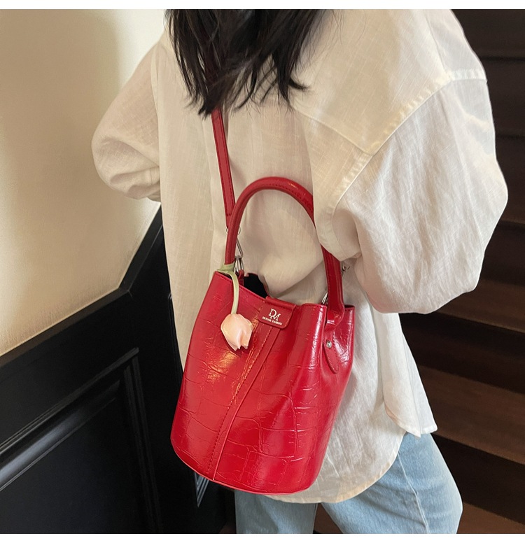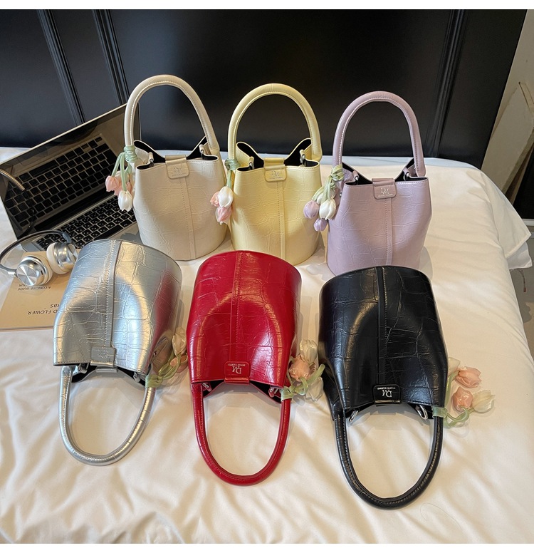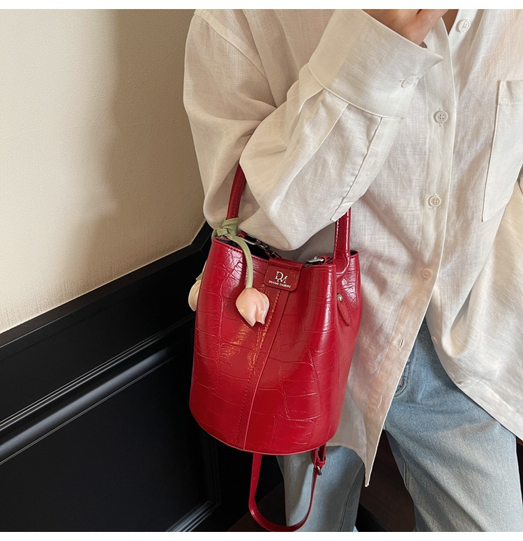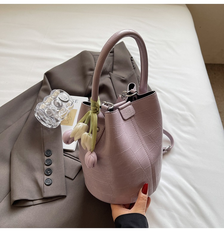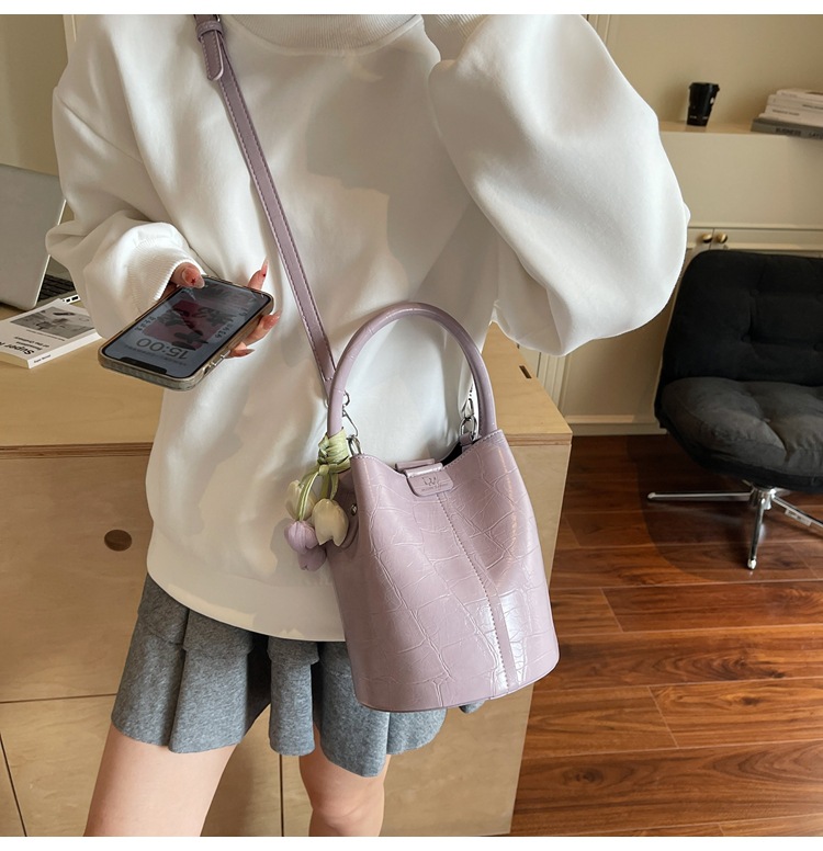 Bolso de cubo de jardín de verano 2025 nuevo bolso de mano estilo extranjero bolso de hombro con patrón de piedra pequeño bolso de mensajero fresco para mujer