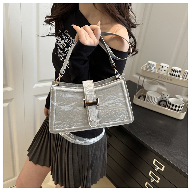 Color de contraste popular de este año, ocio 2025, nuevo estilo, moda francesa simple, estilo occidental, hombro, axila, bandolera, bandolera, mujer