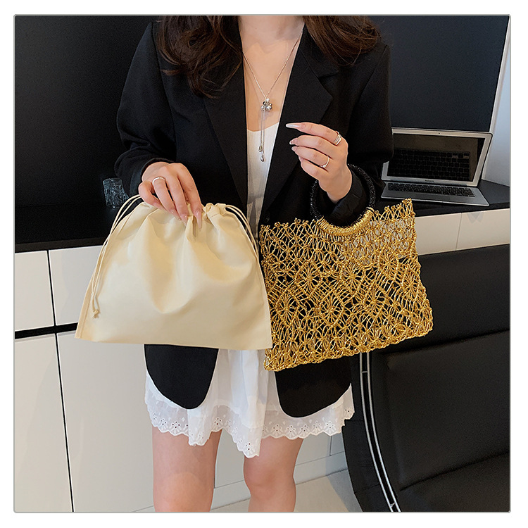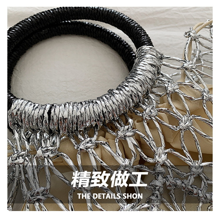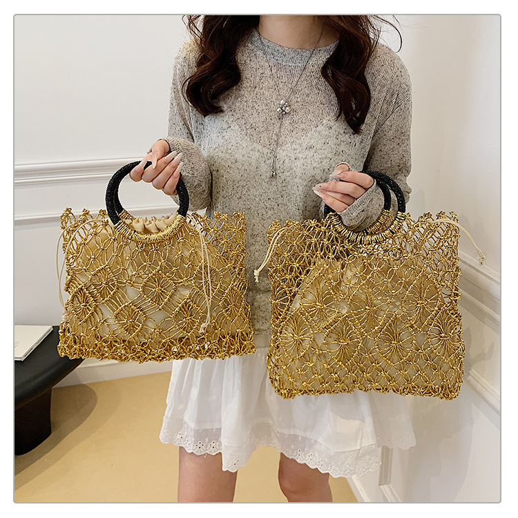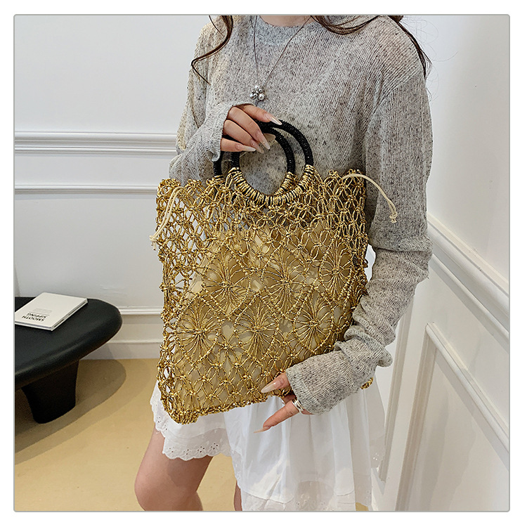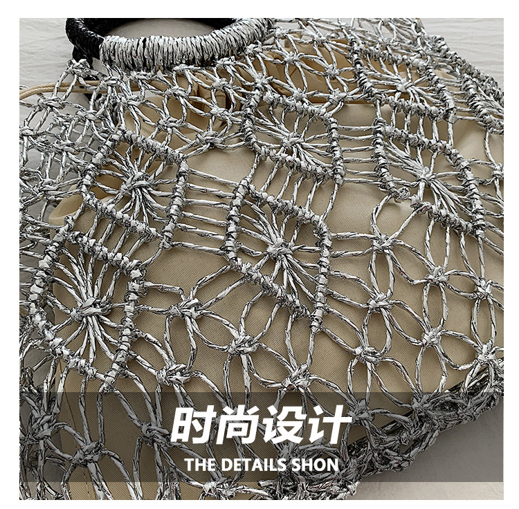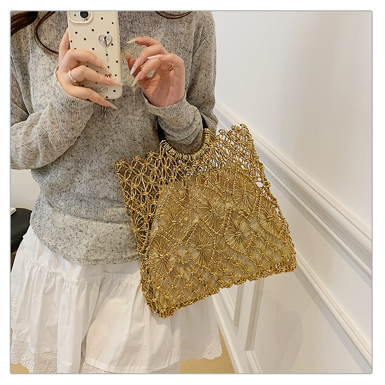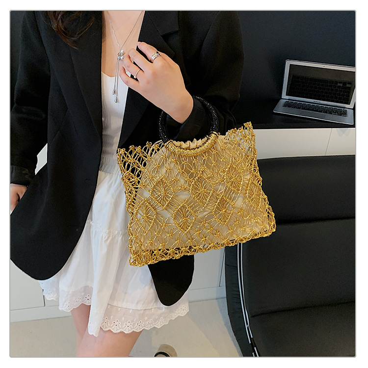Bolso de vacaciones junto al mar 2025 verano nuevo bolso femenino bolso de playa de estilo occidental bolso tejido hueco de gran capacidad
