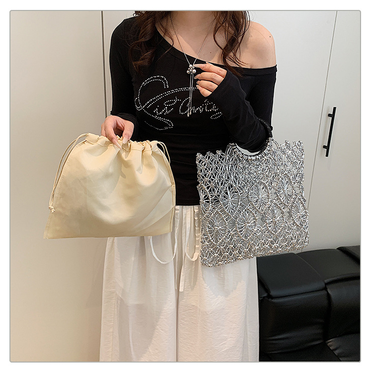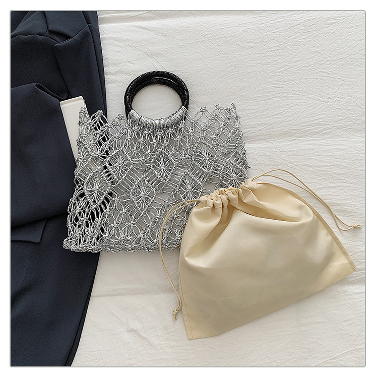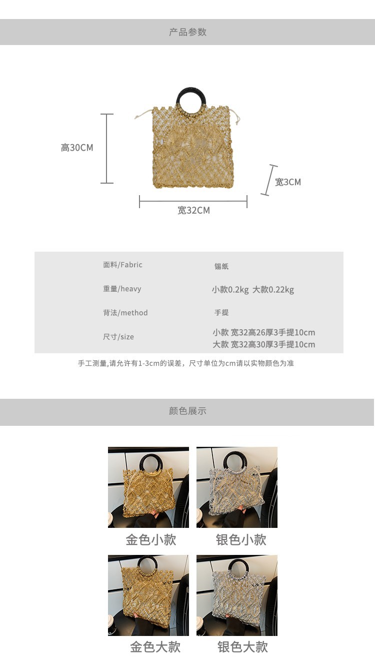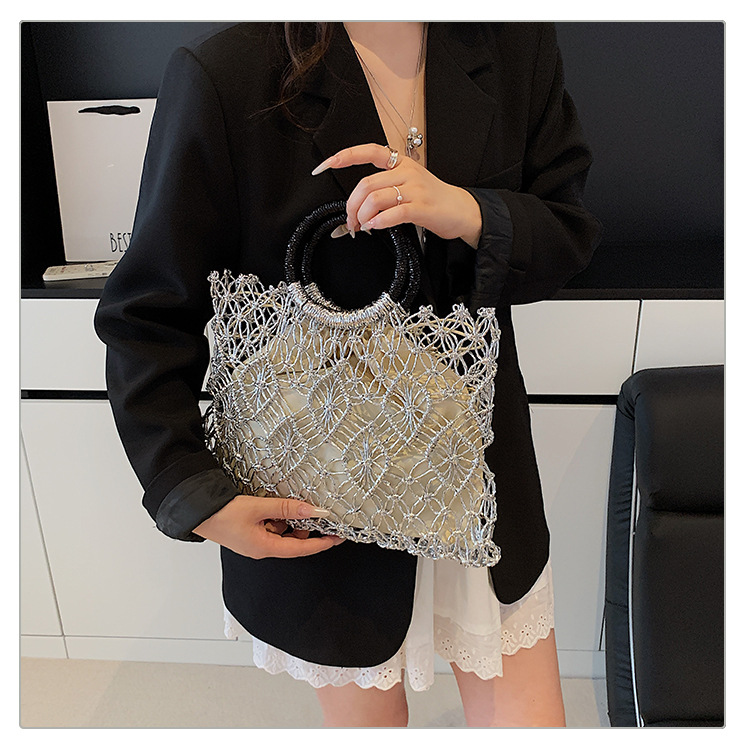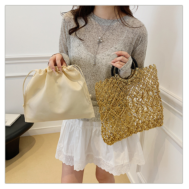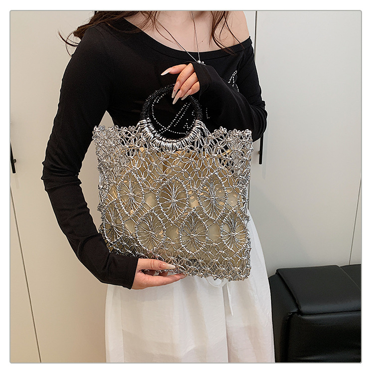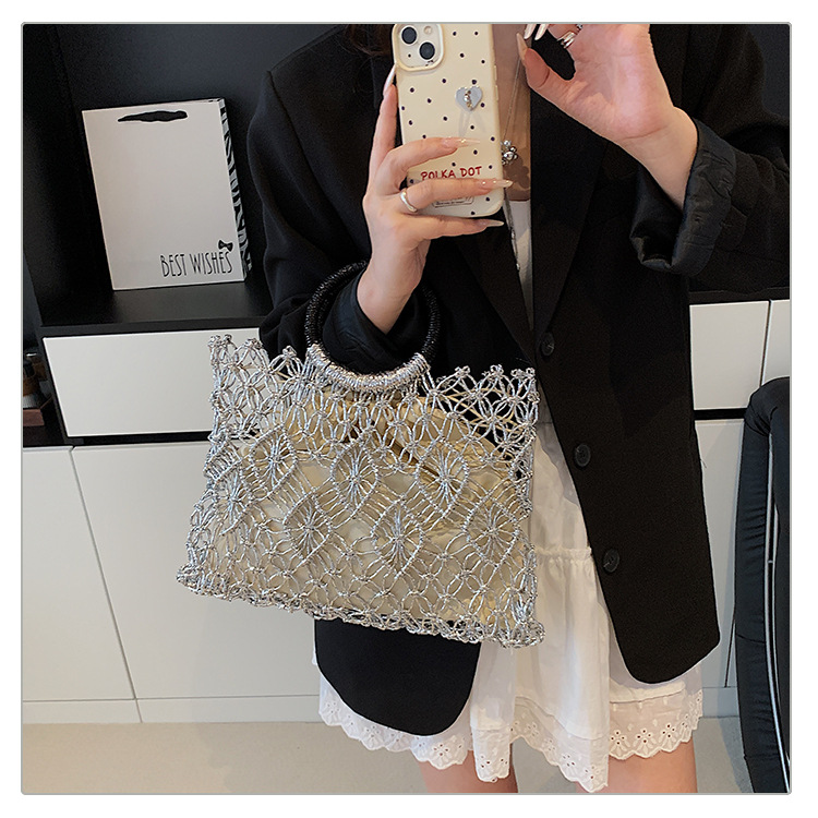 Bolso de vacaciones junto al mar 2025 verano nuevo bolso femenino bolso de playa de estilo occidental bolso tejido hueco de gran capacidad