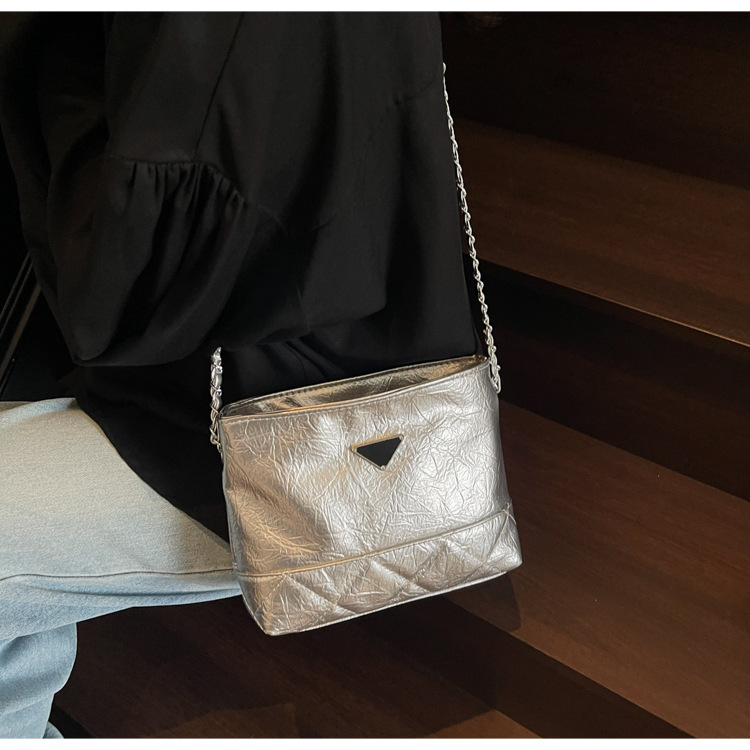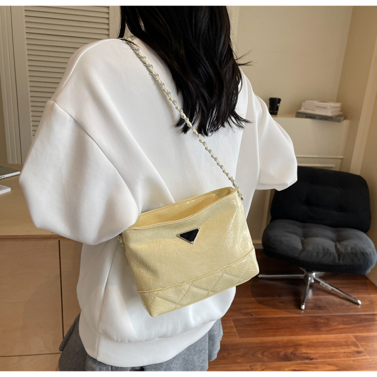 Bolsa de cadena de textura de alta calidad 2025 verano nuevo estilo bolso femenino moda patrón de agarre de mano bolso bandolera bordado con rombos