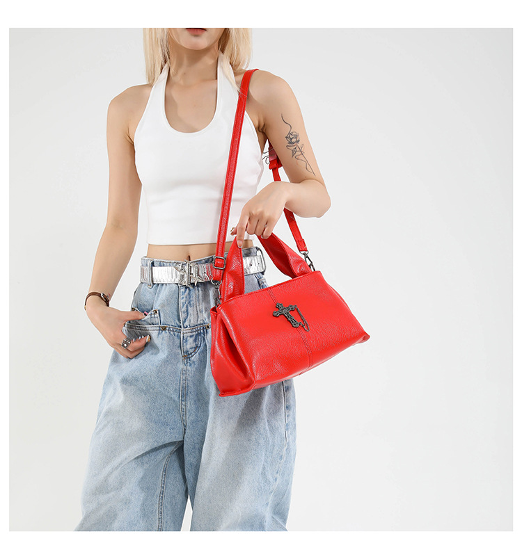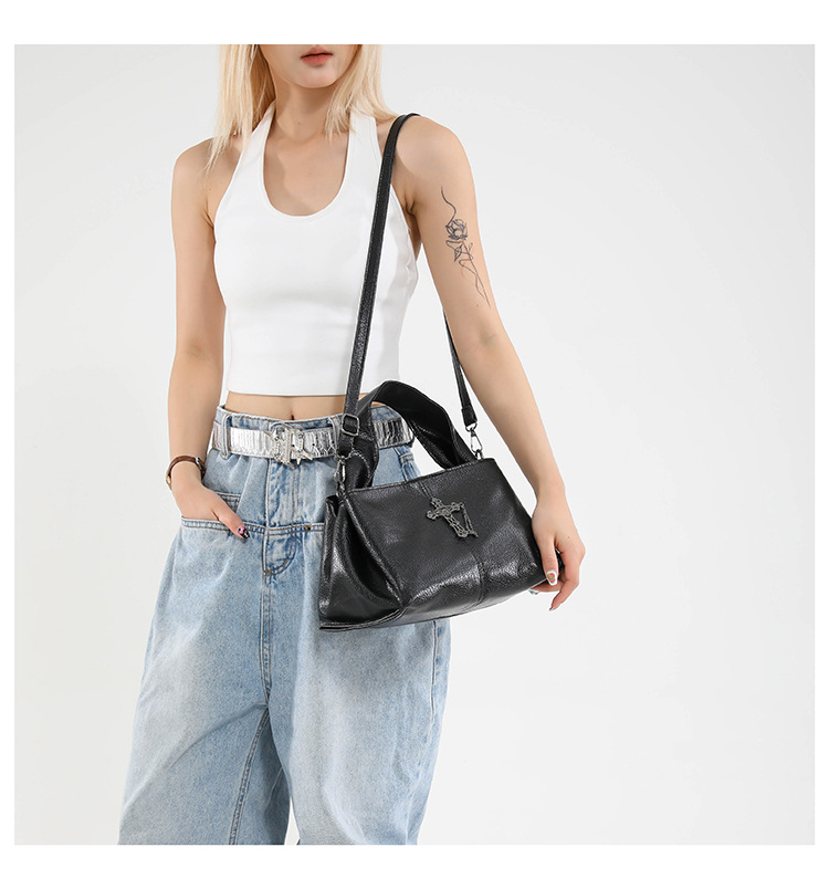 Bolso de textura transfronteriza 2025 verano nuevo bolso cruz bolso de hombro bolso de mensajero punk fresco mujer