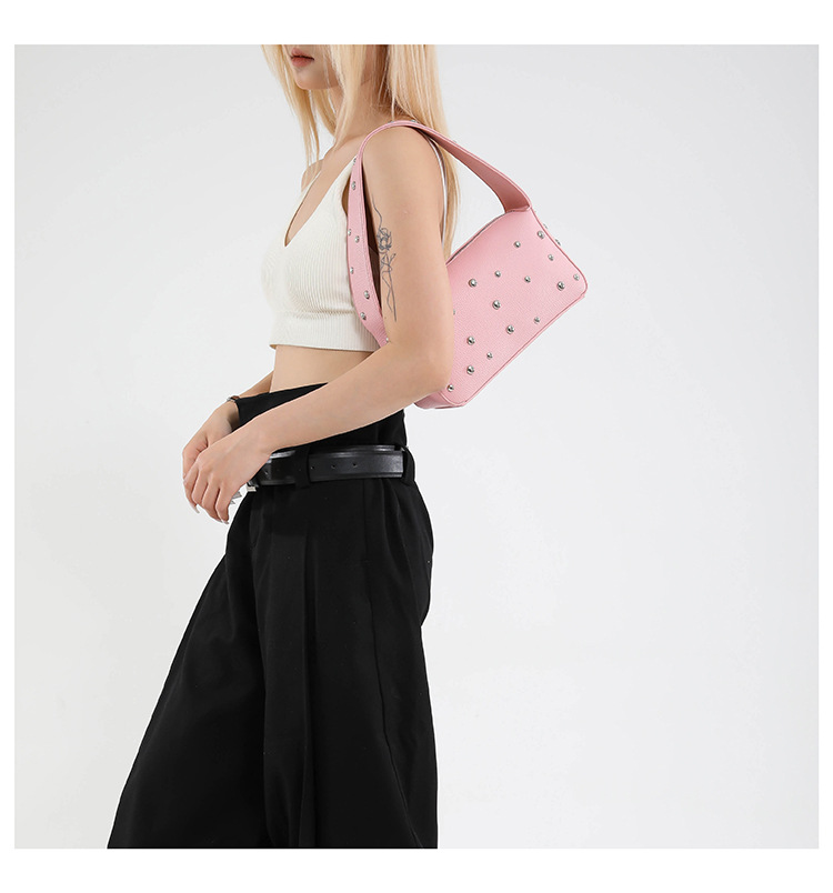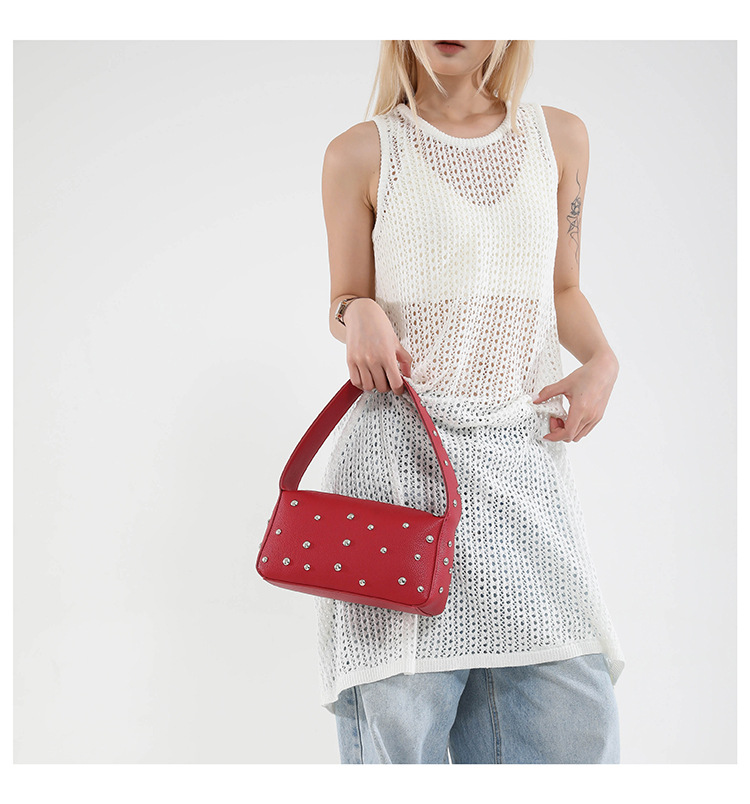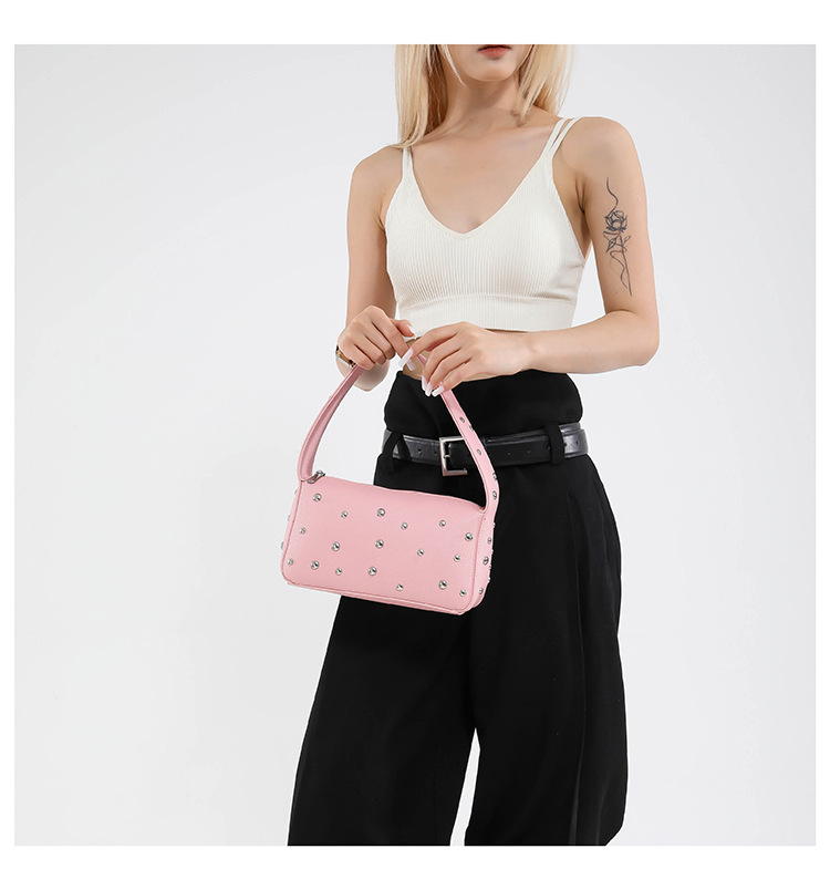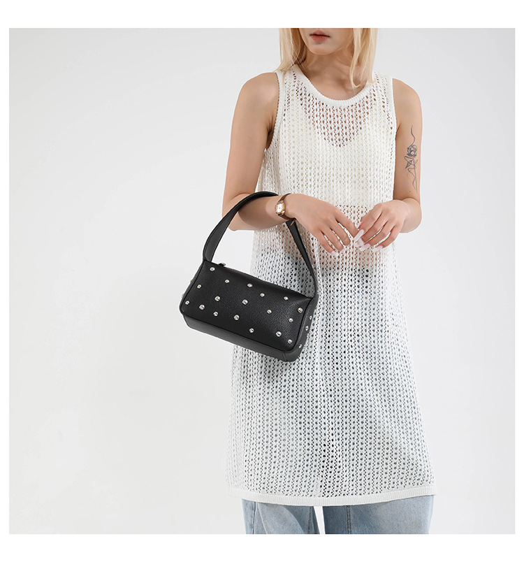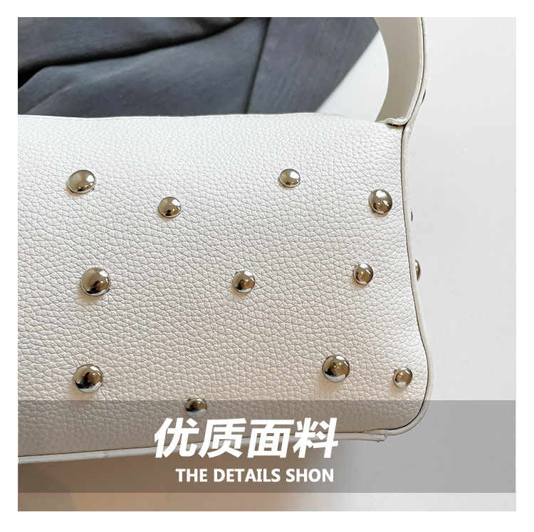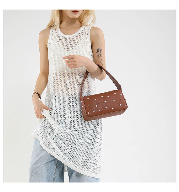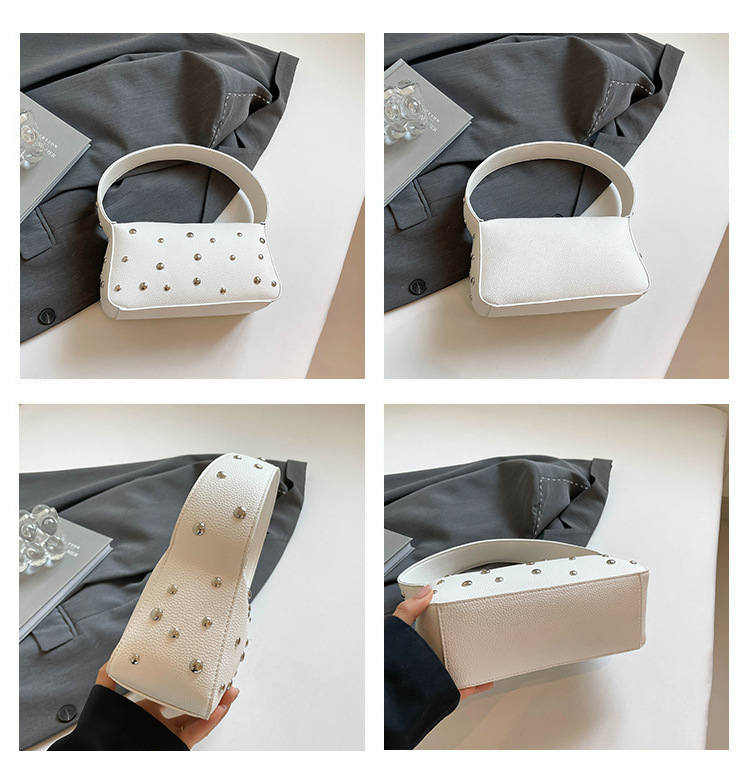 Bolso de axila con textura transfronteriza 2025 verano nuevo bolso femenino bolso de remache personalizado bolso de hombro con patrón de lichi de moda