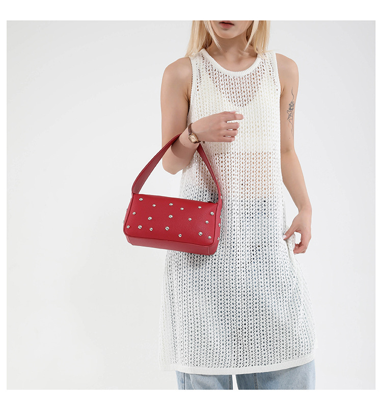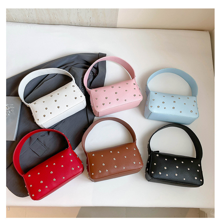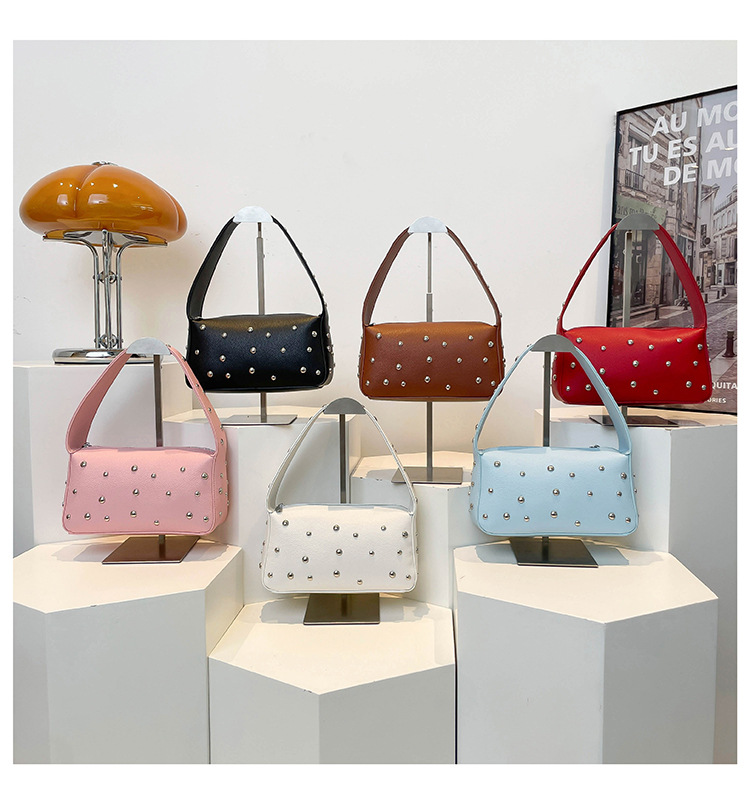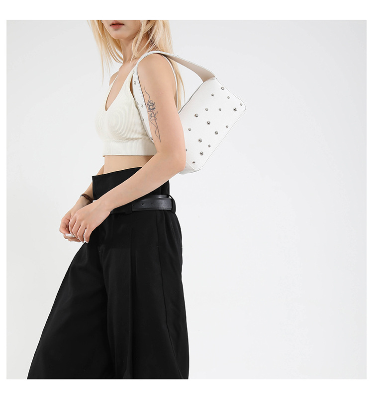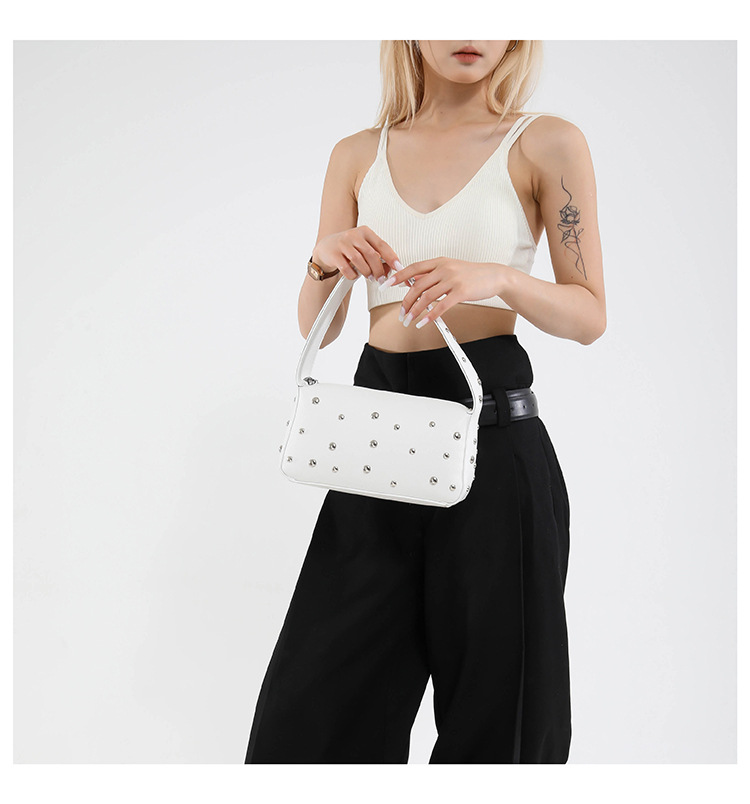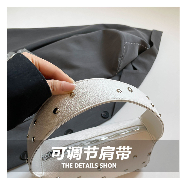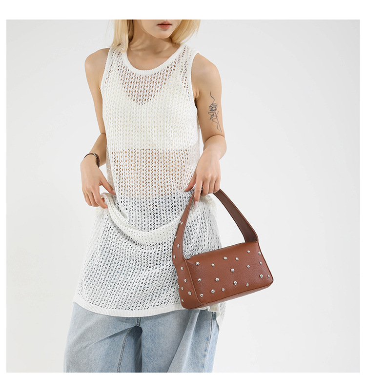 Bolso de axila con textura transfronteriza 2025 verano nuevo bolso femenino bolso de remache personalizado bolso de hombro con patrón de lichi de moda
