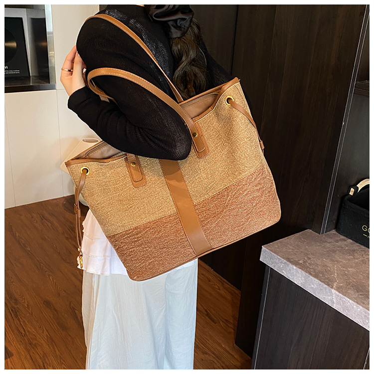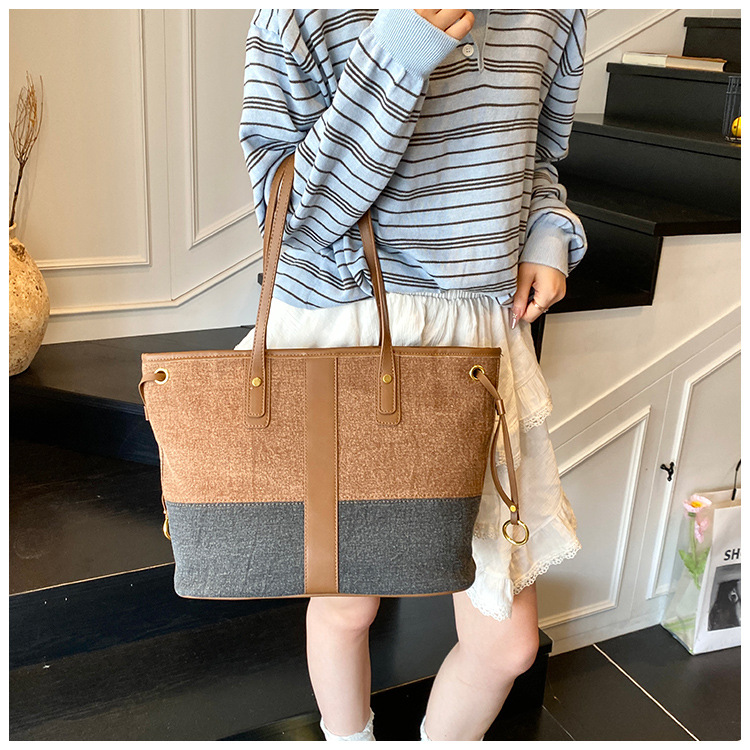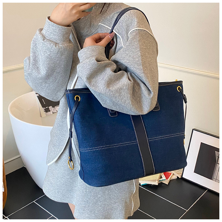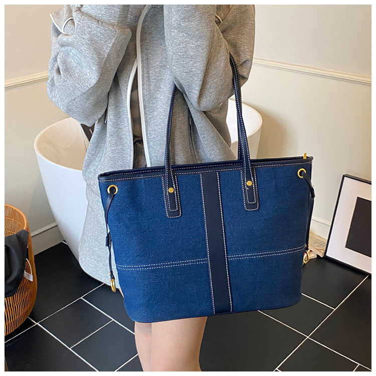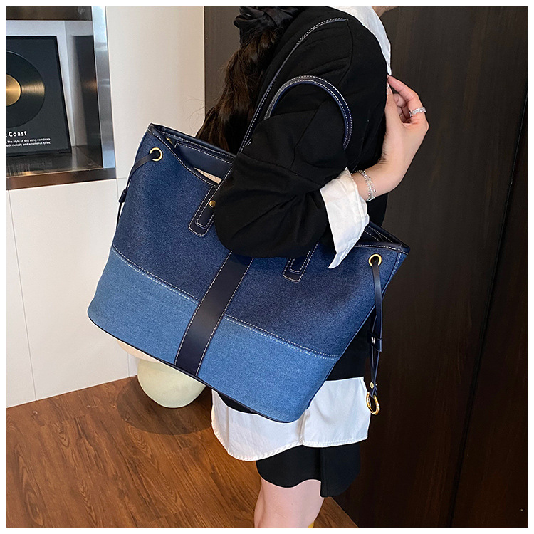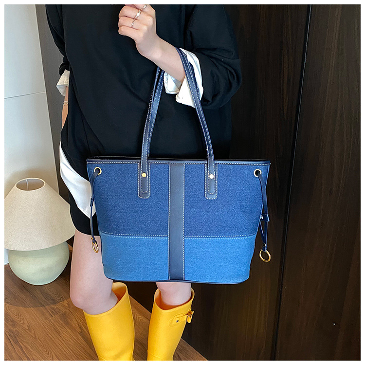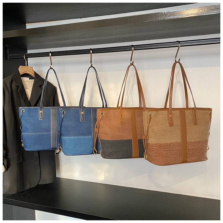 Bolso tote retro estilo Hong Kong 2025 verano nuevo estilo bolso femenino moda color contraste bolso de hombro de mezclilla de gran capacidad