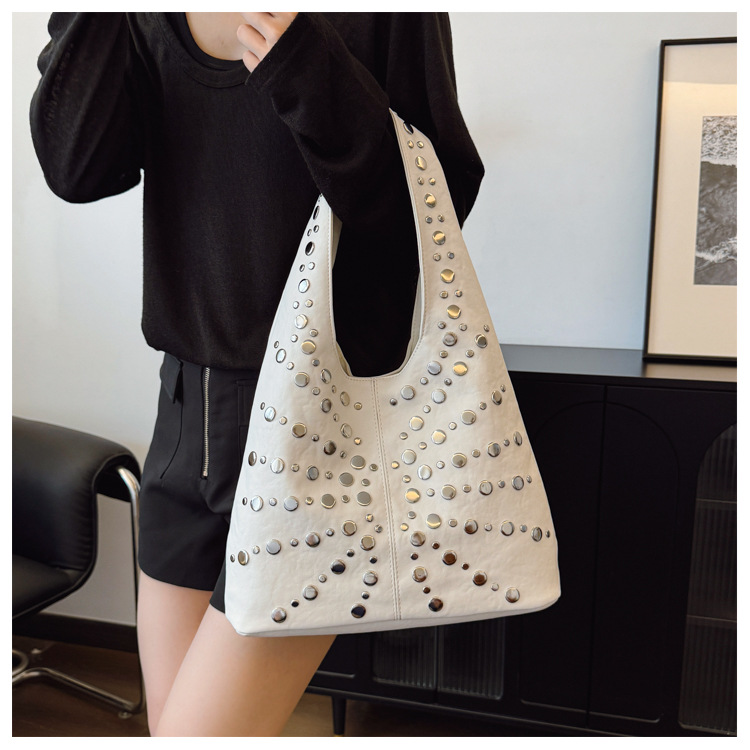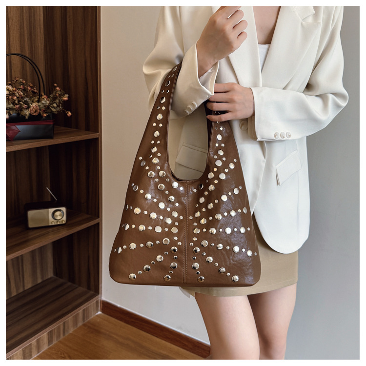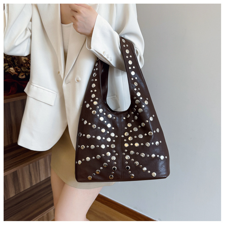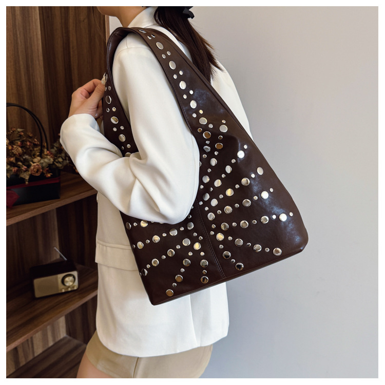 Bolso de textura transfronteriza 2025 verano nuevo estilo bolso retro remache bandolera bolso de mensajero de gran capacidad mujer