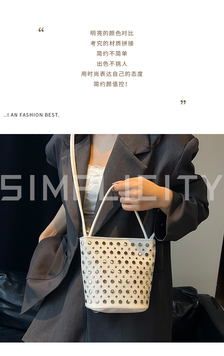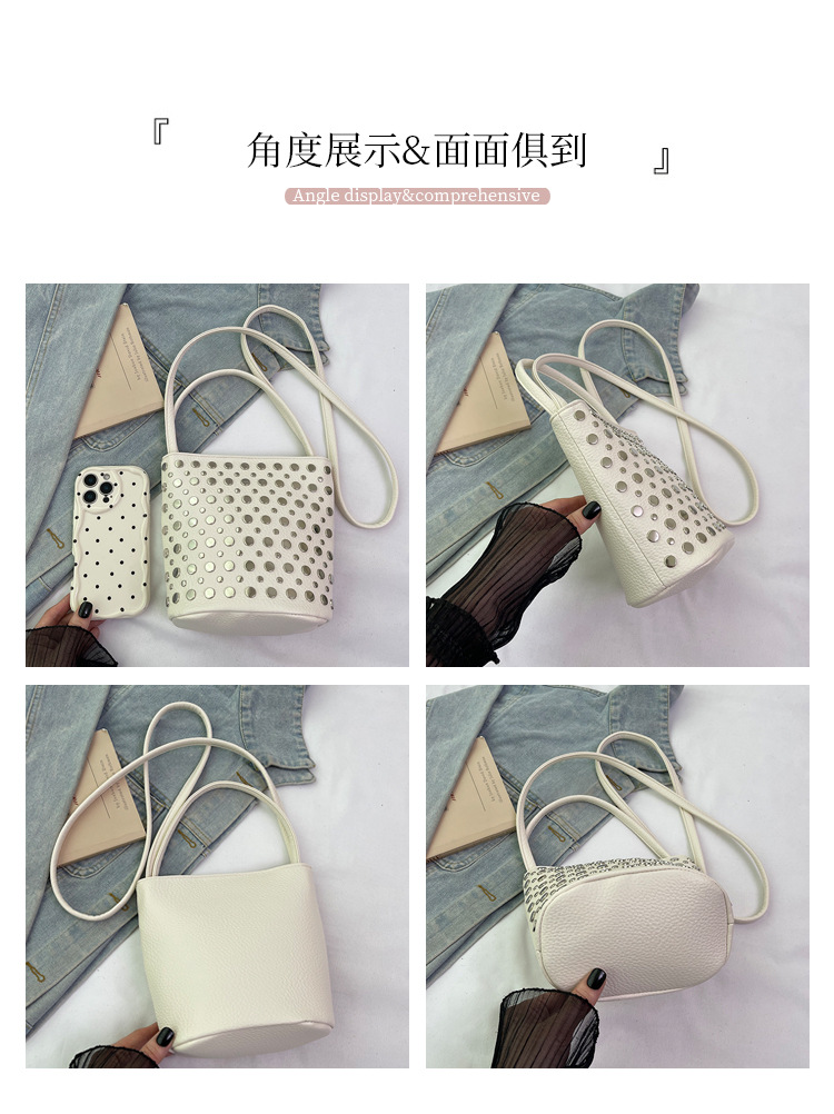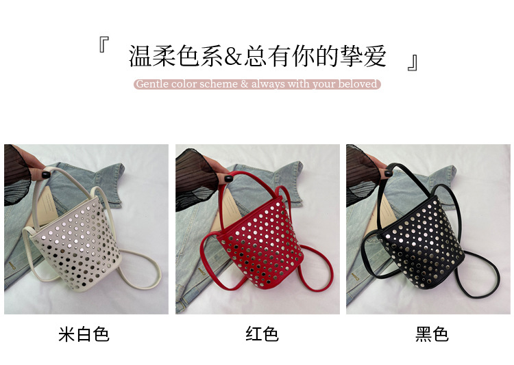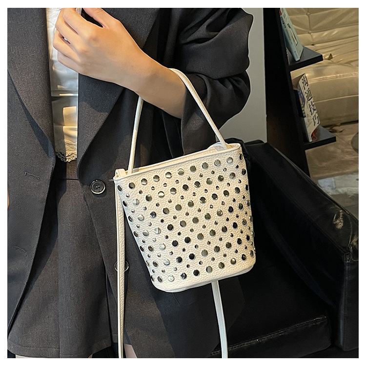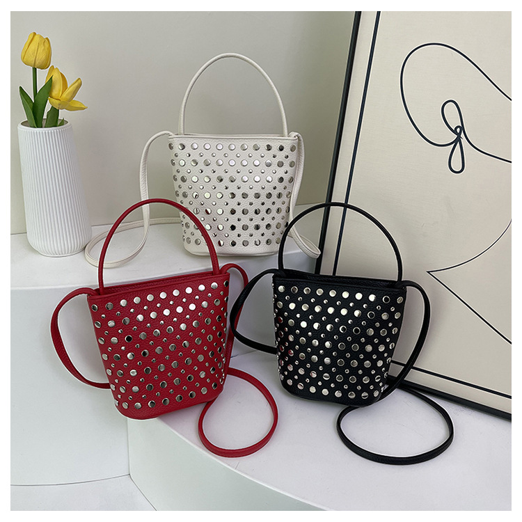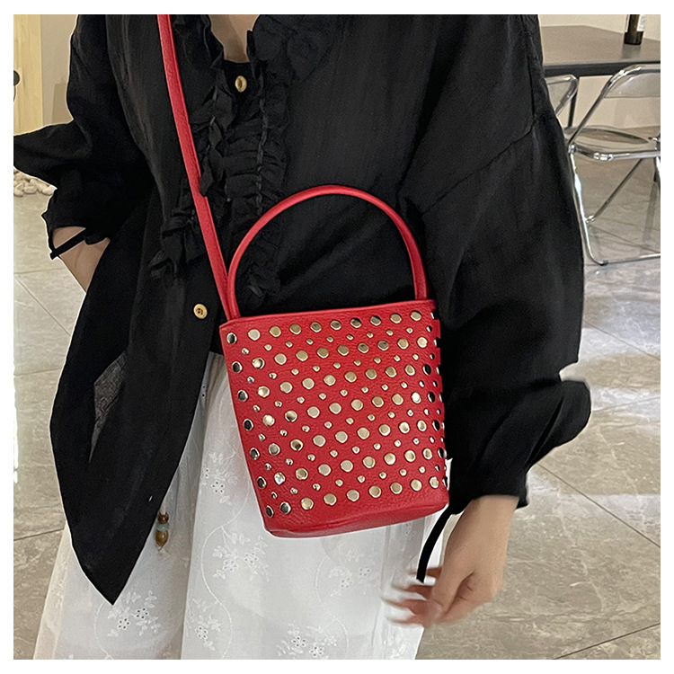 Bolso de cubo de textura transfronteriza 2025 nuevo bolso de mano remache personalizado bolso de hombro retro patrón de lichi bolso de mensajero mujer