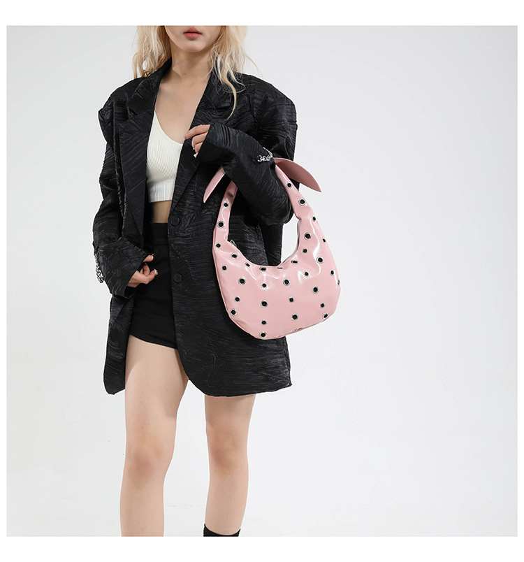 Bolso de axila con textura transfronteriza 2025 verano nuevo bolso femenino cielo estrellado agujero agujero bolso de hombro con remache hueco