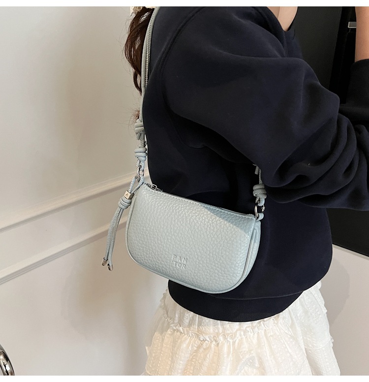 Bolsos pequeños populares de este año 2025 primavera y verano nuevos bolsos de mujer bolso de hombro con patrón de lichi fresco bolso de mensajero de letras casuales
