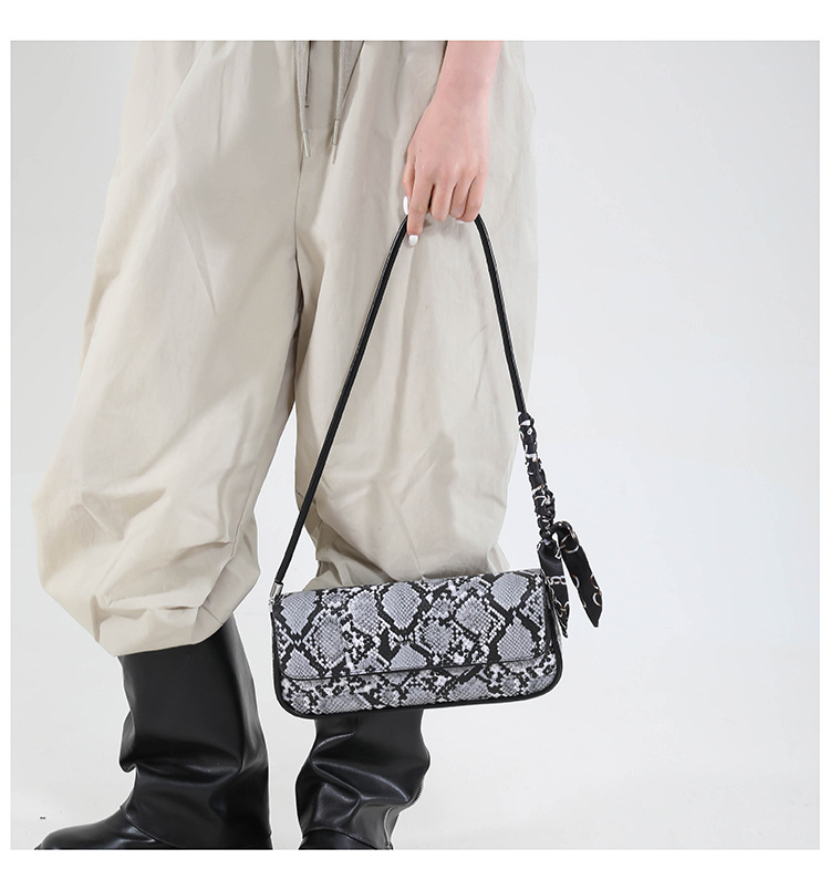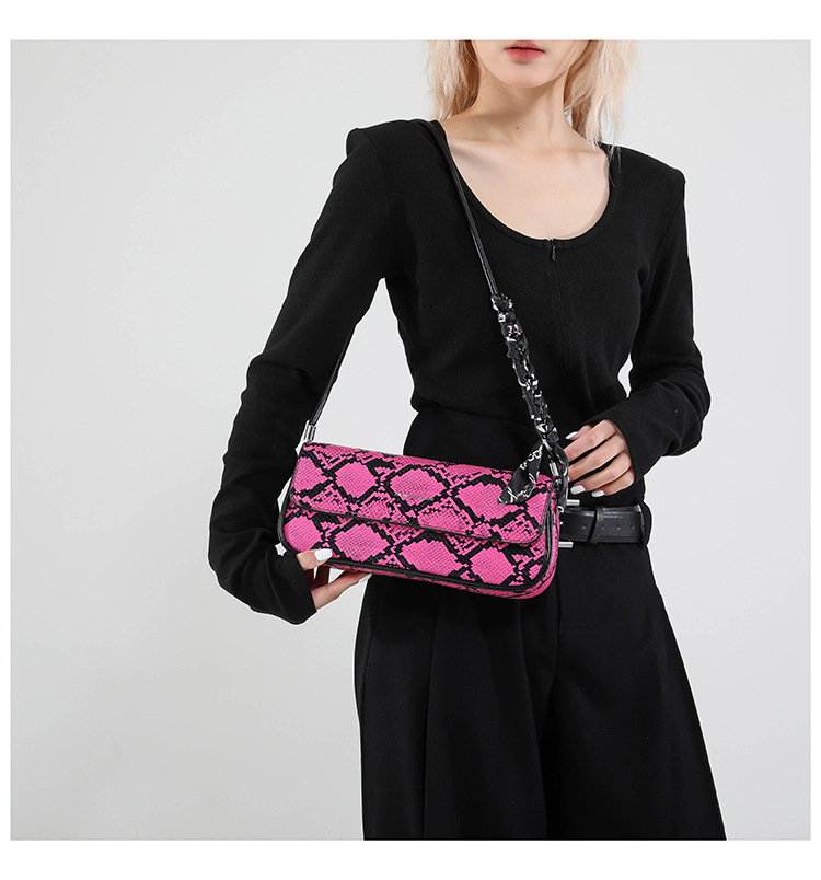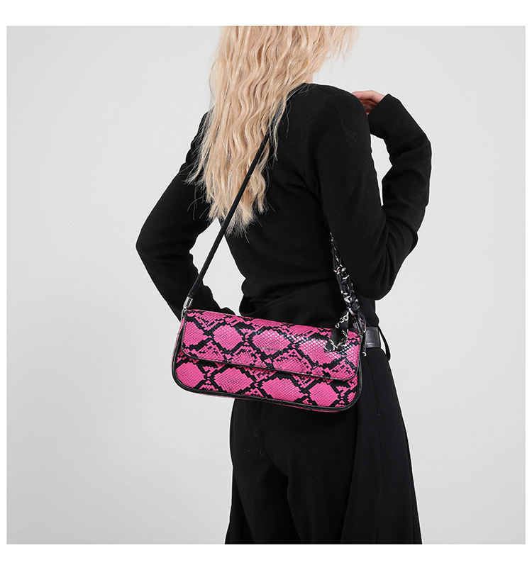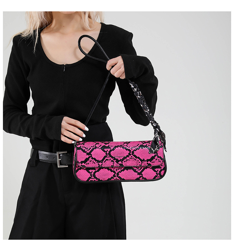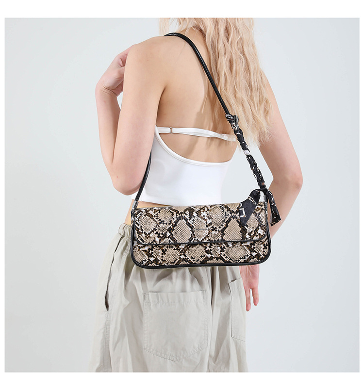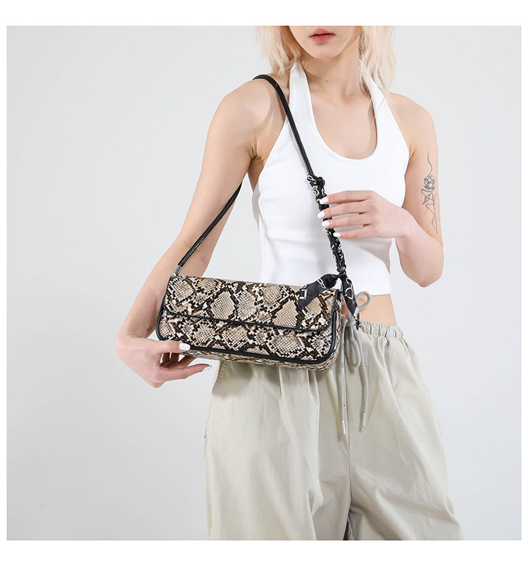 Bolso de axila de textura transfronteriza 2025 primavera y verano nuevo bolso femenino bolso de piel de serpiente personalizado bolso de hombro de color de contraste retro