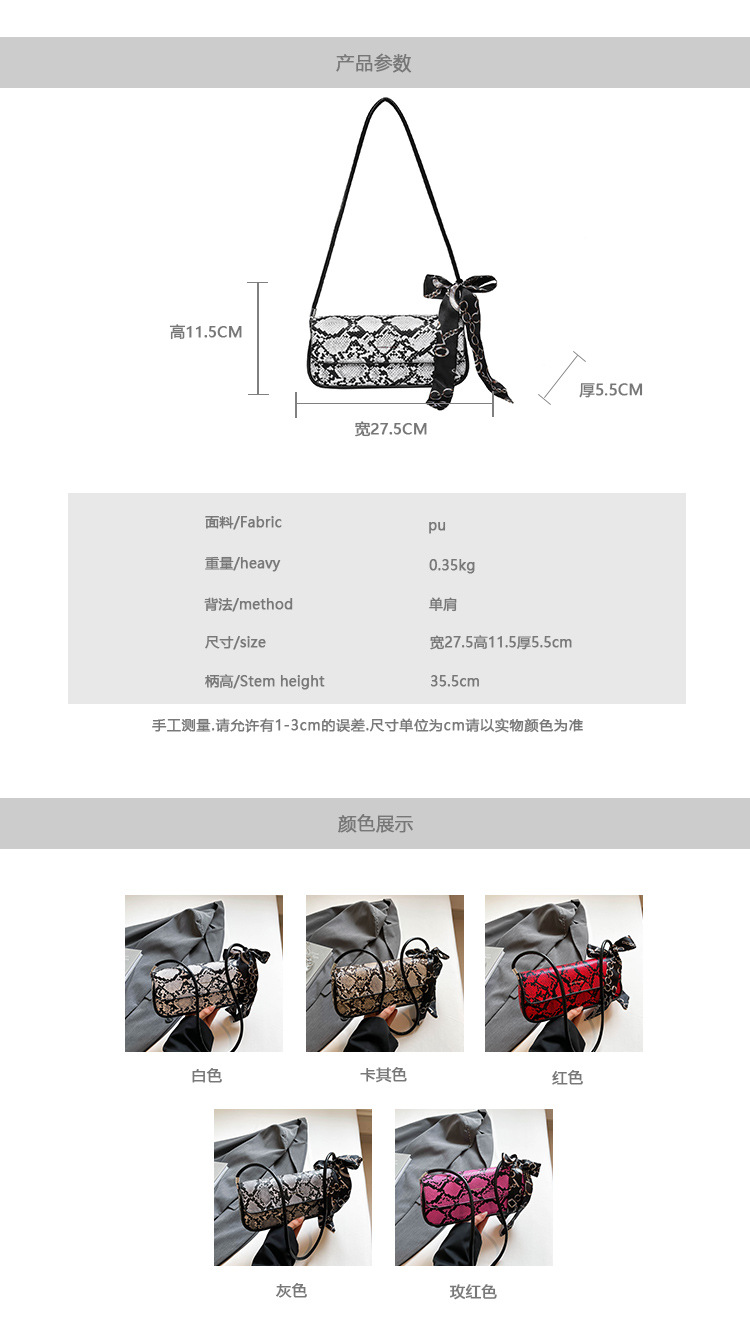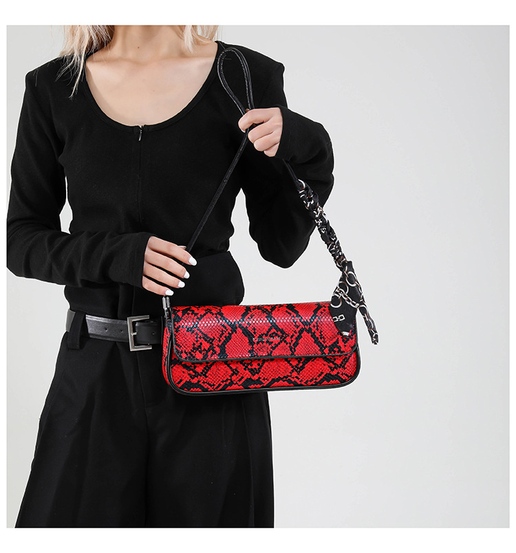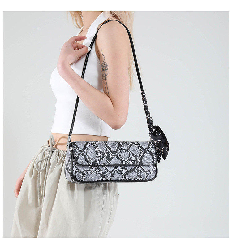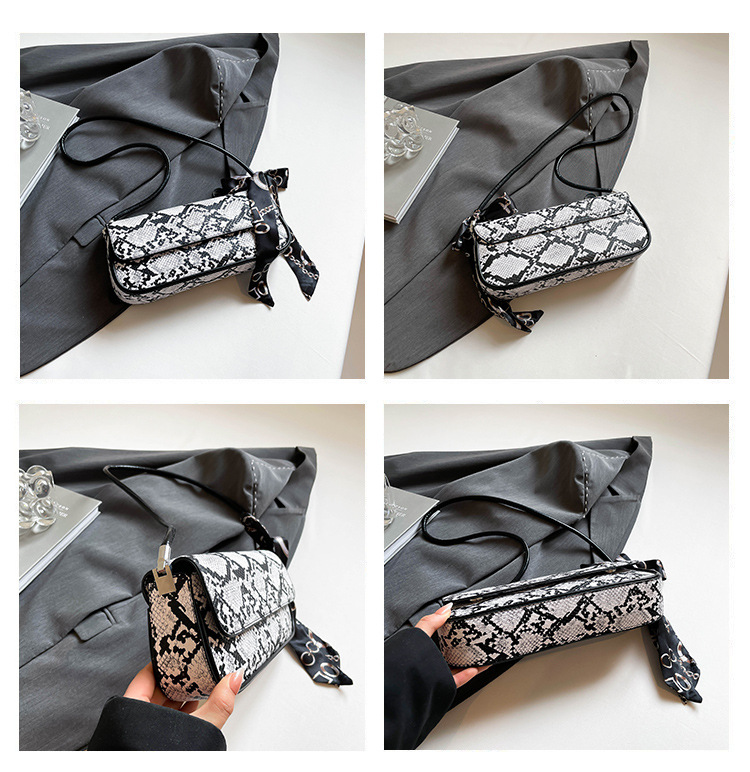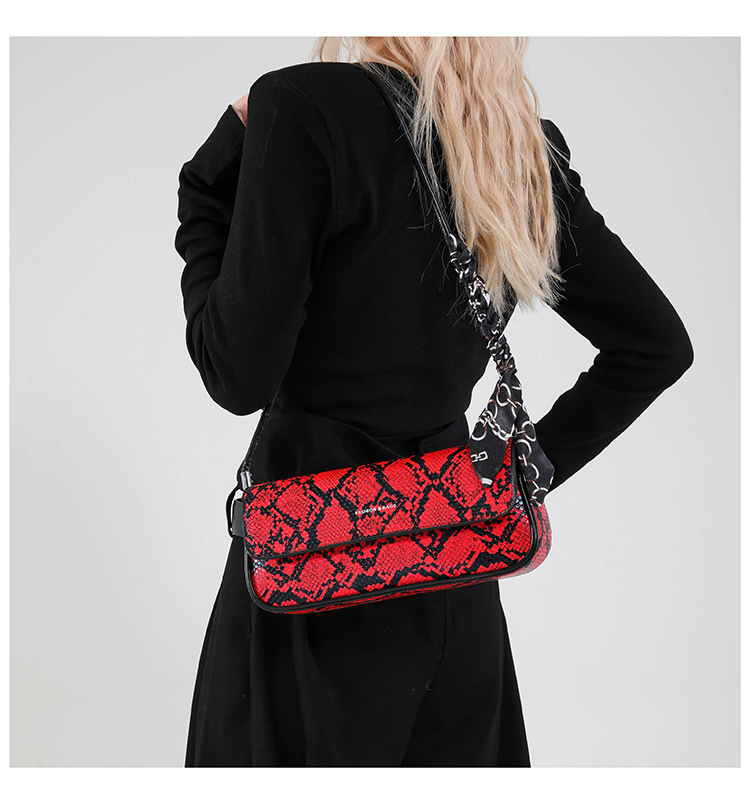 Bolso de axila de textura transfronteriza 2025 primavera y verano nuevo bolso femenino bolso de piel de serpiente personalizado bolso de hombro de color de contraste retro