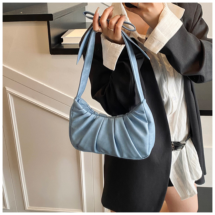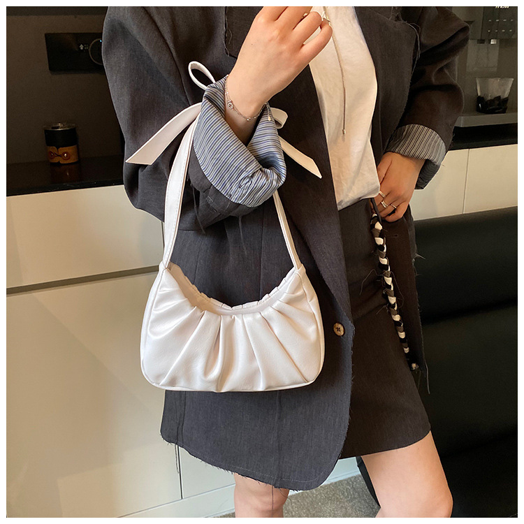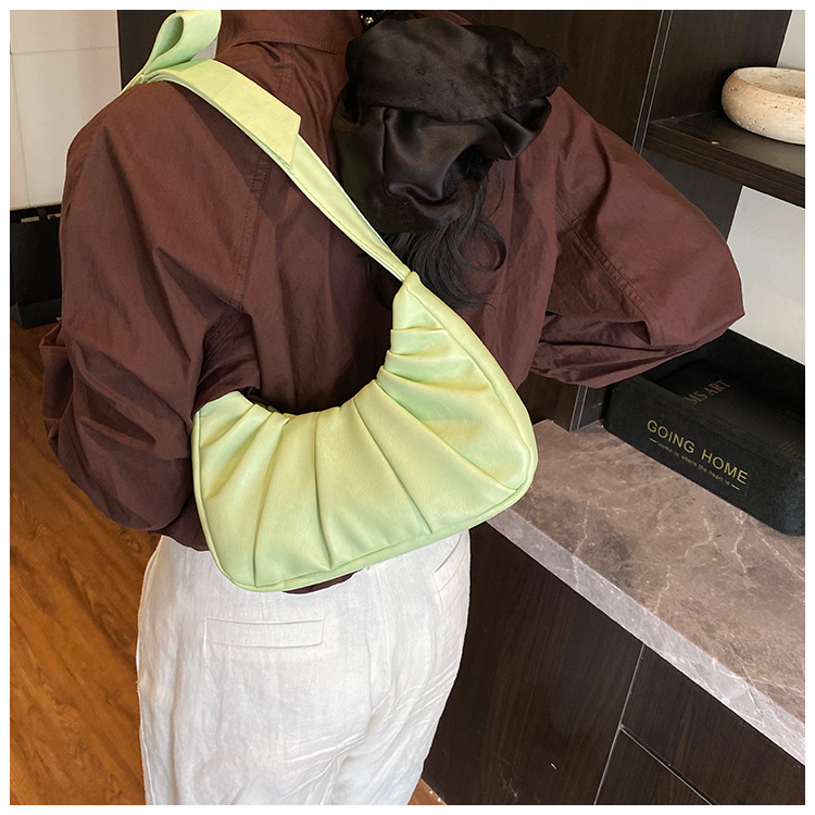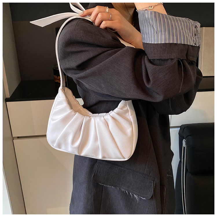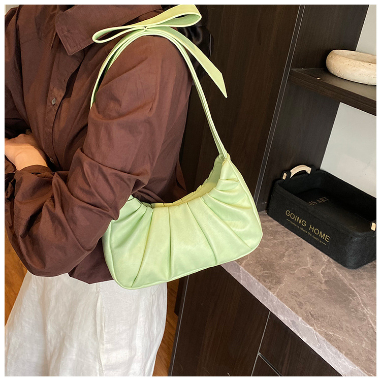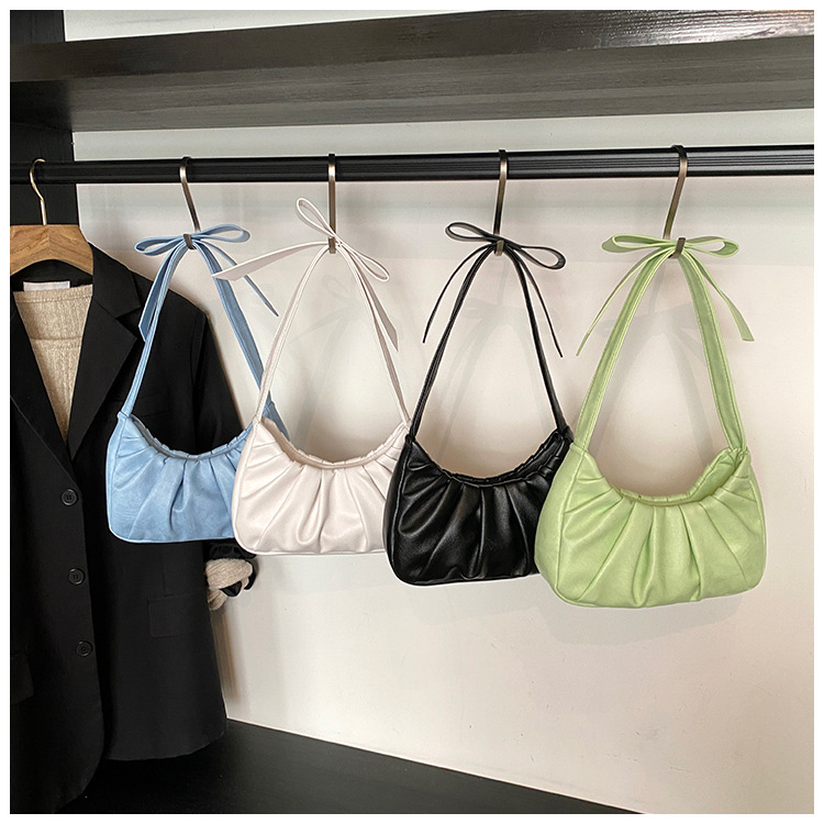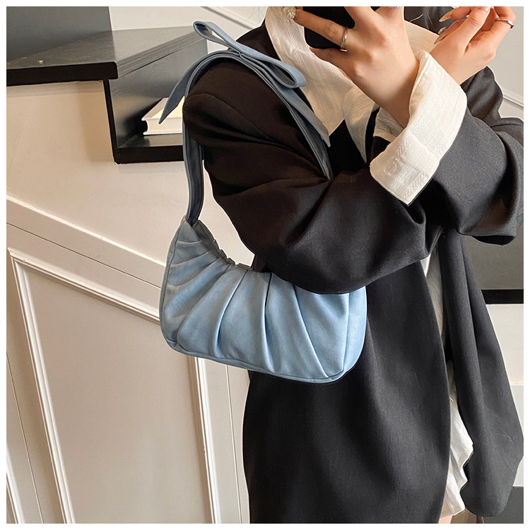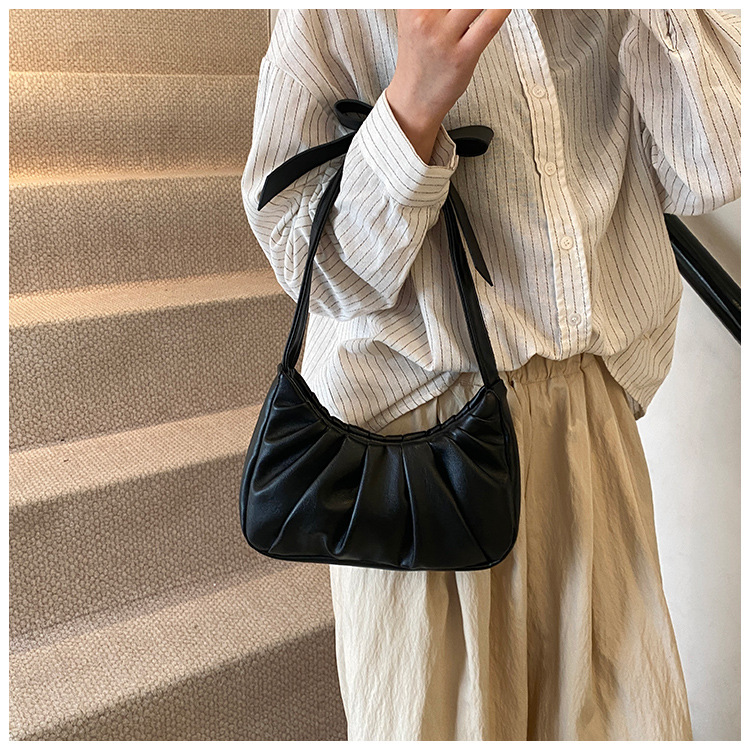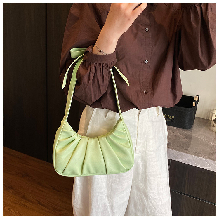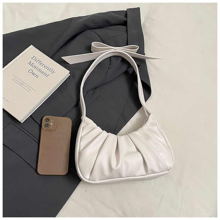 Bolso de axila popular de este año 2025 primavera y verano nuevo bolso femenino lindo bolso de lazo bolso de hombro plisado de moda