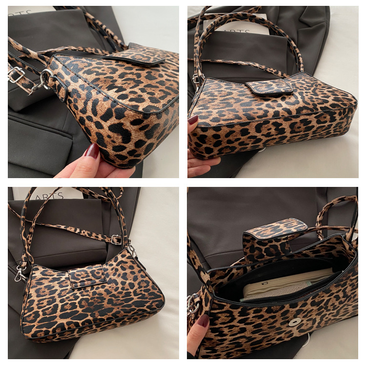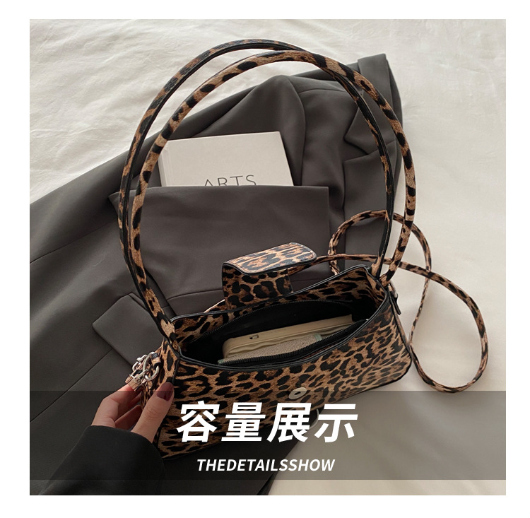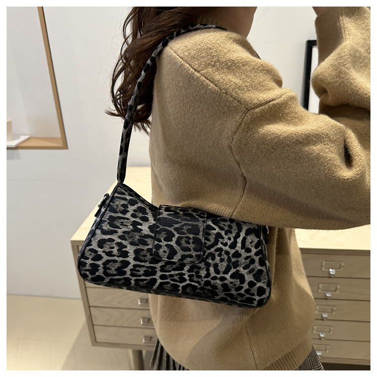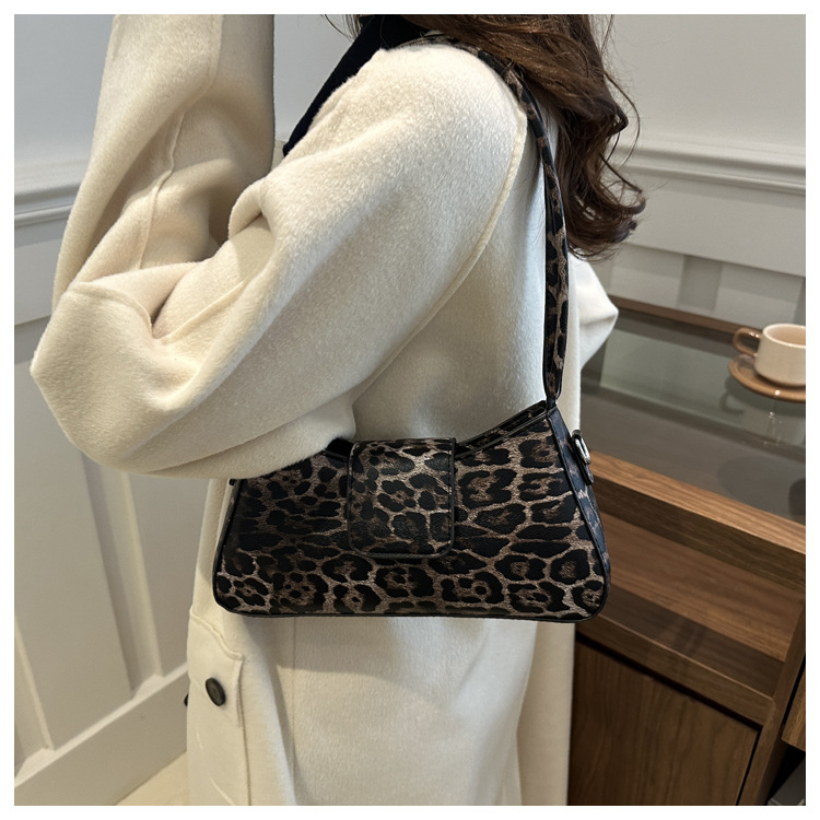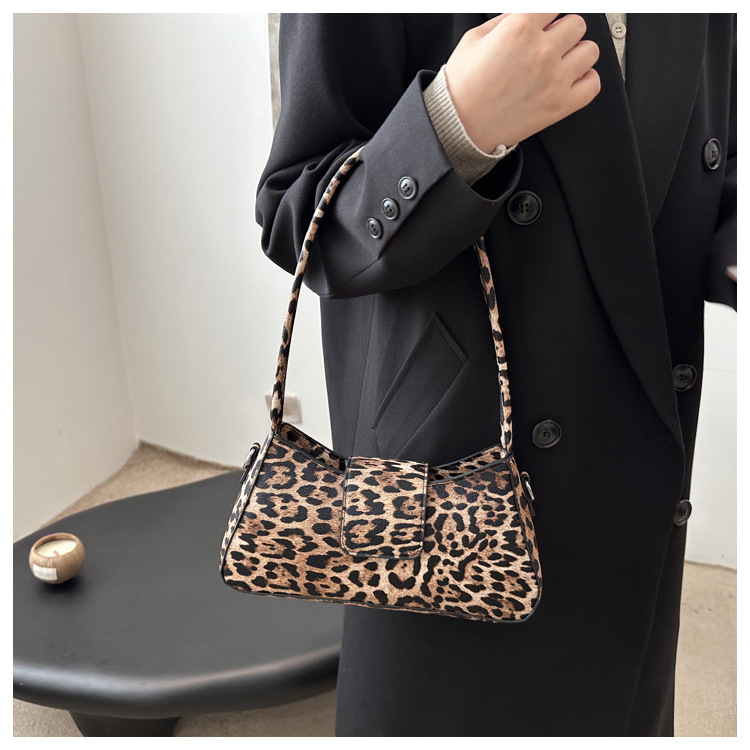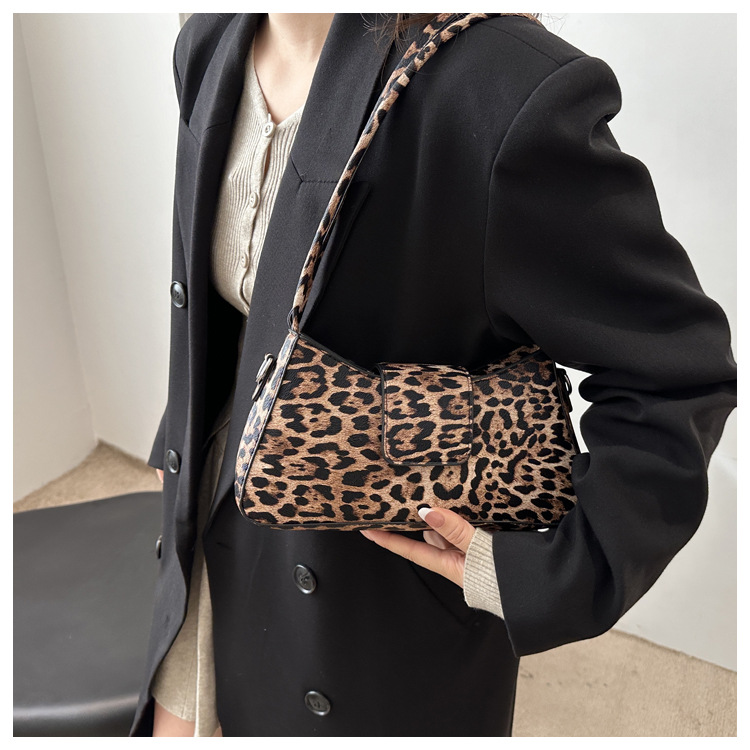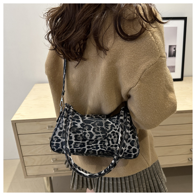Moda europea y americana bolsos de brazo, leopardo, bolsos de mujer, 2024 invierno, bolsos de moda personales, bolsos de hombro literarios de moda.