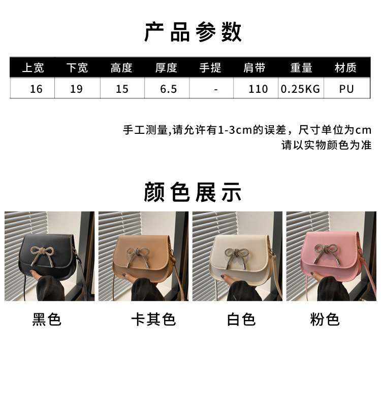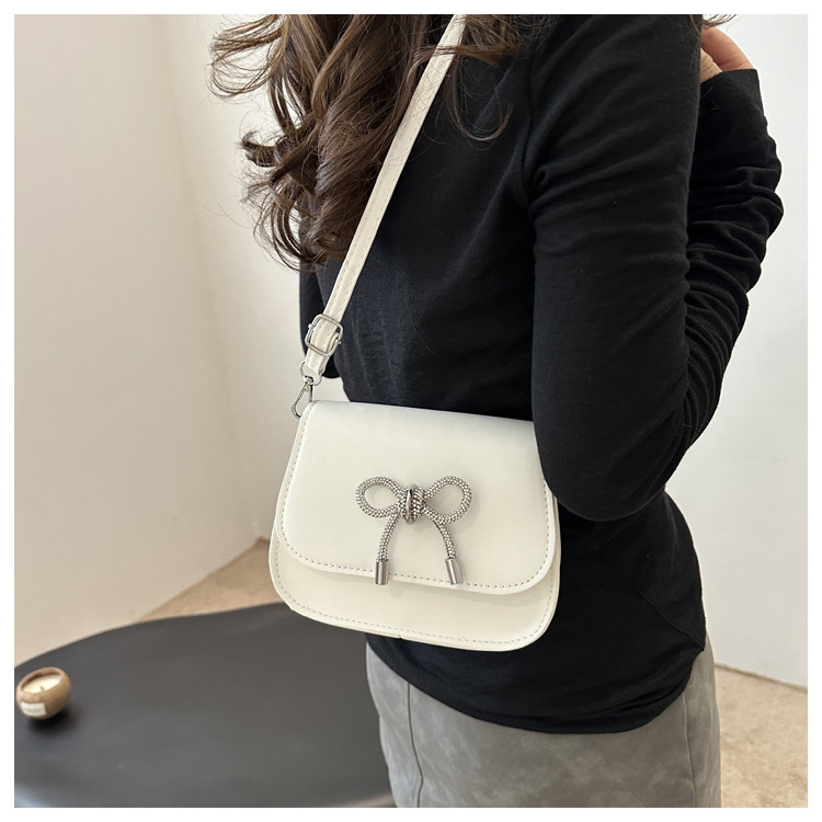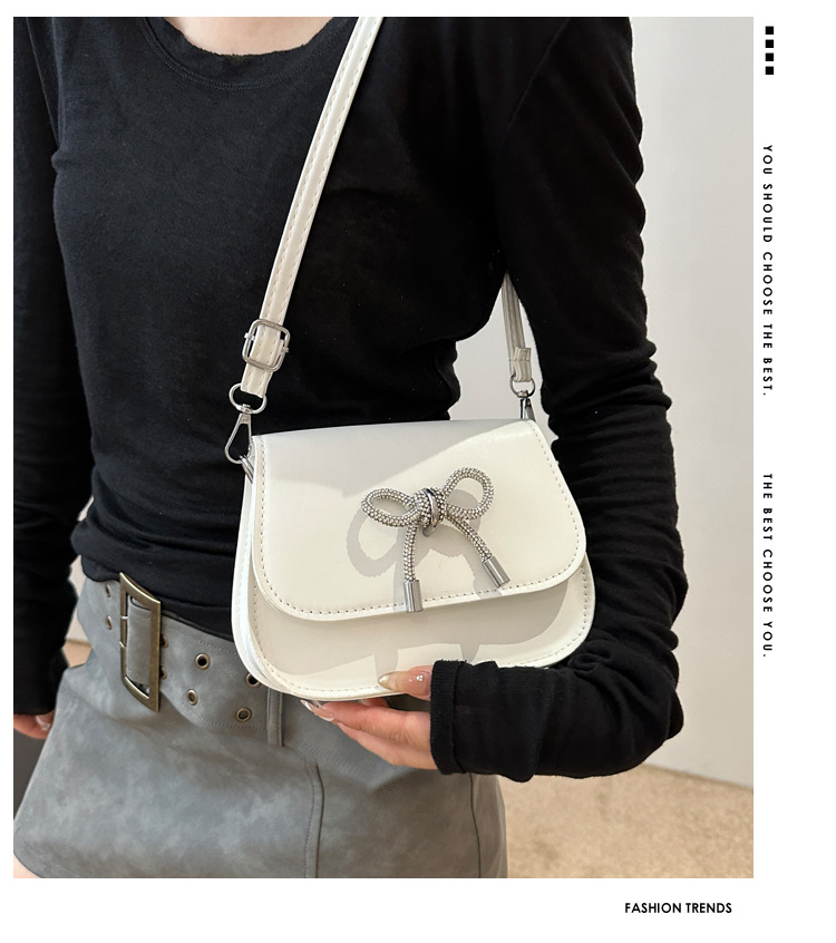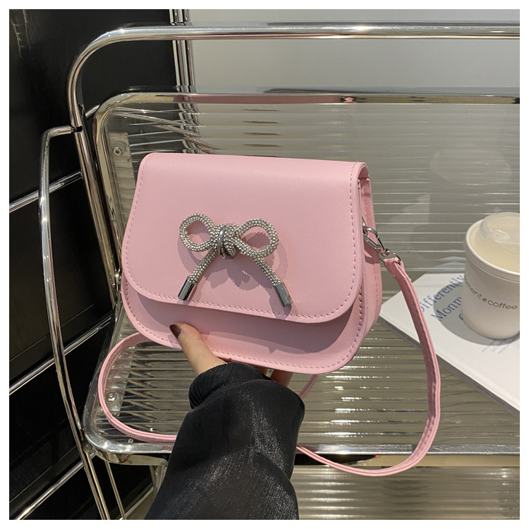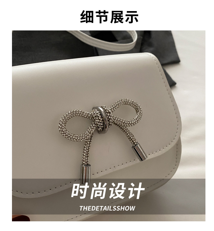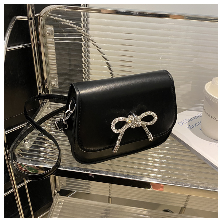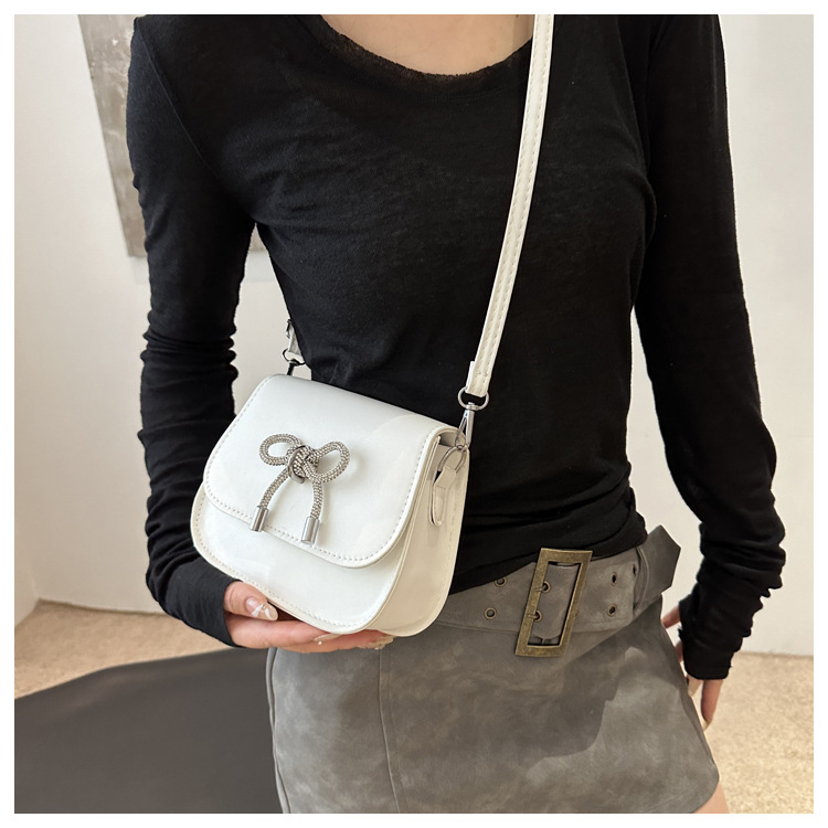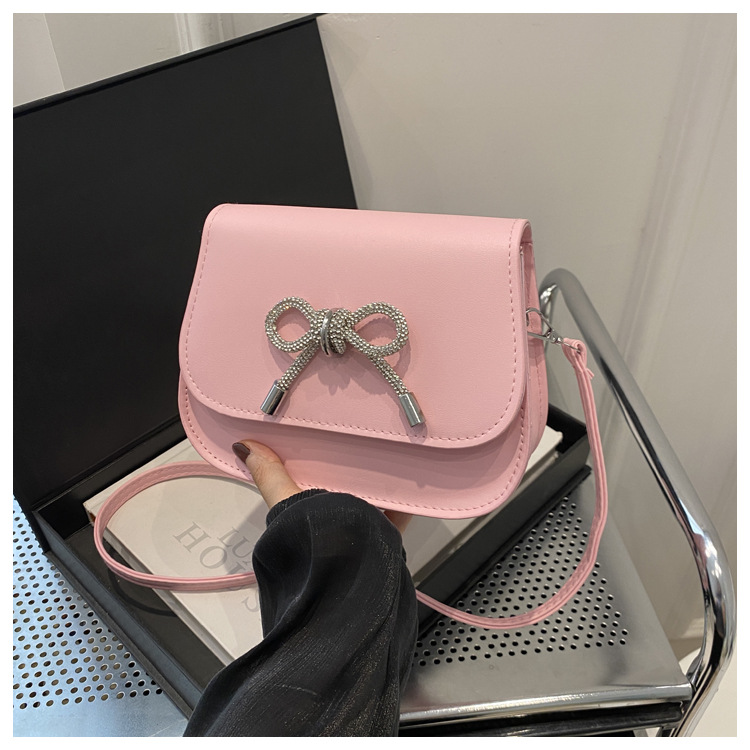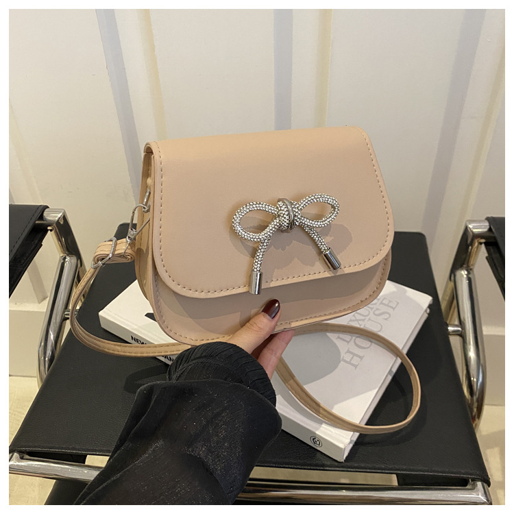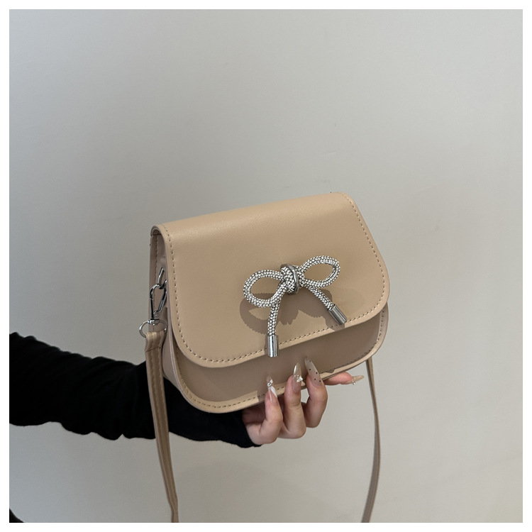 2024 otoño color sólido lazo estilo occidental rhinestone lazo casual moda mensajero de un solo hombro bolso cuadrado pequeño para mujer