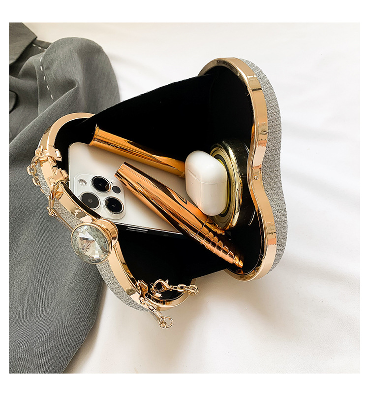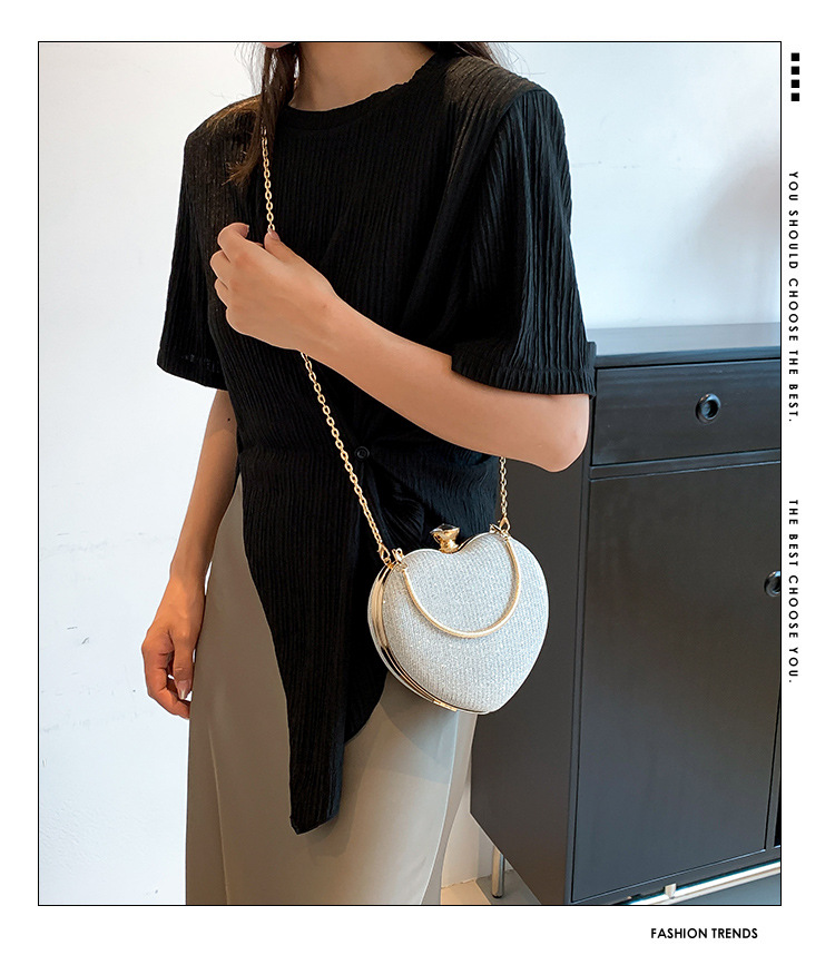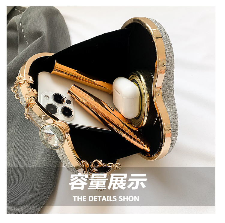 Peach Heart High-looking cadena rhinestone bolso de noche ins luz lujo Lock bolso Moda hombro brillante oblicua