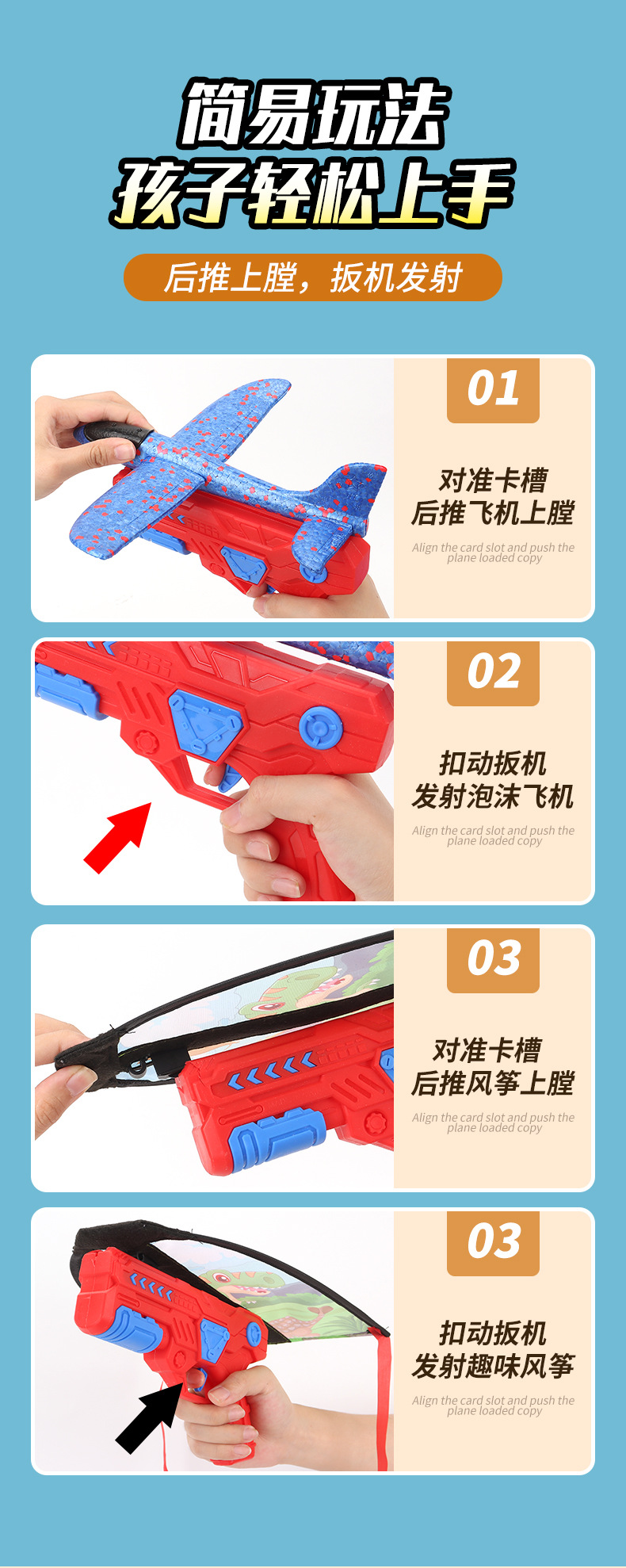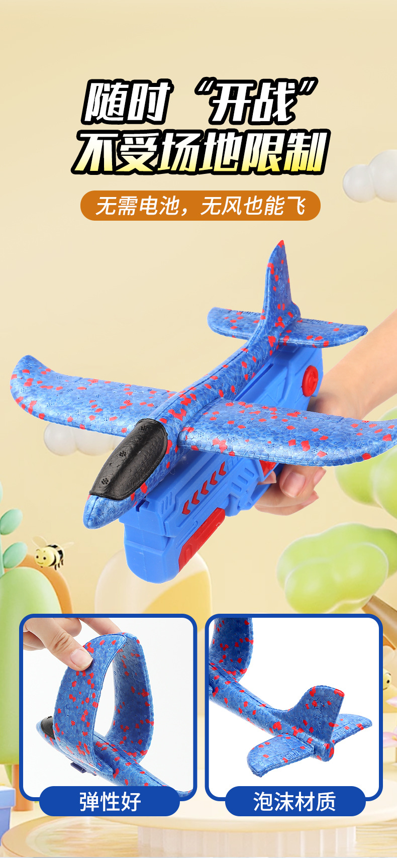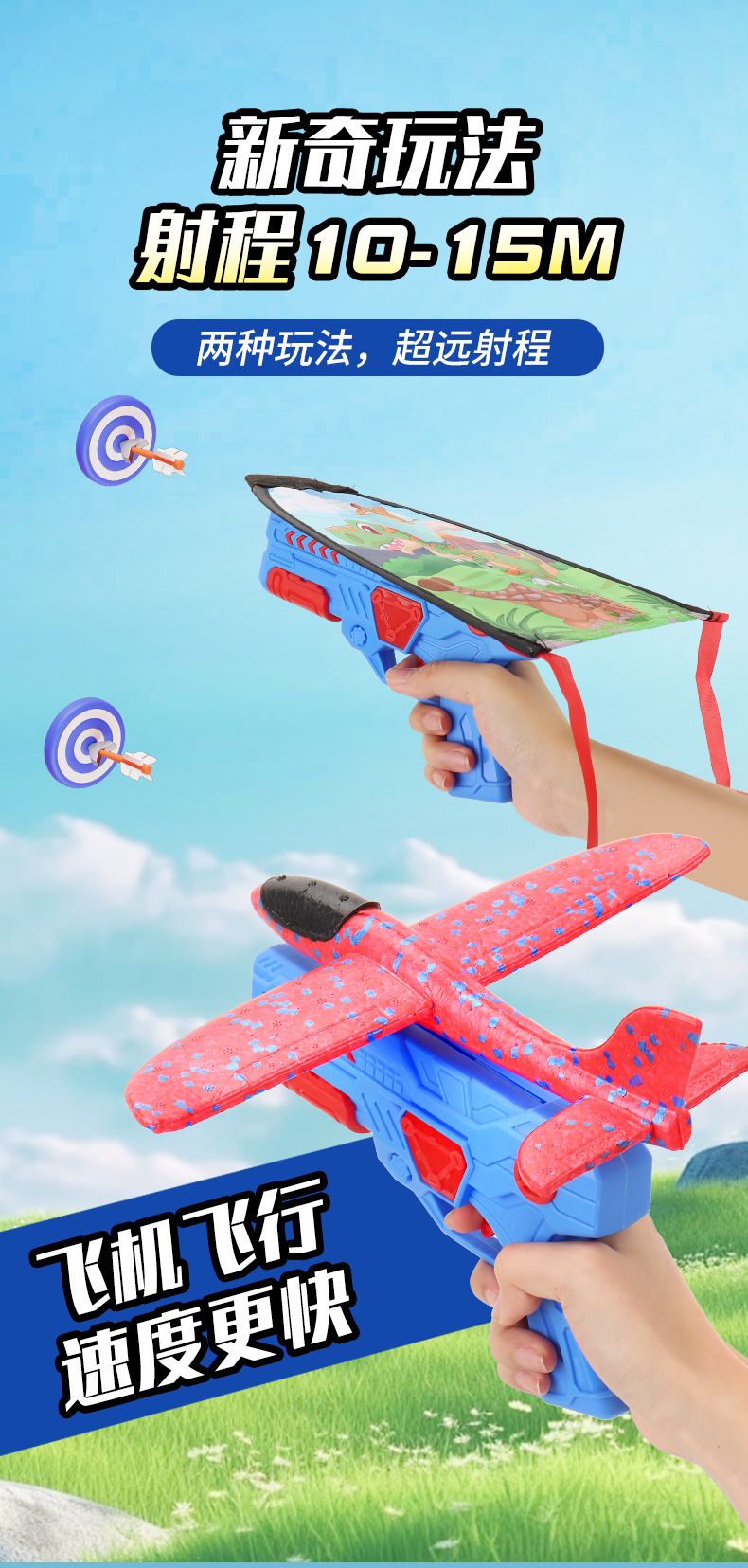 Explosión de sonido explosivo, ametralladoras catapultadas, juguetes al aire libre para niños, aviones de espuma catapultadas, parques voladores al aire libre.