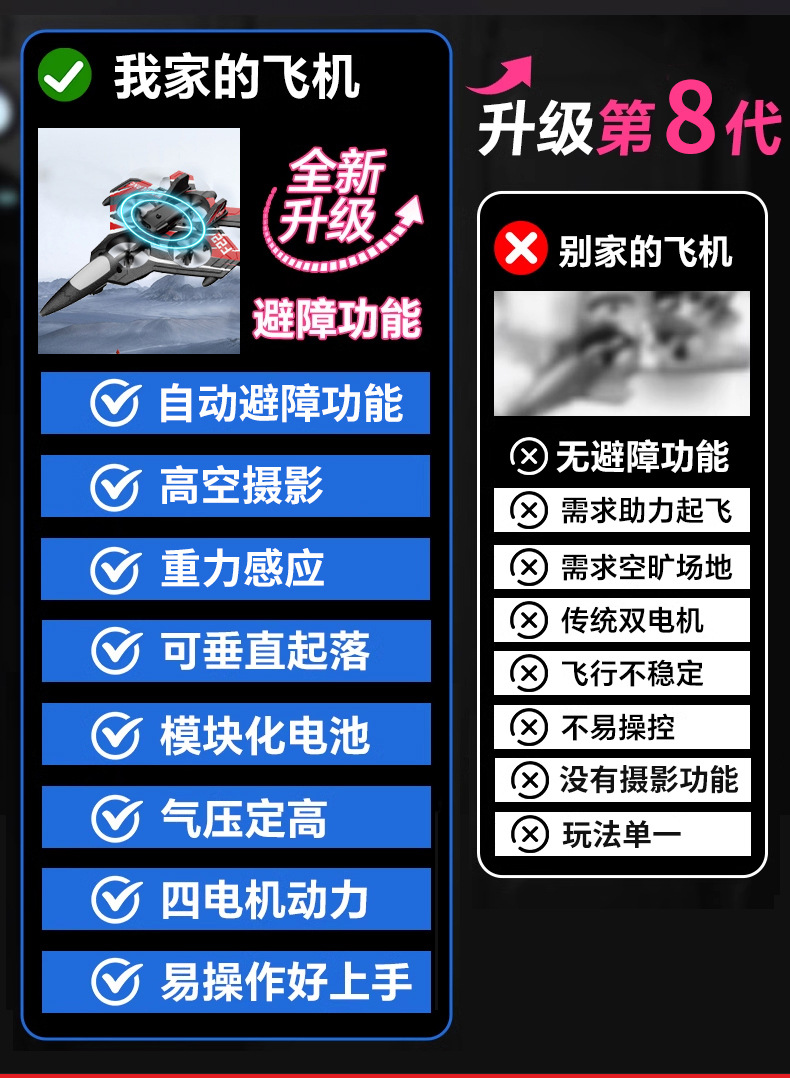 | Colores | La séptima generación de "despegue y aterrizaje vertical" de cuatro rotores sin cámara,Cámara única de cuatro rotores de "despegue y aterrizaje vertical" de séptima generación,Cámara dual de cuatro rotores de "despegue y aterrizaje vertical" de séptima generación,La séptima generación de "despegue y aterrizaje vertical" cuatro rotores, evitando obstáculos sin cámara,Cámara única de cuatro rotores de "despegue y aterrizaje vertical" de séptima generación para evitar obstáculos,Cámara dual de cuatro rotores de "despegue y aterrizaje vertical" de séptima generación para evitar obstáculos |