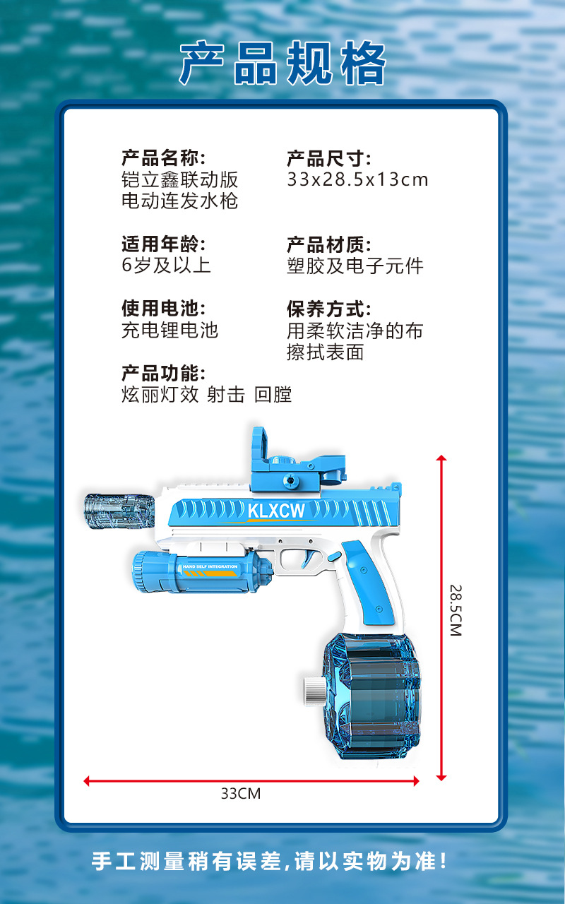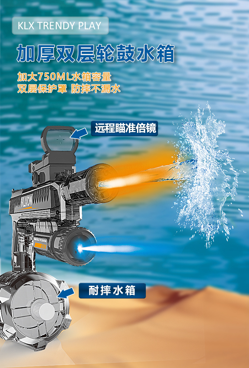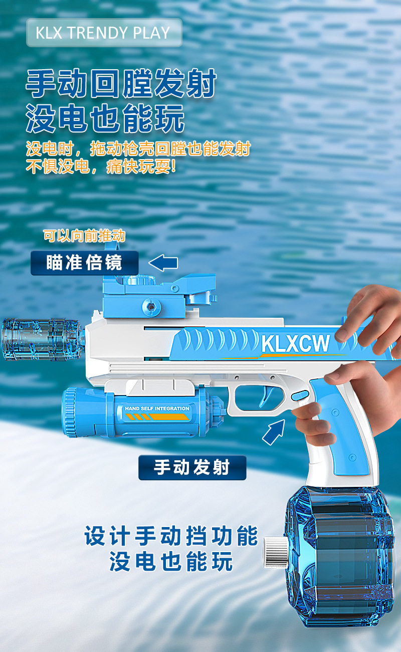 Pistola de agua de mano eléctrica integrada a mano, disparo continuo de alta velocidad, pistola de agua de gran capacidad, retorno automático a los juguetes transfronterizos de Amazon