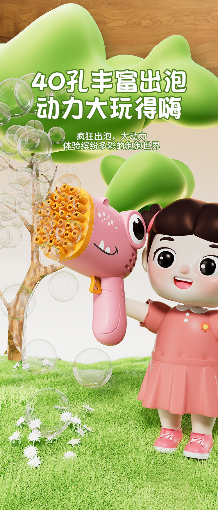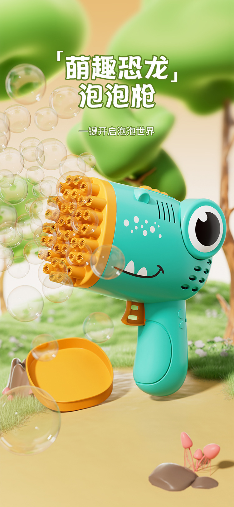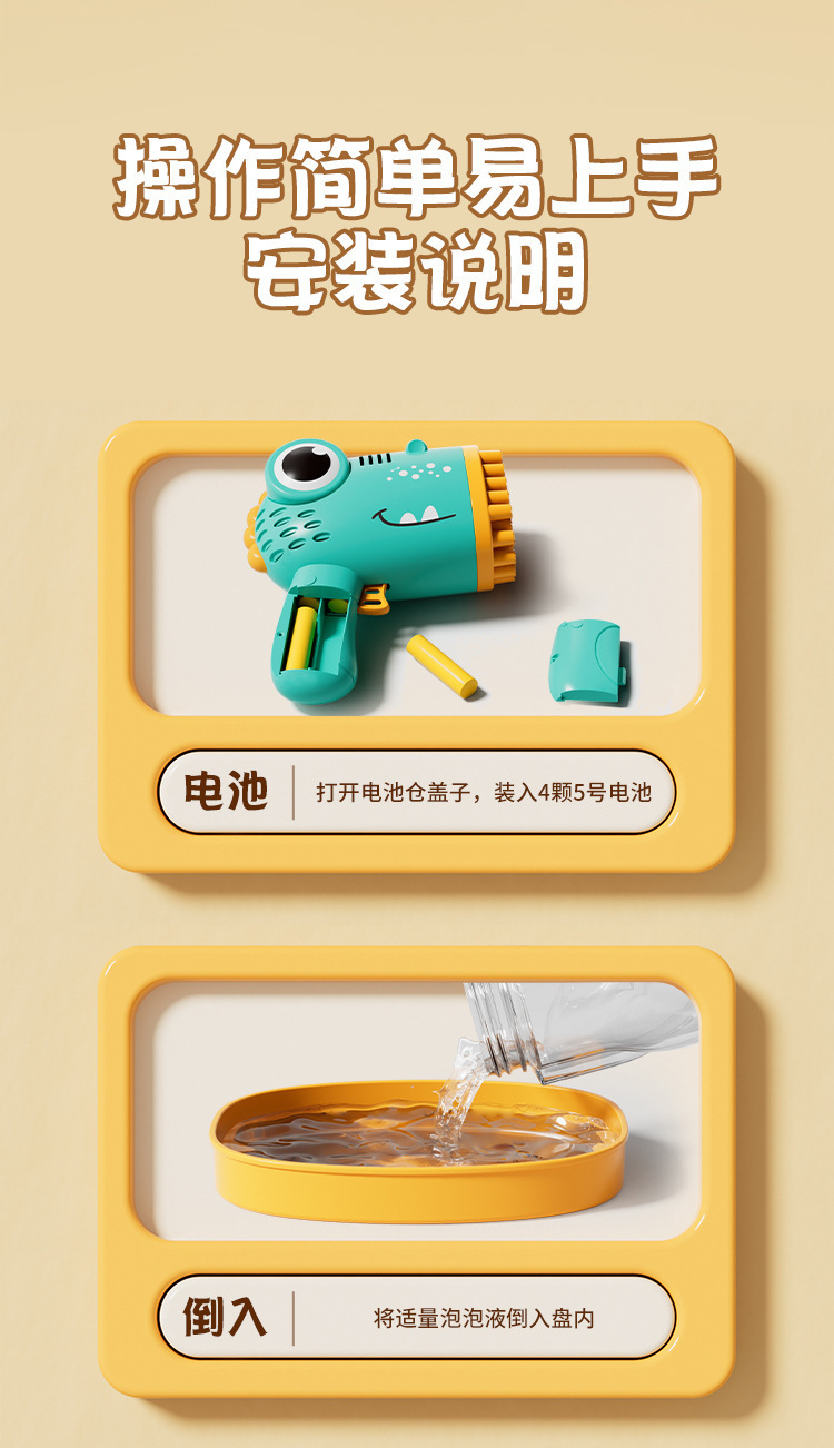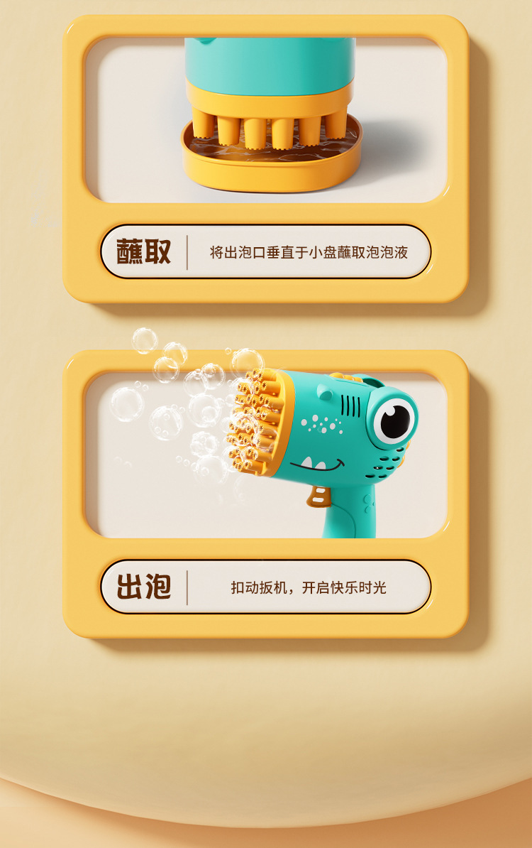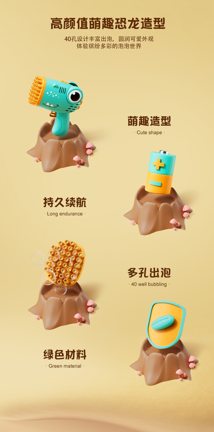 40 agujeros de burbuja de dinosaurio juguetes para niños soplando burbuja de mano fábrica de pistola de burbuja eléctrica al por mayor