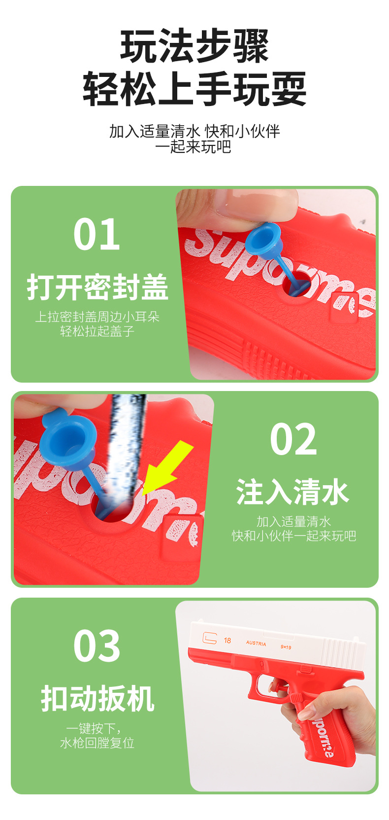 Glock gran cañón de agua manual de cañón de verano al aire libre cañón de agua pequeño juguete de playa para niños