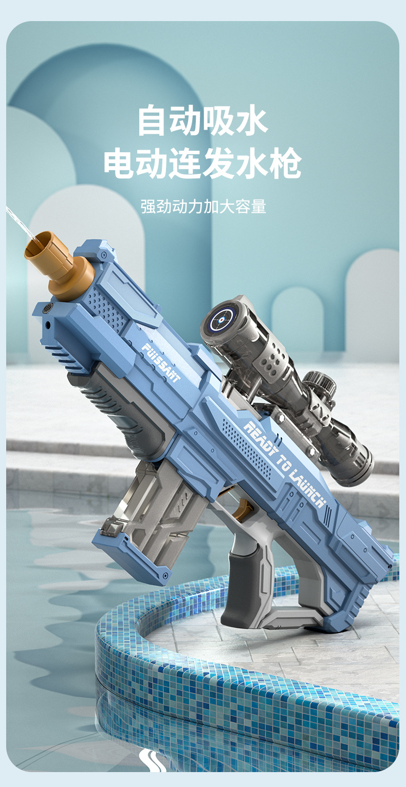 Pistola de agua eléctrica transfronteriza absorción de agua automática pistola de agua de alta presión juguete pelo continuo gran capacidad pistola de agua eléctrica pistola de juguete