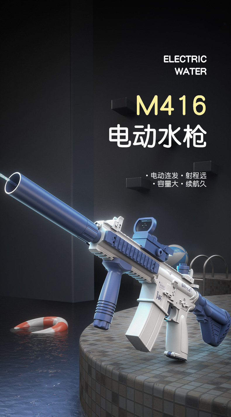 Pistola de agua eléctrica de gran capacidad M416, famosa en Internet, para niños, de fuego continuo, para jugar en el agua, adecuada para niños y niñas.