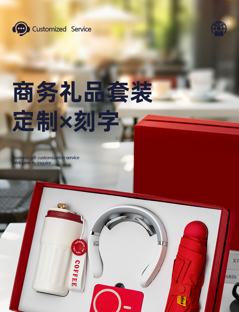 Celebración del aniversario de la empresa, taza de café, conjunto de caja de regalo de paraguas, actividades corporativas, obsequios prácticos de negocios para clientes y empleados